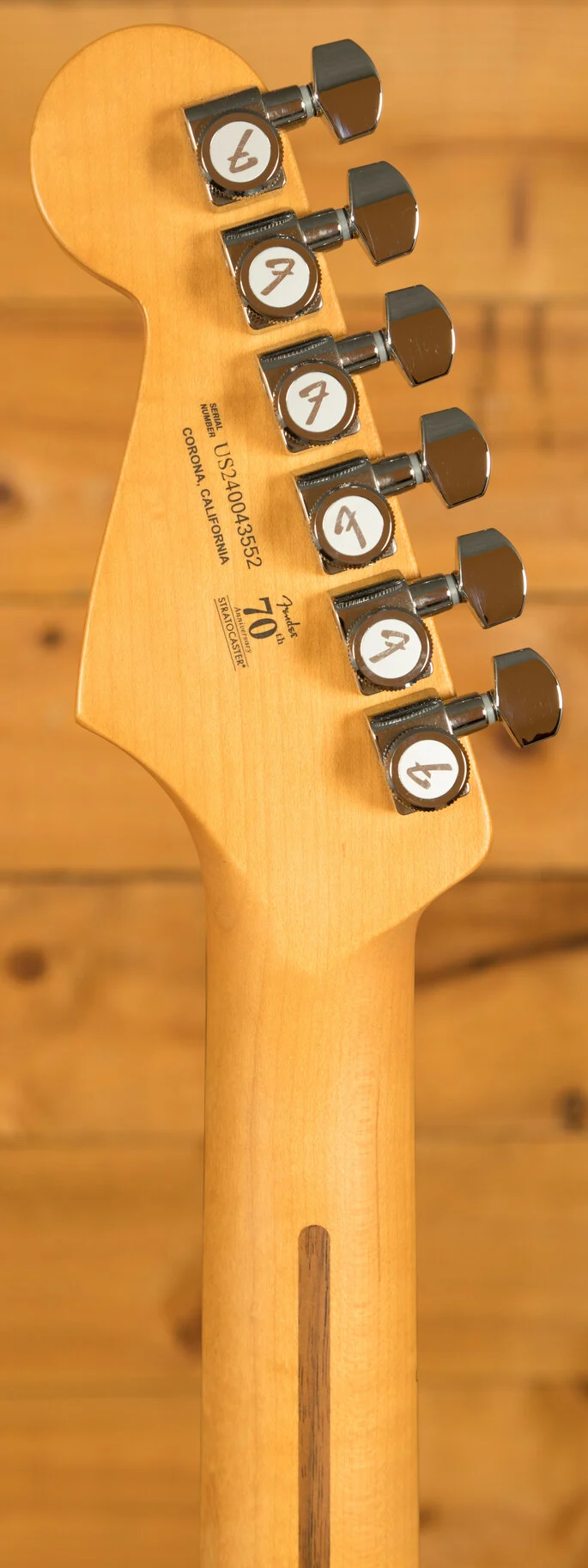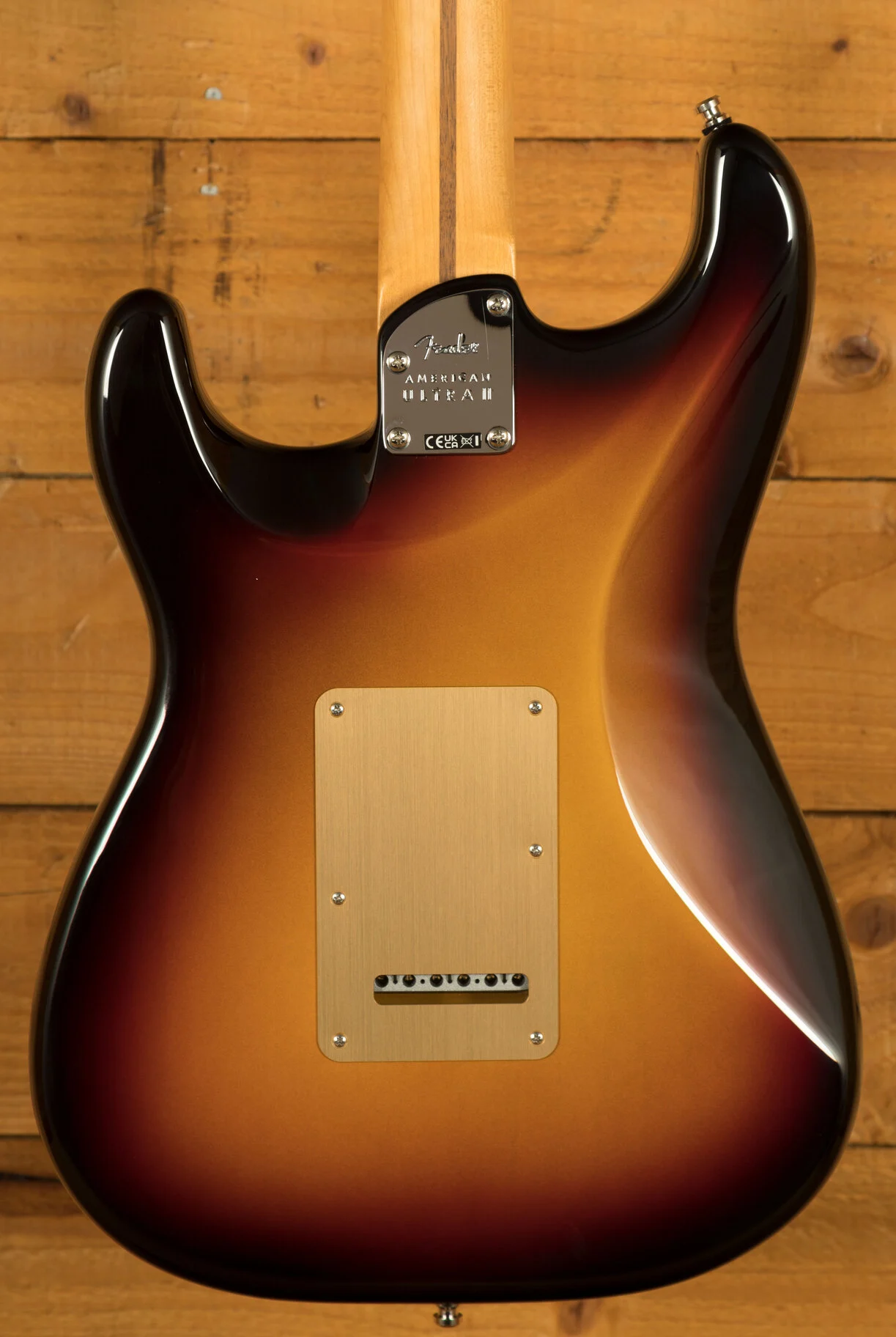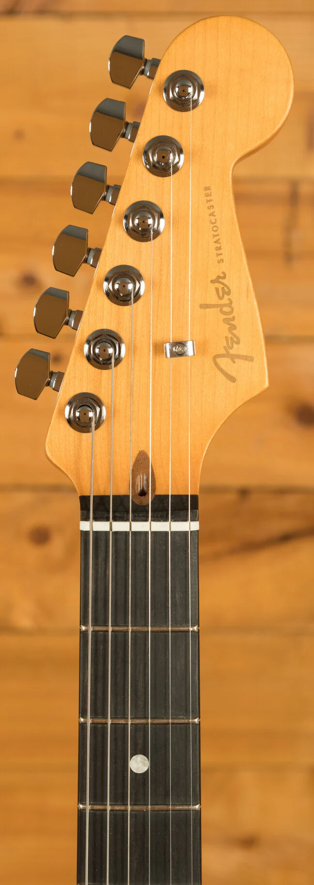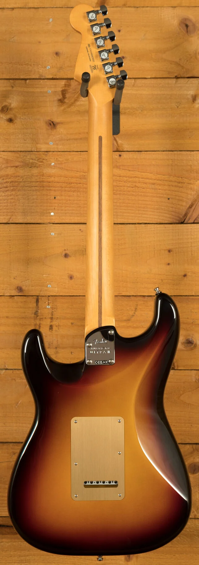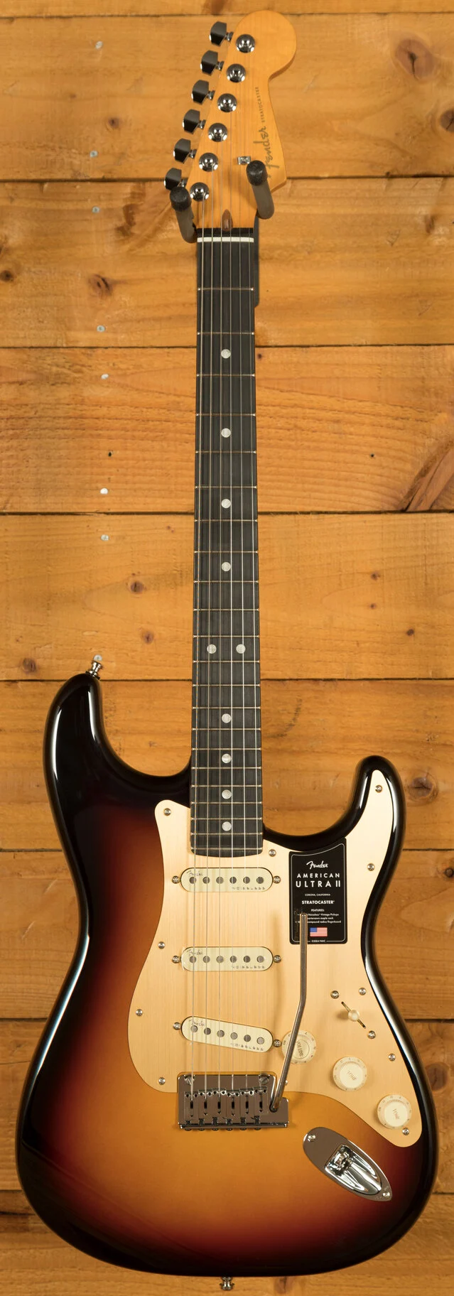 The Ultra II Noiseless Vintage pickups offer authentic Fender tone without the unwanted hum, delivering a clean, bright sound. The advanced electronics include the S-1 switch, which adds versatility by allowing you to activate the neck pickup in any position. Combined with the treble bleed circuit, your tone remains crisp even at lower volumes. Additionally, the American Ultra II Stratocaster's synchronised tremolo system and short post locking tuners provide superior tuning stability, quick string changes, and an overall seamless playing experience.