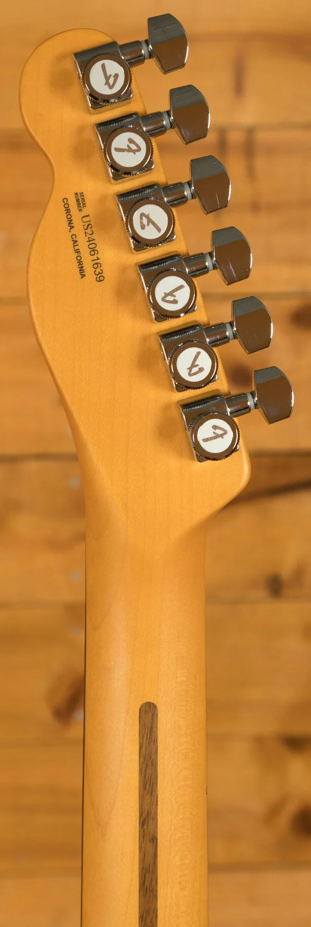 Equipped with Ultra II Noiseless Vintage pickups, these instruments provide the iconic Fender sound without the hum. These pickups offer a true single-coil tone with advanced noise rejection, delivering clarity and expressiveness across the tonal range. The addition of S-1 switching expands the tonal possibilities, while the treble bleed circuit maintains clarity even at lower volumes. Coupled with a precision-engineered 6-saddle string-through-body hardtail bridge and short-post locking tuners, the American Ultra II Telecaster guarantees exceptional tuning stability, sustain, and ease of maintenance.