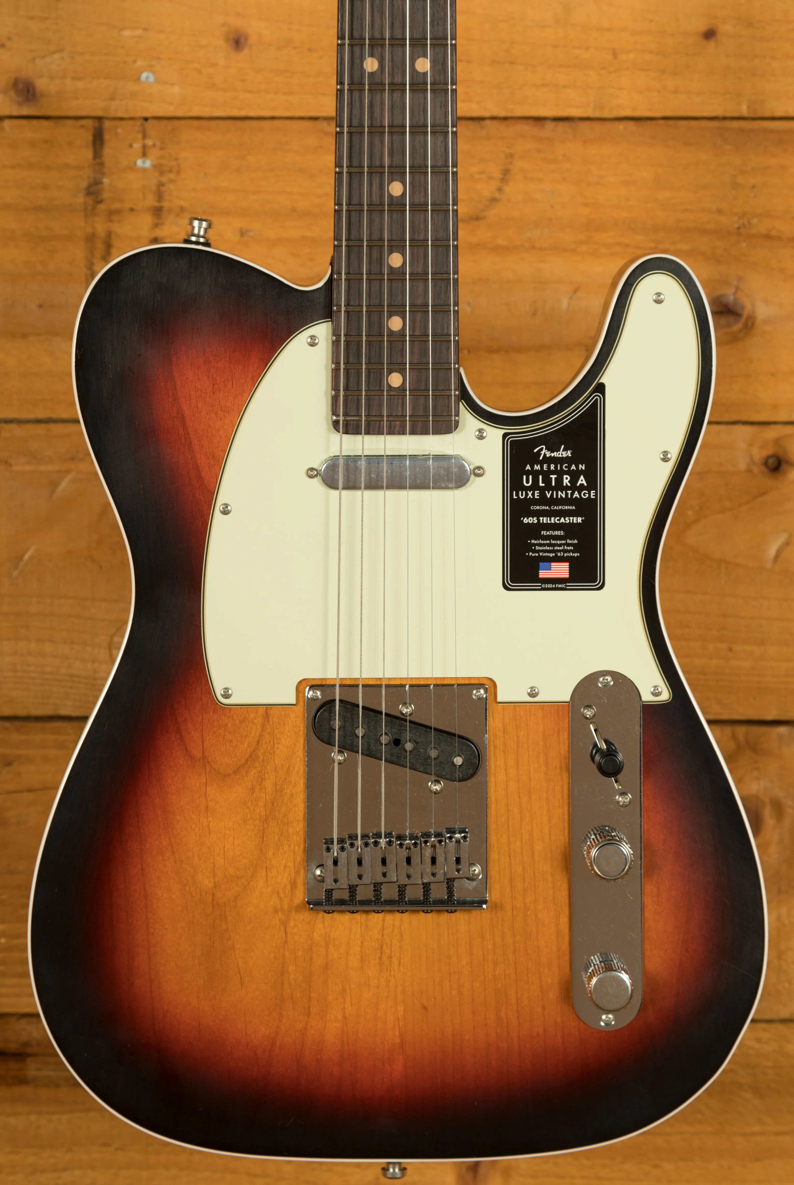 Skip to content Fender American Ultra Luxe Vintage '60s Telecaster Custom - Rosewood - 3-Colour Sunburst