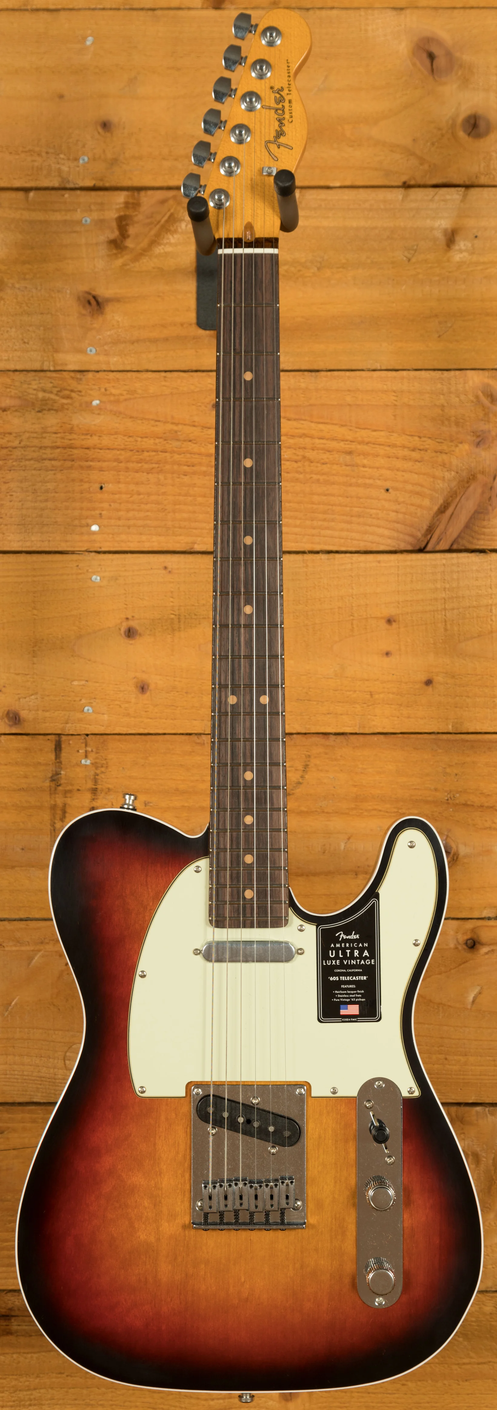 Hardware includes a 6-saddle string-through-body bridge with chromed brass block saddles, engineered for precise intonation and sustain. Deluxe locking tuners and Graph Tech TUSQ nut provide tuning stability and allow for fast string changes. Altogether, the American Ultra Luxe Vintage '60s Telecaster Custom offers a blend of traditional tone, modern comfort, and professional-grade components, making it an ideal choice for players who want the best of both worlds.