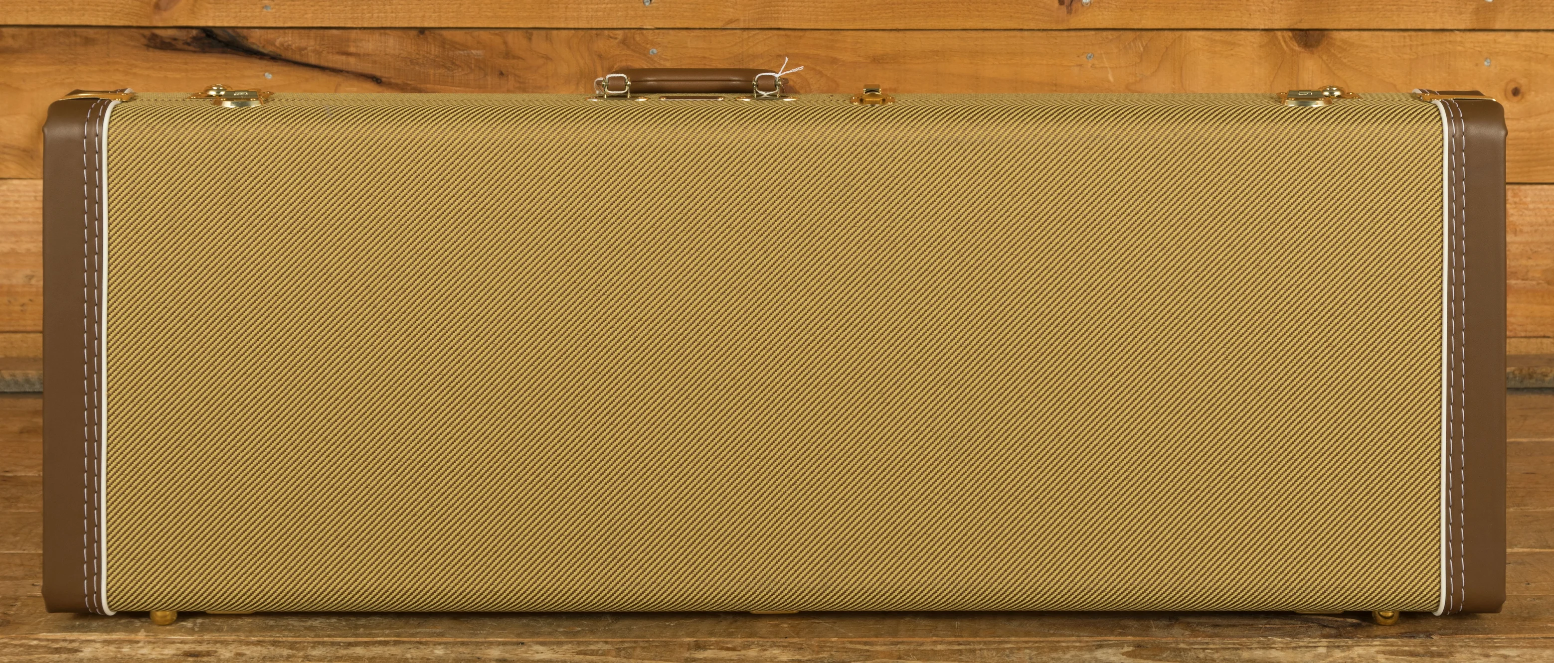 Attention to detail extends to the hardware as well. The vintage-accurate synchronised tremolo, complete with a cold-rolled steel block and bent steel saddles, contributes to the guitar's authentic tone and feel. Single-line "Fender Deluxe" tuners and a single-ply pickguard further enhance the vintage aesthetic.