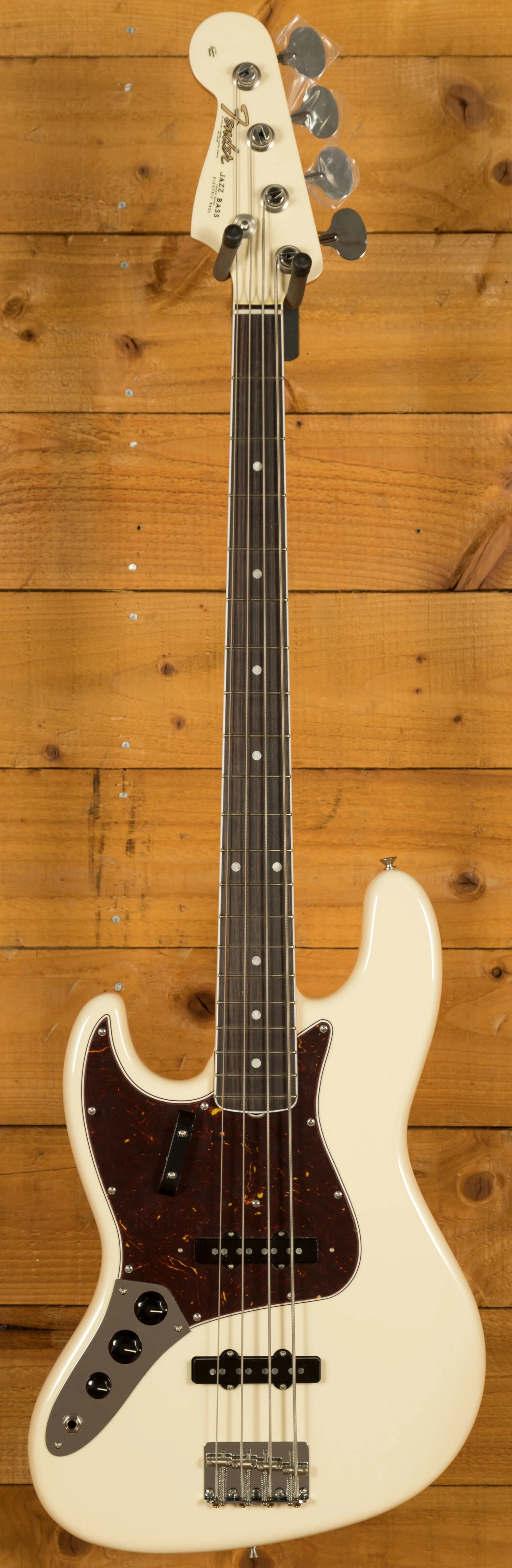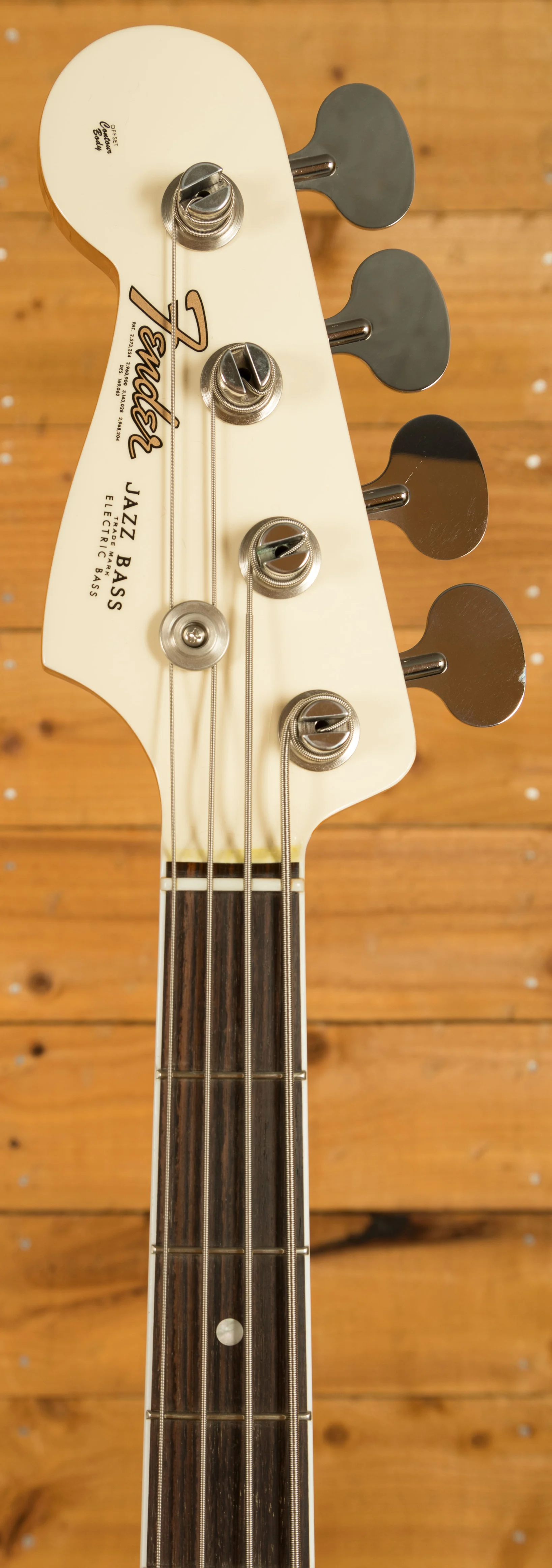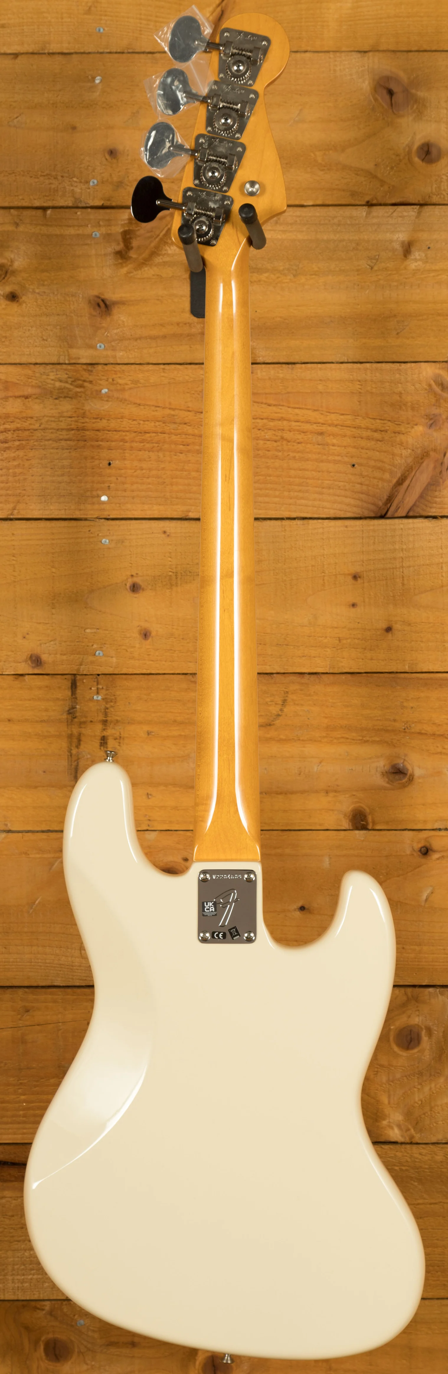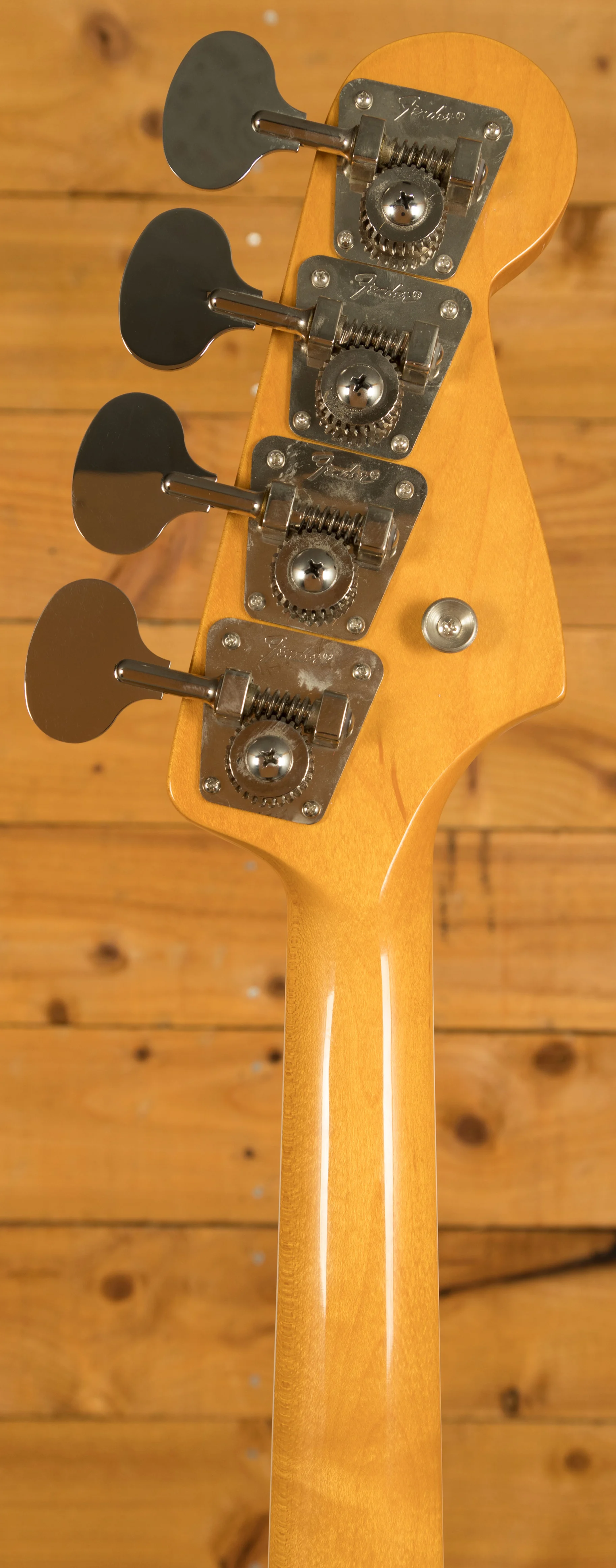 The American Vintage II 1966 Jazz Bass features a comfortable 'U' shape hard rock maple neck, and it plays like a dream with a 7.25" radius round-lam rosewood fingerboard and vintage tall frets. Characteristic of production in 1966, this J-Bass is offered with white neck binding, pearl dots, two volume controls with master tone, matching painted headstock and 4-ply tortoiseshell pickguard. The 4-saddle bridge with threaded saddles, vintage-style 'lollipop' tuners and Pure Vintage '66 Jazz Bass pickups deliver classic thump and style.