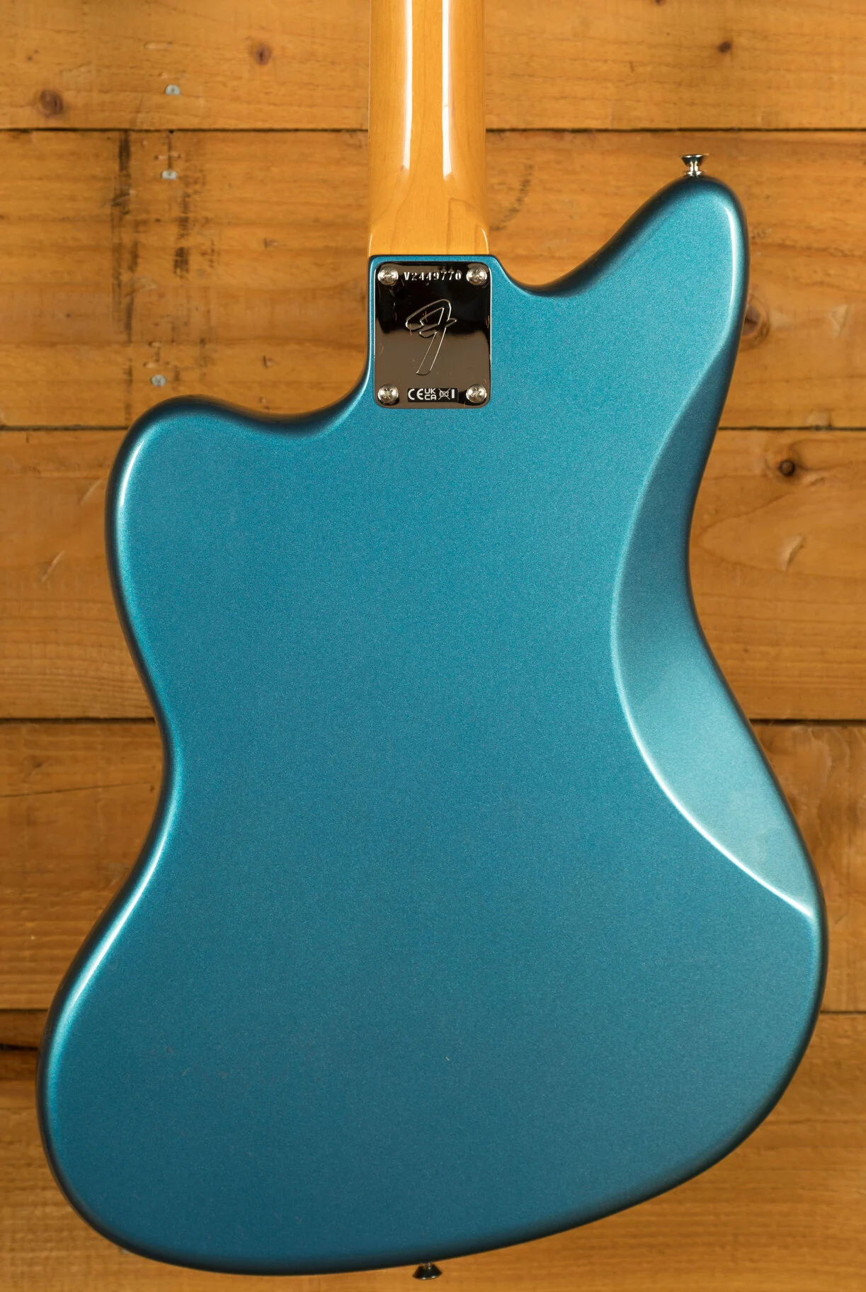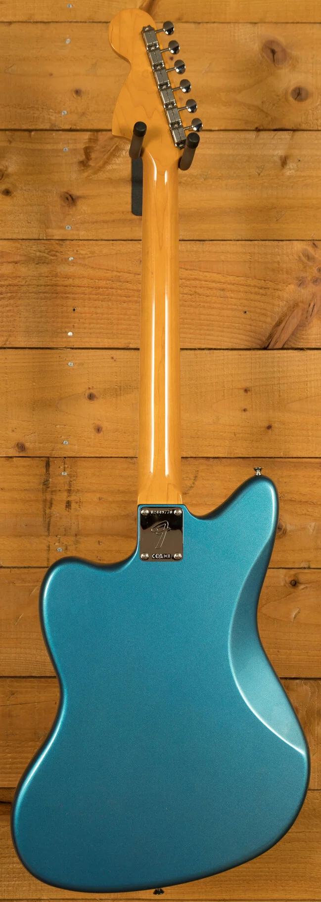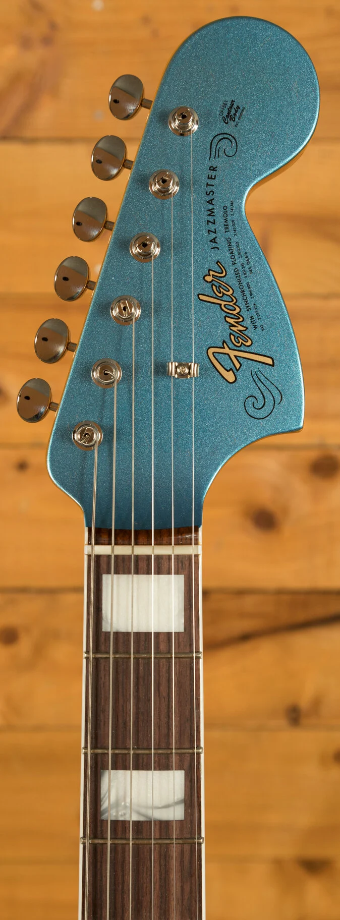 The electronics include a pair of Pure Vintage '66 Jazzmaster pickups, specifically voiced to replicate the sound and response of the original units from that year. These pickups use traditional materials such as cloth-covered wire, fiber bobbins, and alnico magnets, offering warm, articulate tones with a wide frequency response. The signature rhythm and lead circuit wiring provides tonal flexibility and easy access to distinctive Jazzmaster sounds.