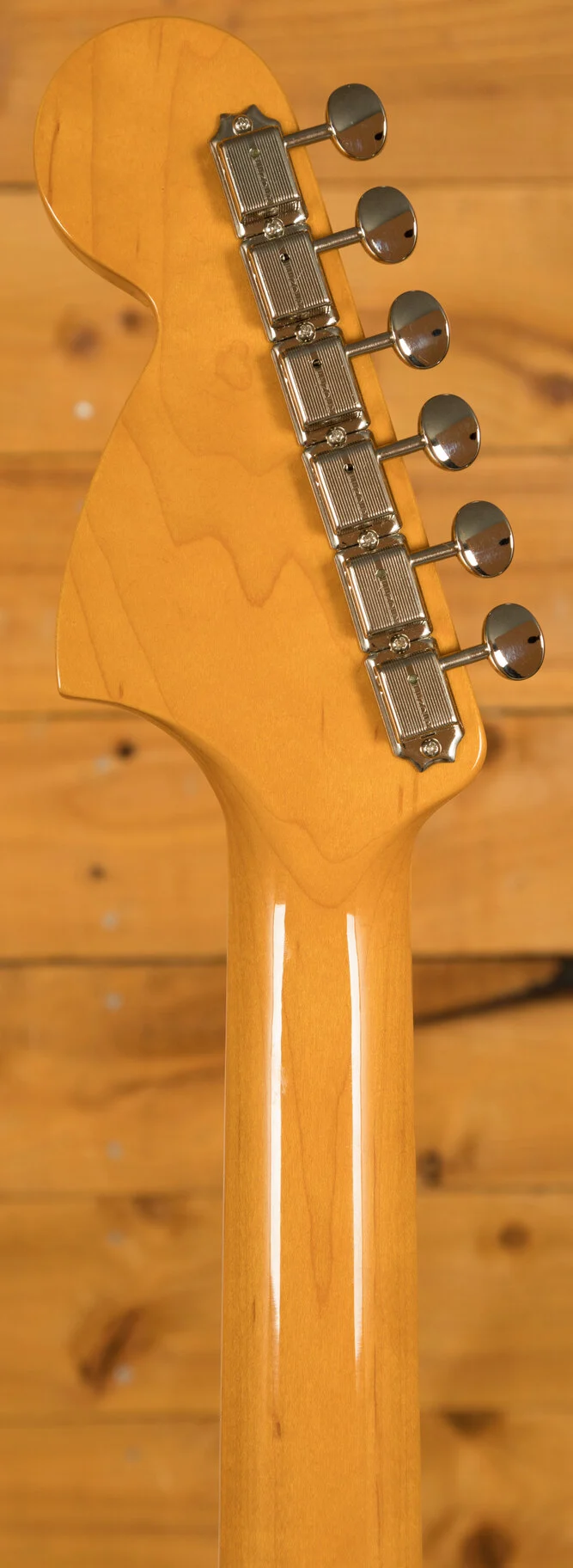 This model comes with a 1966 "C"-shape maple neck, designed to replicate the feel of the original instruments from that era. The 7.25" radius bound round-laminated rosewood fingerboard is topped with vintage tall frets, making it easier to execute expressive bends and articulate playing. The neck also features period-correct pearl block inlays and white binding, with a matching painted headstock for an authentic 1960s aesthetic.