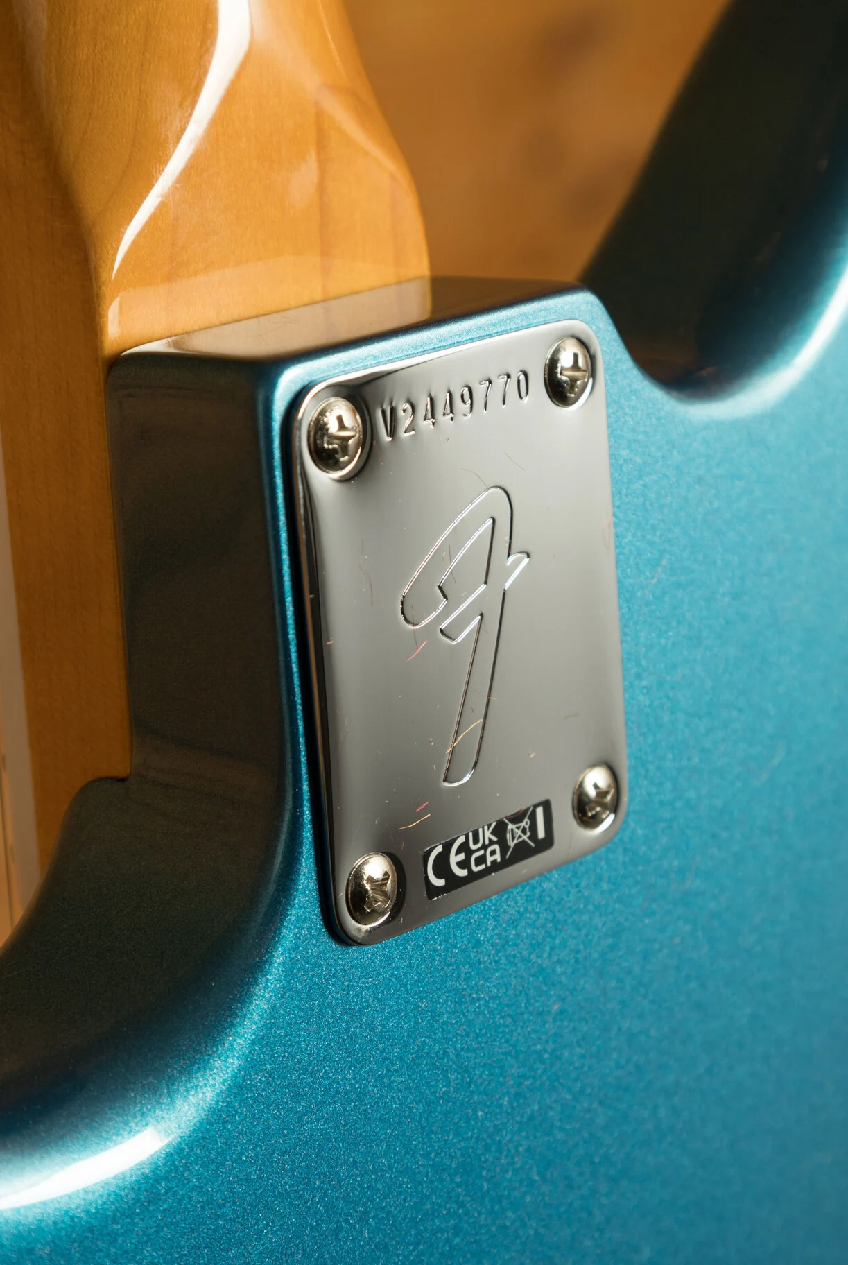 All hardware components, including the floating tremolo system, adjustable bridge with threaded saddles, and vintage-style tuners, are designed to match the look, sound, and performance of the originals. Many of these parts are still manufactured on the same machines used during the 1950s and 1960s at Fender's original factory. The result is an instrument that offers a true vintage playing experience with the reliability and build quality of modern American production.