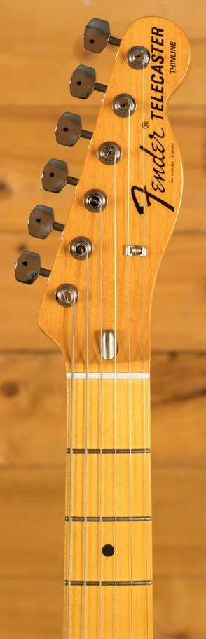 The Telecaster Thinline first debuted in July of 1968 and the semi-hollow design was created to produce light instruments from heavy ash. Reimagined in late '71 around a pair of Wide-Range humbucking pickups mounted to a reshaped curvy pearloid pickguard, the souped-up second-generation Telecaster Thinline had its first full year of production in 1972. Notably, it was Fender's first six string with humbucking pickups and the first Tele with six adjustable bridge saddles. The American Vintage II 1972 Telecaster Thinline reproduces the quintessential tone and feel of the original.