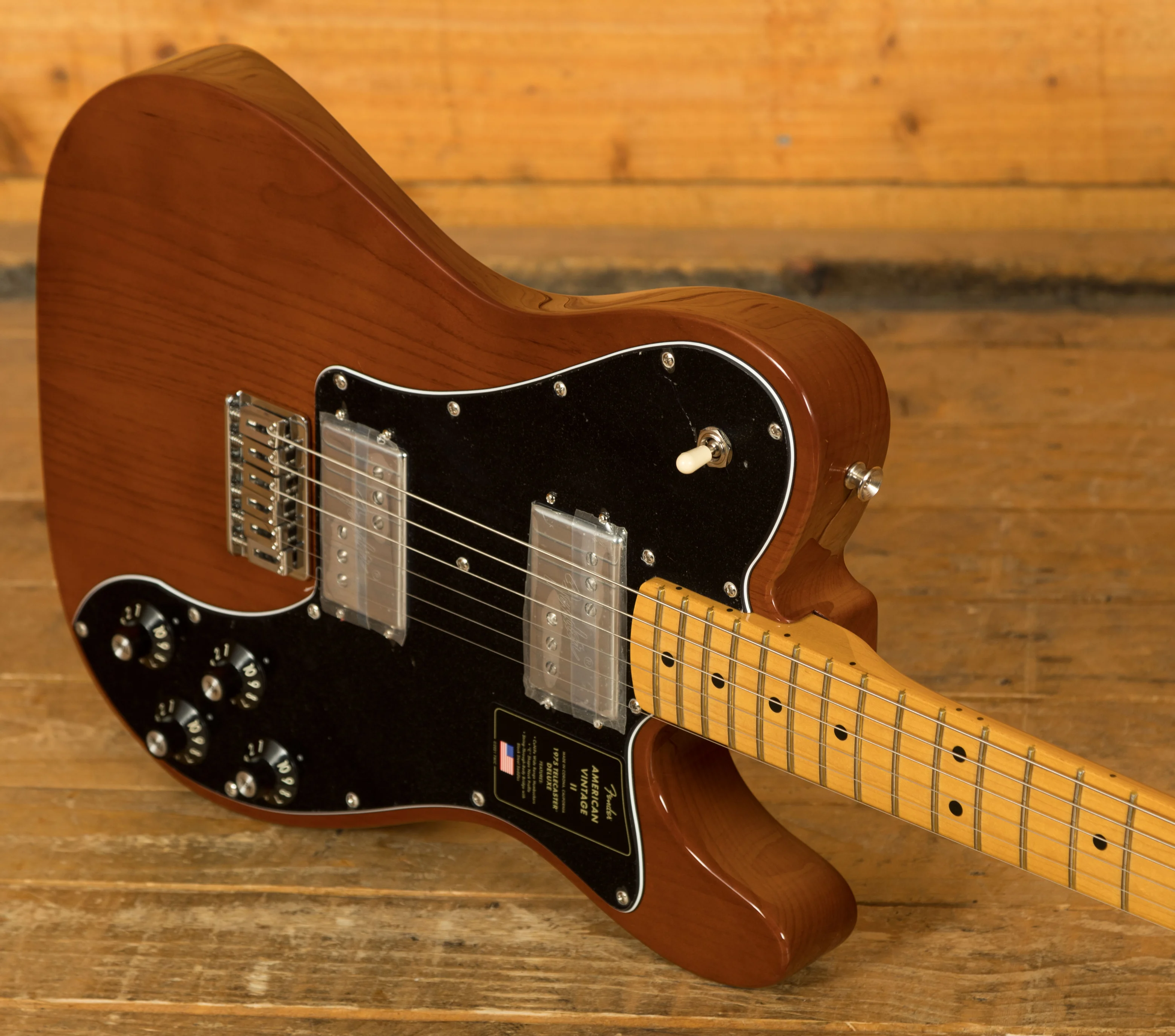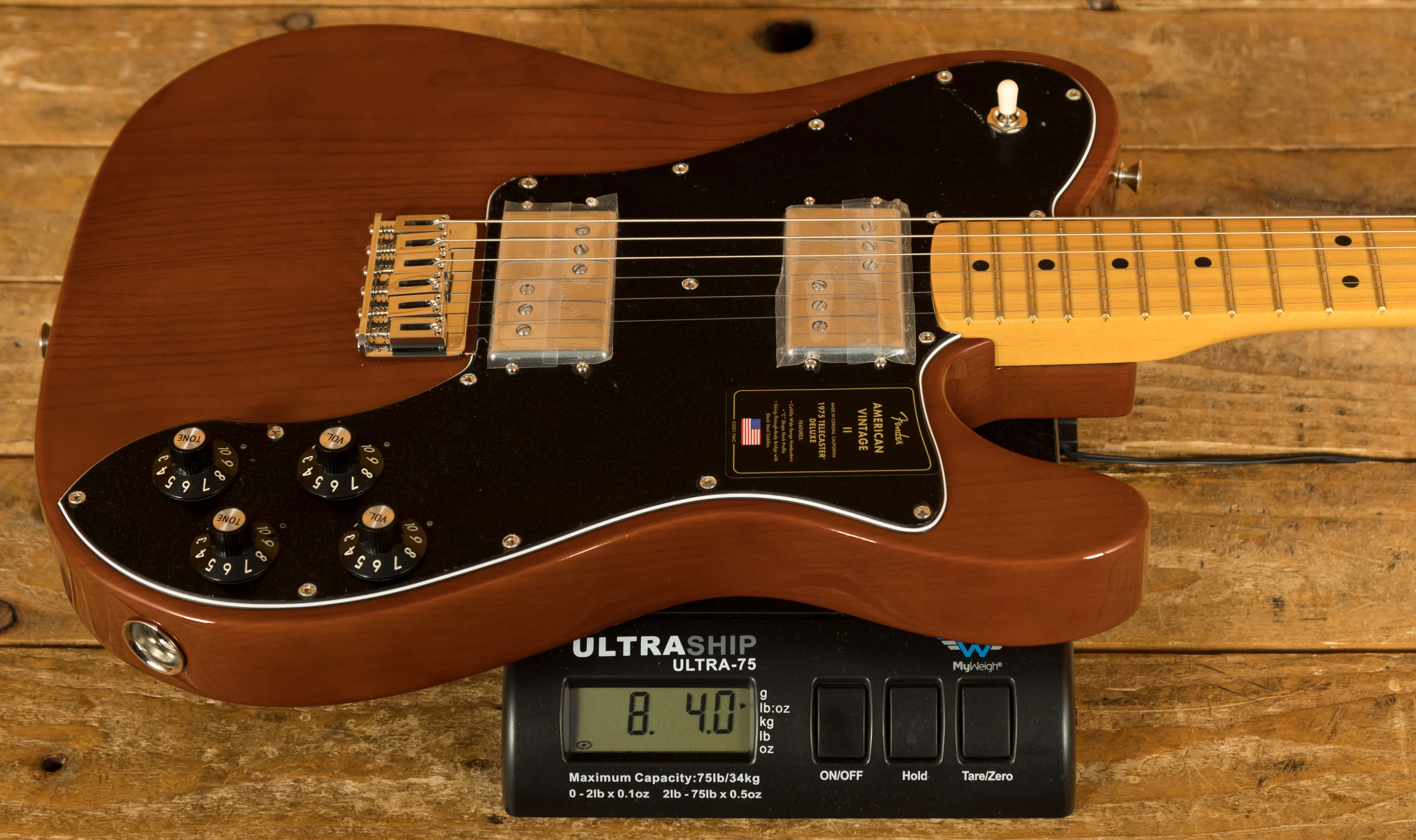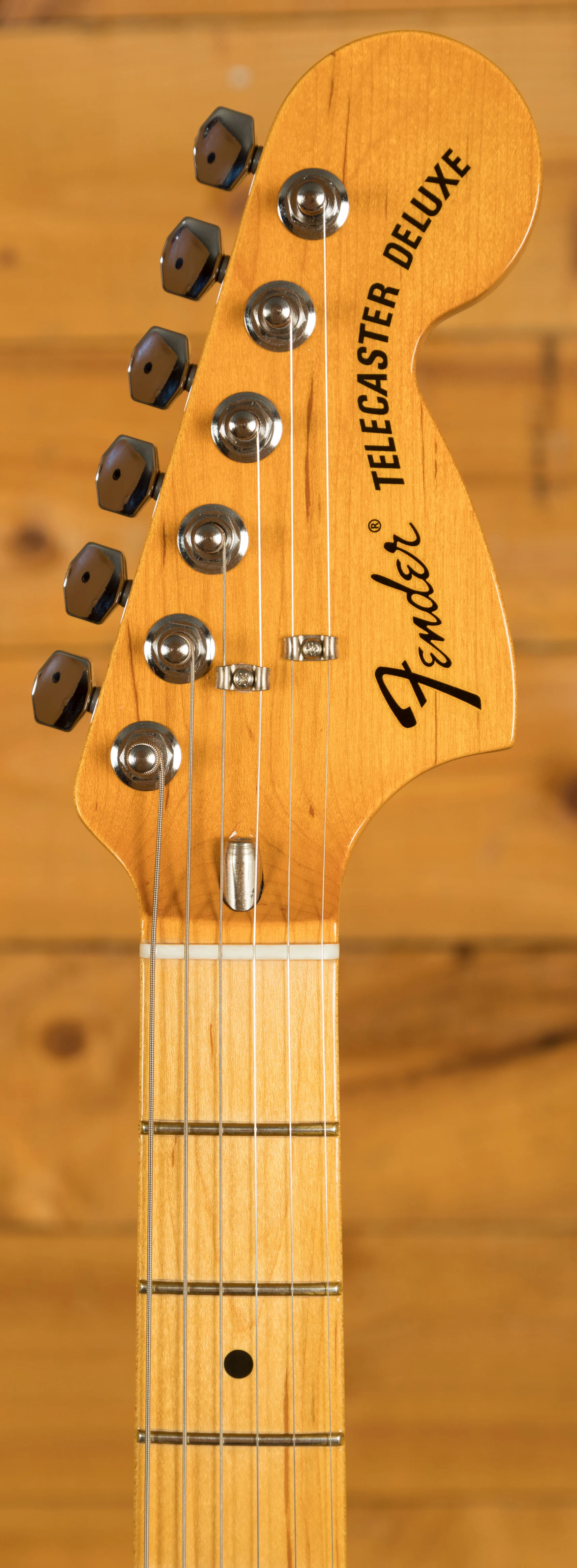 Initially introduced in 1972 and billed as the top model in the Telecaster family, The Telecaster Deluxe holds the distinction of being Fender's first solid-body Telecaster with two humbucking pickups. Like the original, the American Vintage II 1975 Telecaster Deluxe sports a large Stratocaster-style headstock, comfort-contoured belly cut, and pair of Wide Range humbucking pickups mounted to an elongated pickguard with dual volume and tone controls and a 3-way toggle located on the upper bout. To create authentic Wide-Range humbucking pickups, Fender resurrected CuNiFe magnets, which had been out of production since 1981, an essential element in recreating the sonics of the original.