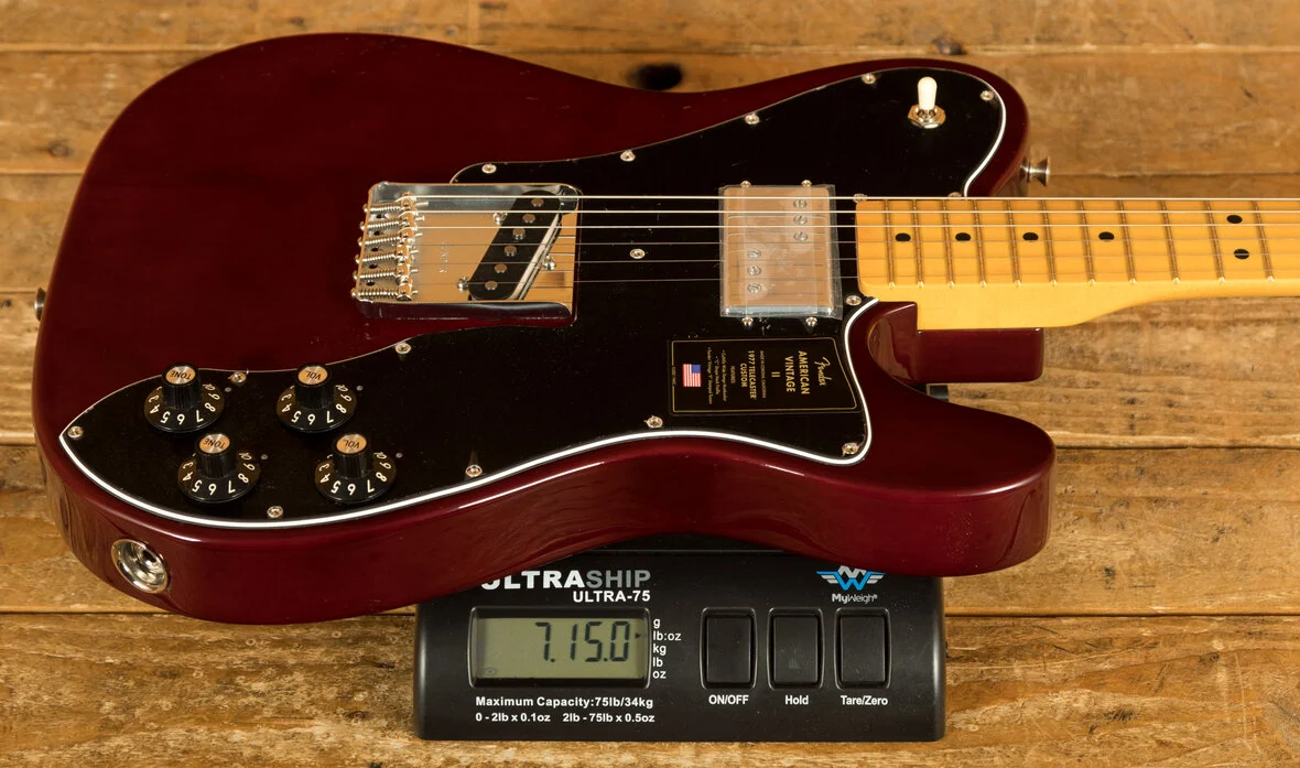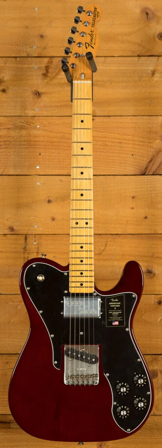 This Tele features a Wide Range humbucking pickup in the neck position and a Pure Vintage '77 single-coil Tele pickup in the bridge position. To create an authentic Wide-Range humbucking pickup, Fender resurrected CuNiFe magnets, which had been out of production since 1981, and are an essential element in recreating the sonics of the original. The American Vintage II 1977 Telecaster Custom plays like a dream with a '77 'C'-shape hard rock maple neck with a 7.25" radius maple fingerboard and vintage tall frets. Other features include a Tele bridge with 6 slotted steel barrel saddles, 'F' stamped tuners, a convenient 'Bullet' style truss rod nut and a three-bolt neck plate with Micro-Tilt mechanism. Finished in Wine Red over an alder body.
