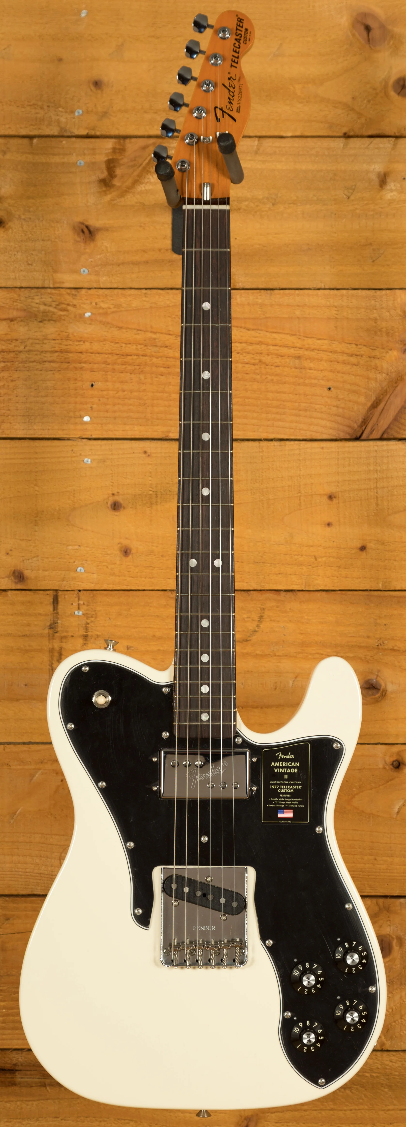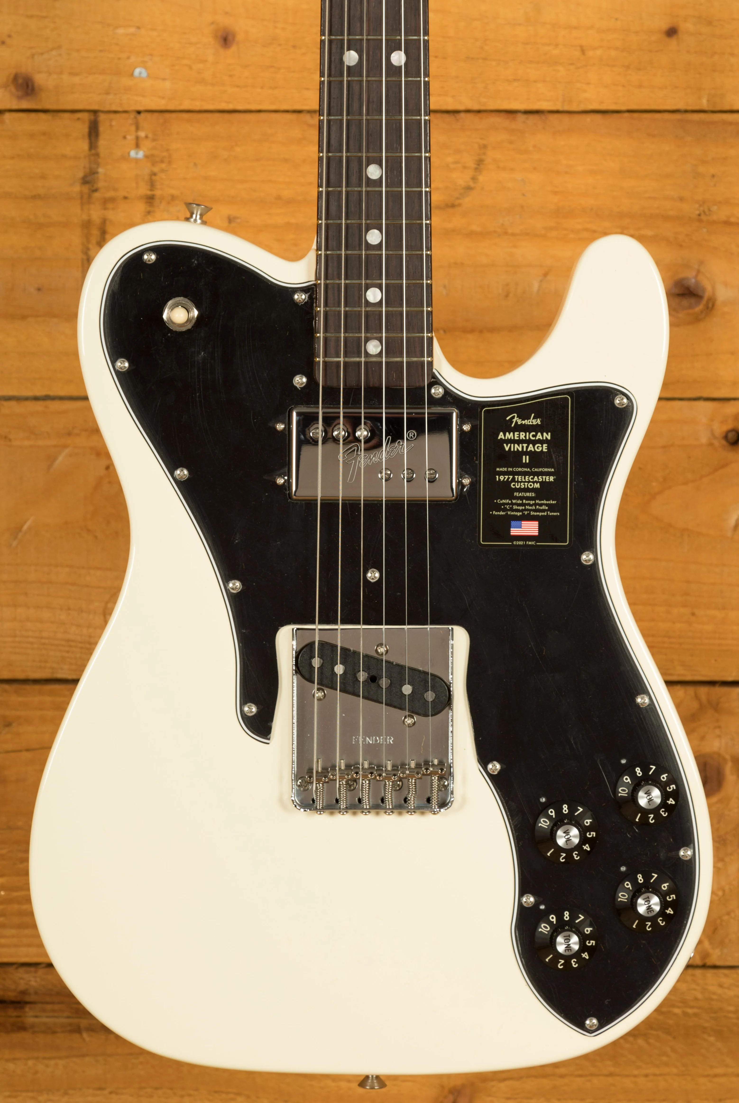 This Tele features a Wide Range humbucking pickup in the neck position and a Pure Vintage '77 single-coil Tele pickup in the bridge position. To create an authentic Wide-Range humbucking pickup, Fender resurrected CuNiFe magnets, which had been out of production since 1981, and are an essential element in recreating the sonics of the original. The American Vintage II 1977 Telecaster Custom plays like a dream with a '77 'C'-shape hard rock maple neck with a 7.25" radius rosewood fingerboard and vintage tall frets. Other features include a Tele bridge with 6 slotted steel barrel saddles, 'F' stamped tuners, a convenient 'Bullet' style truss rod nut and a three-bolt neck plate with Micro-Tilt mechanism. Finished in Olympic White over an alder body.