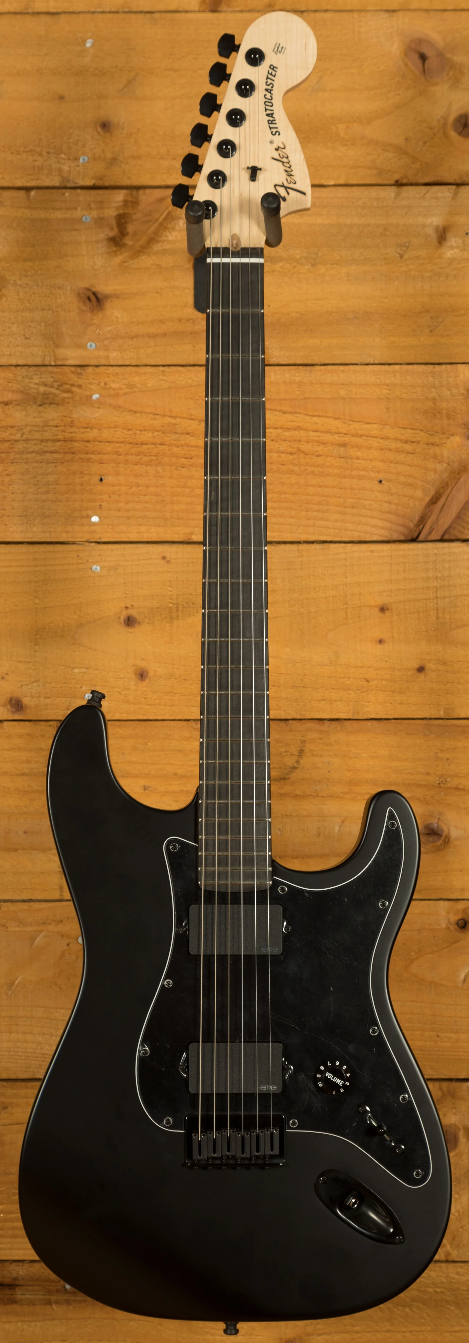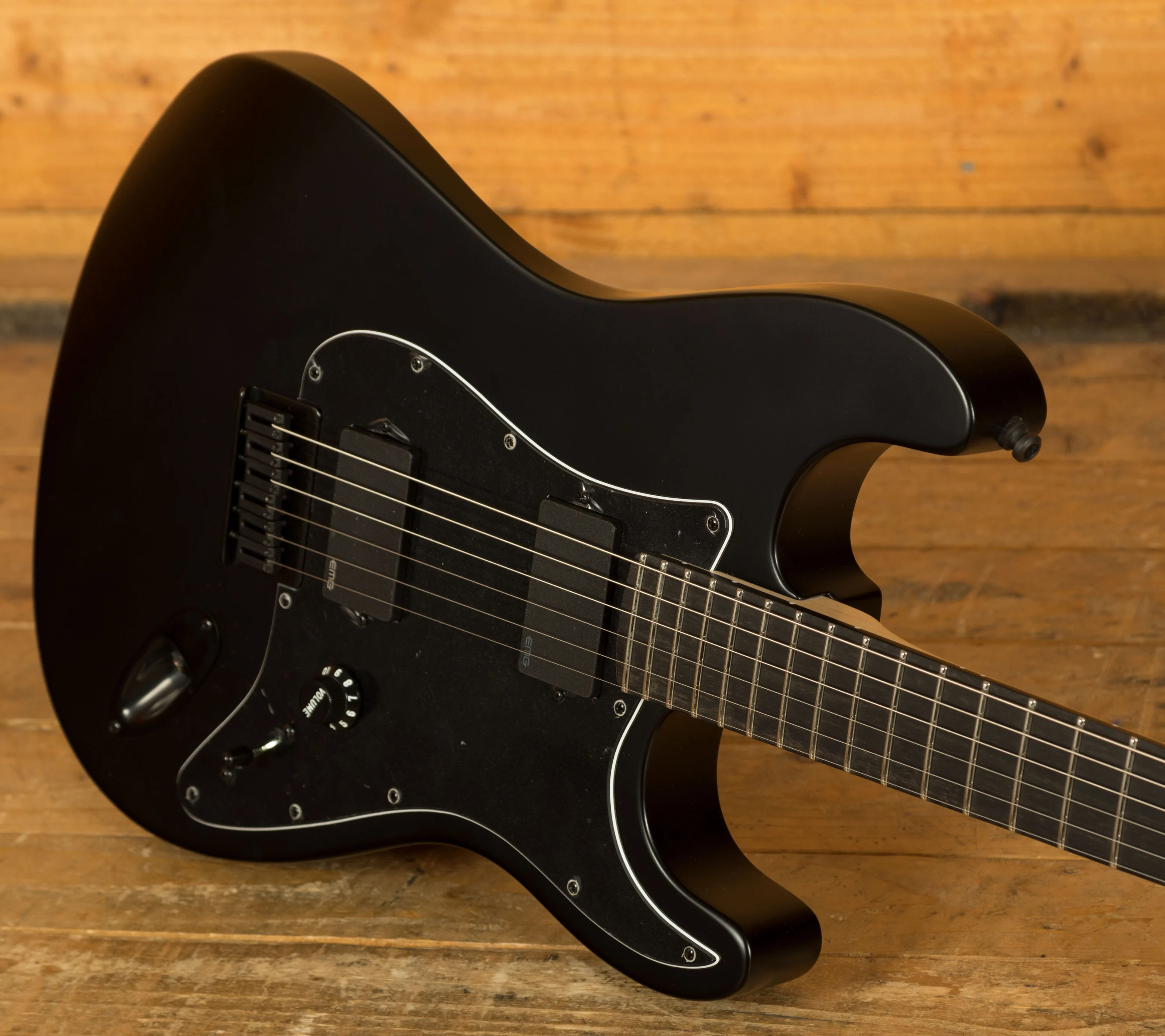 The Stratocaster is constructed from a rich and resonant Mahogany body, finished in a slick Flat Black it looks super sweet and stealthy. The slab like body is incredibly well weighted and feels incredible to play, just as every Stratocaster should be.