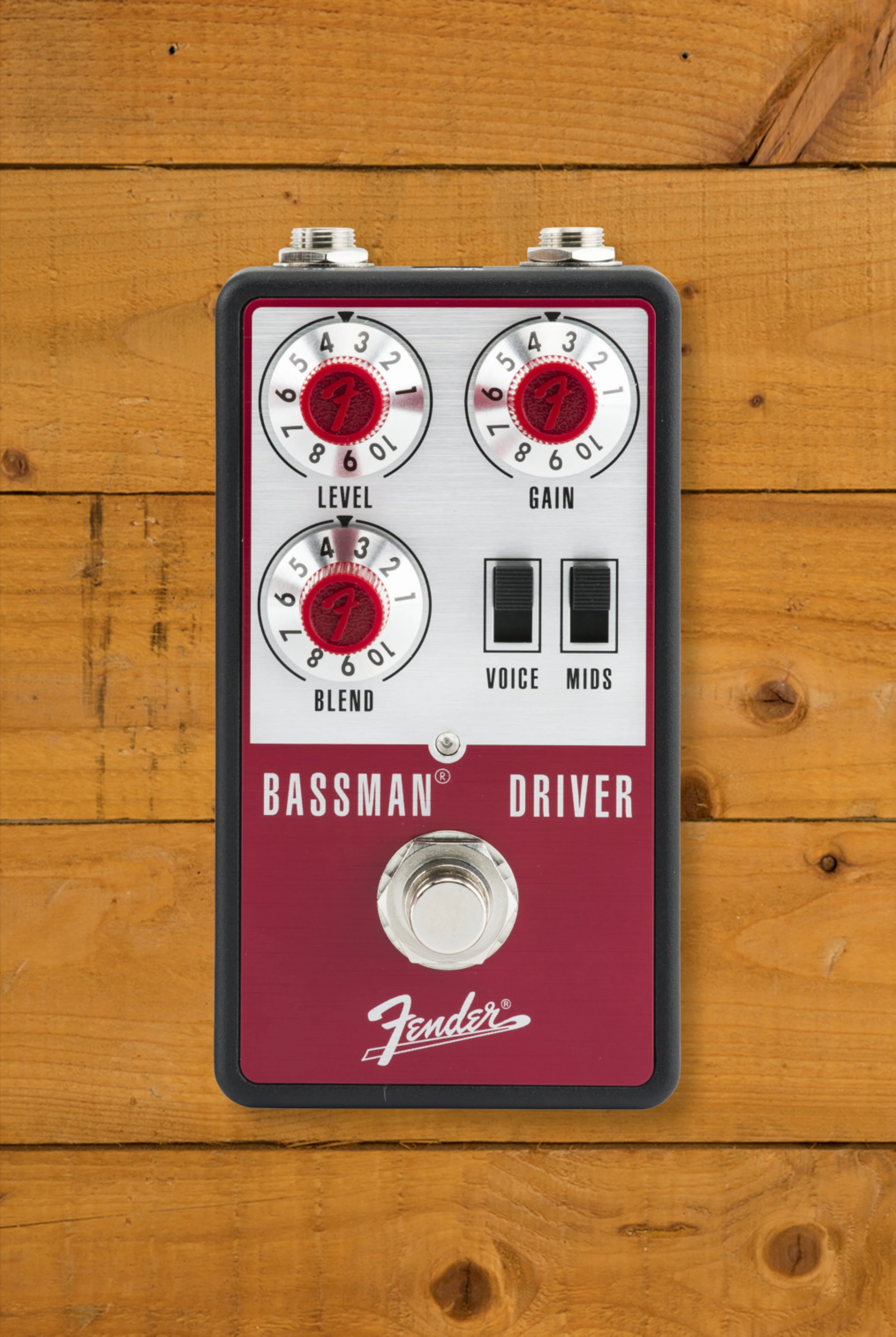 The Bassman Driver offers several tone-shaping tools to help users dial in their ideal sound. The Voice switch engages an additional clipping stage, delivering a more aggressive modern distortion when needed. The Mids switch offers two preset mid-frequency boosts to add definition and punch, while an internal tone control allows players to adjust the high-frequency content of the drive. The Blend control is especially useful, allowing users to reintegrate their clean signal for improved note clarity, low-end retention, and overall dynamics - ideal for maintaining definition in complex mixes or live settings.