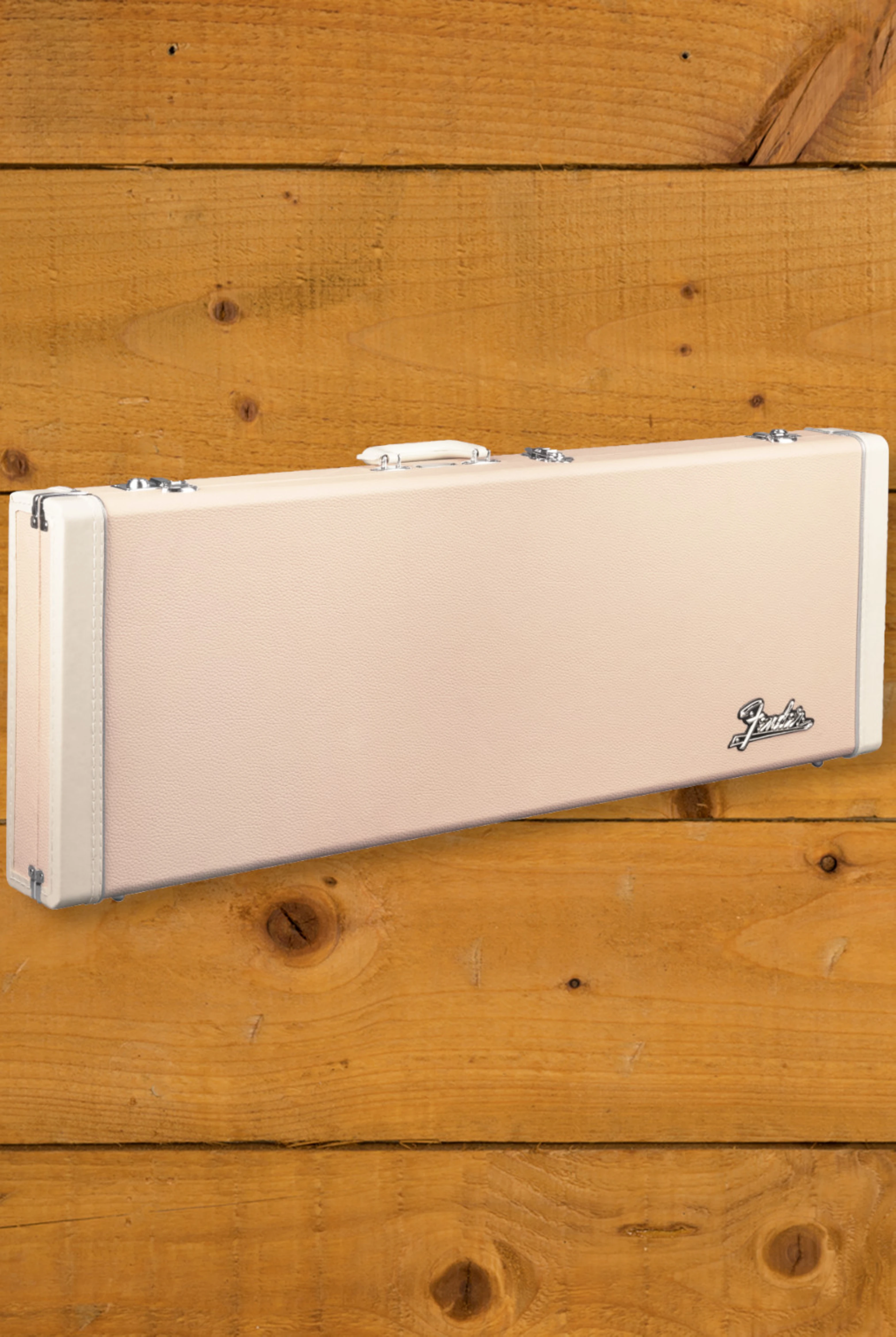 Protect your Fender electric guitar with style and dependability with the Classic Series wood case. This 3-ply hardshell wood case boasts a Shell Pink vinyl wrap, cream ends, and triple chrome-plated hardware throughout. The vinyl wrapped steel carry handle and steel draw latches provide sturdy and secure transport for your guitar, with one locking latch featuring a key set for extra security. Inside, the soft crushed acrylic plush cream lining ensures your guitar stays scratch and damage-free during transit. With 8mm sides and 5mm top and bottom, this case is built to withstand the rigours of the road. Plus, the spacious accessory storage compartment with lid allows you to carry spare strings, picks, tuners, or other small items with ease. Suitable for most right-handed Stratocasters and Telecasters, the Classic Series wood case offers lasting style and peace of mind.