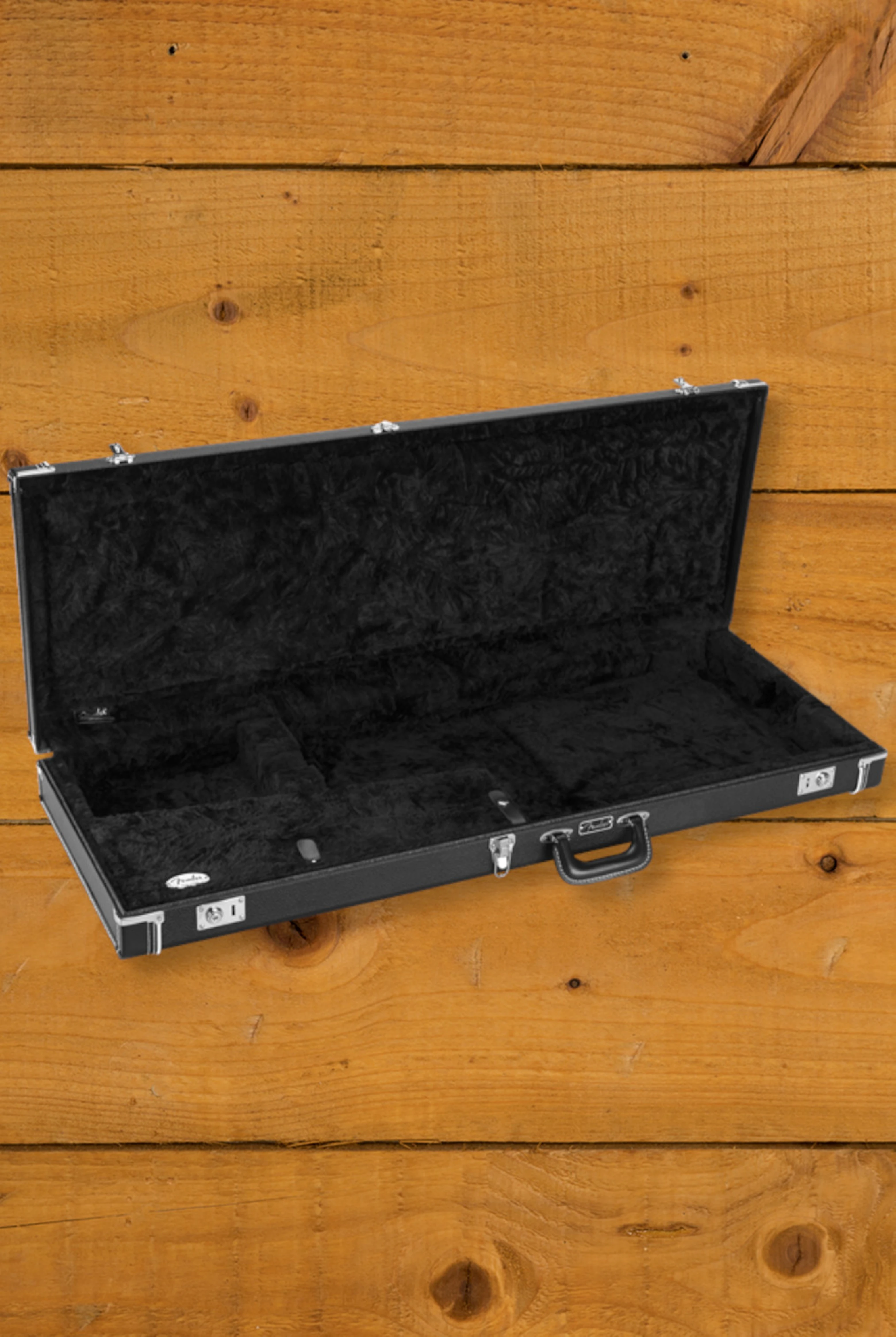Protect your Jazzmaster guitar in style with the Classic Series wood case. Made with road-reliable materials, this 3-ply hardshell wood case is wrapped in sleek black vinyl and features triple chrome-plated hardware throughout. The vinyl wrapped steel carry handle and steel draw latches provide secure transport for your guitar, with one locking latch featuring a key set for added security. Inside, the soft crushed acrylic plush lining keeps your guitar scratch-free during transit. Plus, the large accessory storage compartment with lid allows you to carry spare strings, picks, tuners, or other small items with ease. With 8mm sides and 5mm top and bottom, this case is built to withstand the rigors of the road. Suitable for most right-handed Jazzmaster guitars, the Classic Series wood case offers lasting style and peace of mind.