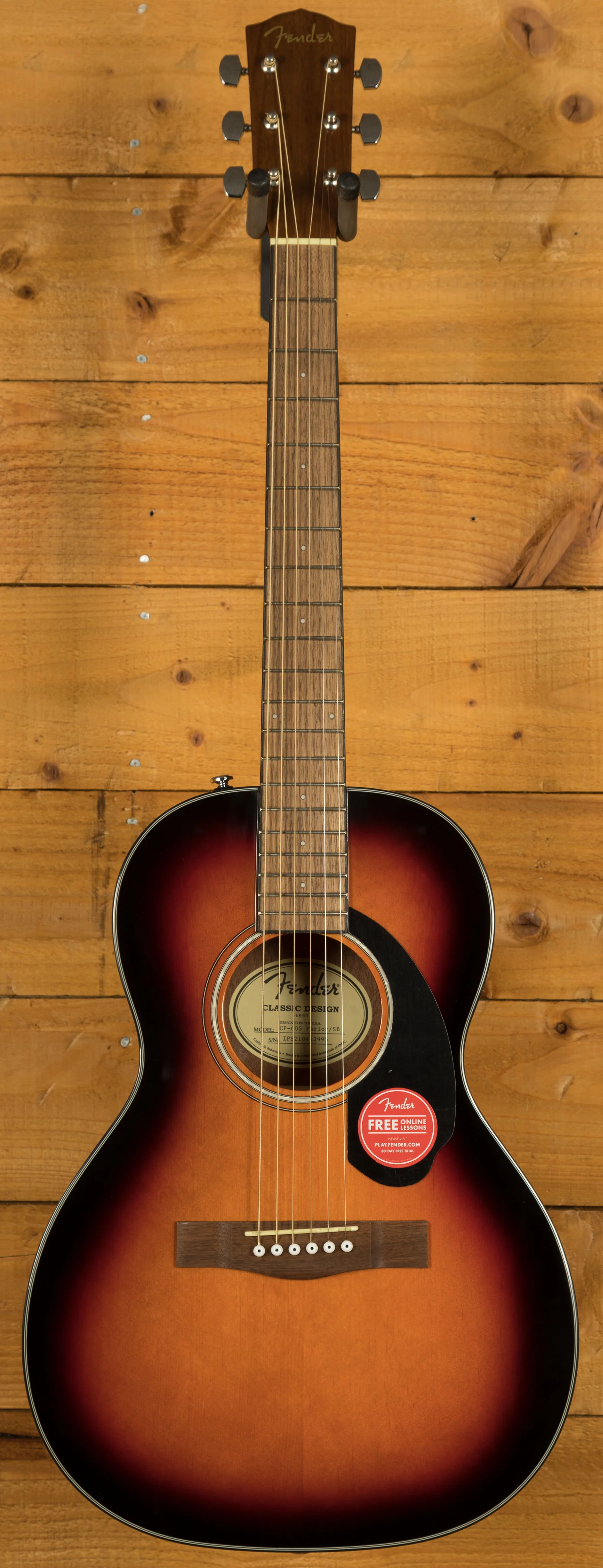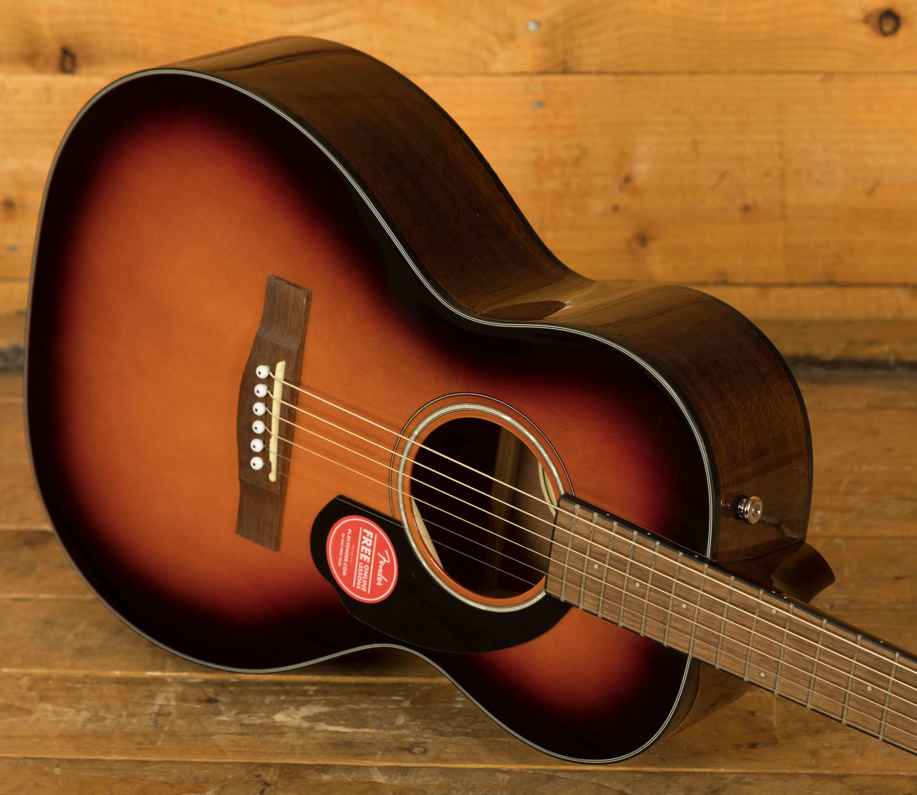 Featuring a solid Spruce top, laminated Mahogany back and sides and a super slick 3-Tone Sunburst colour option. This guitar is super resonant and has a really nice mid range.