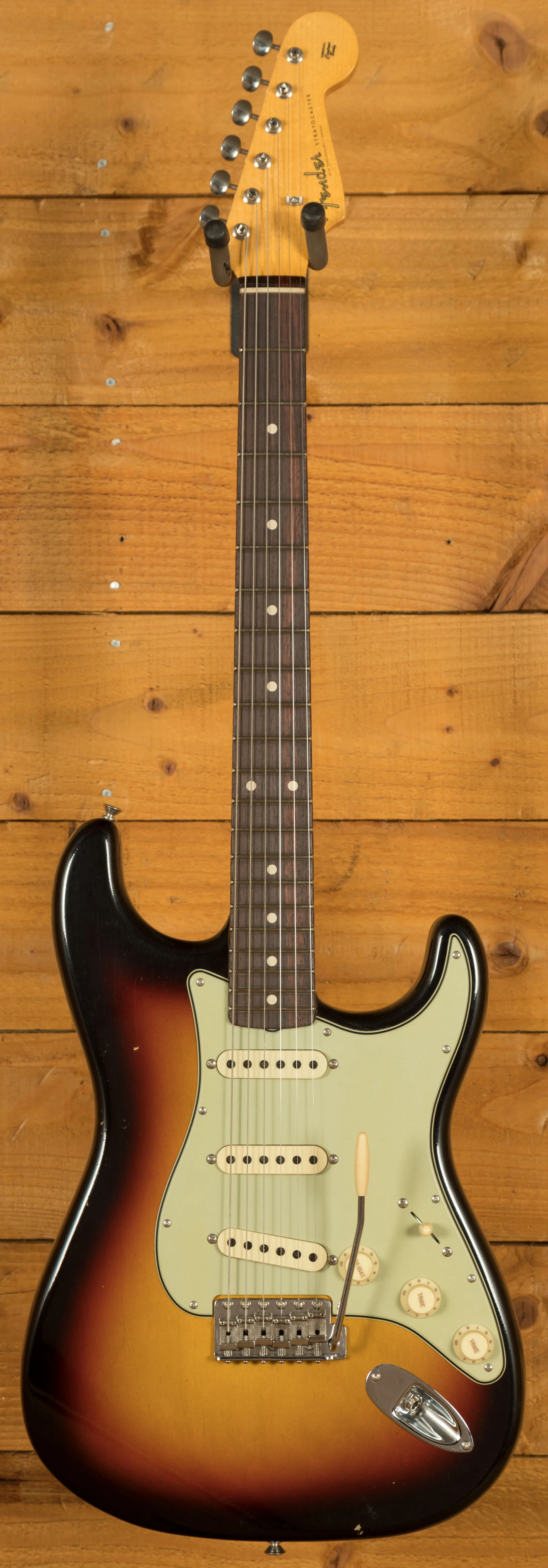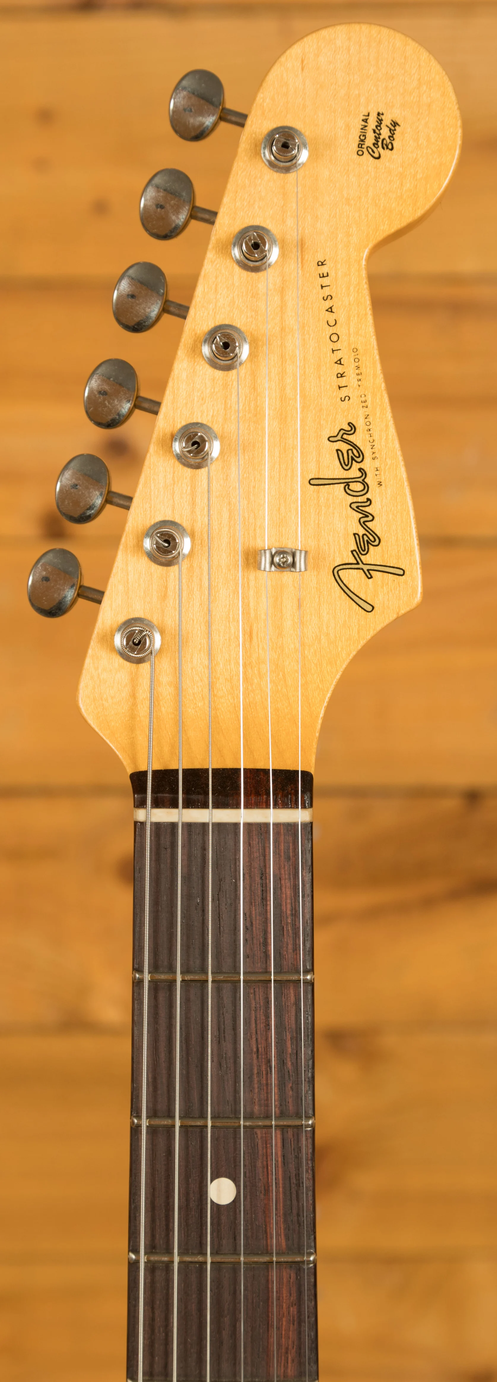 The rift sawn Maple neck has a smooth finish and a AAA grade sort for dark Rosewood fingerboard. With a 7.25"-9.5" compound radius and 21 6100 frets, the '59 Custom Shop Stratocaster can handle anything you throw at it without even breaking a sweat; it's supremely comfortable and well balanced. The '59 Esquire "C" profile is a joy to play and offers a great platform for both rhythm and lead playing. With the inclusion of Closet Classic hardware you have brilliant tuning stability and intonation.