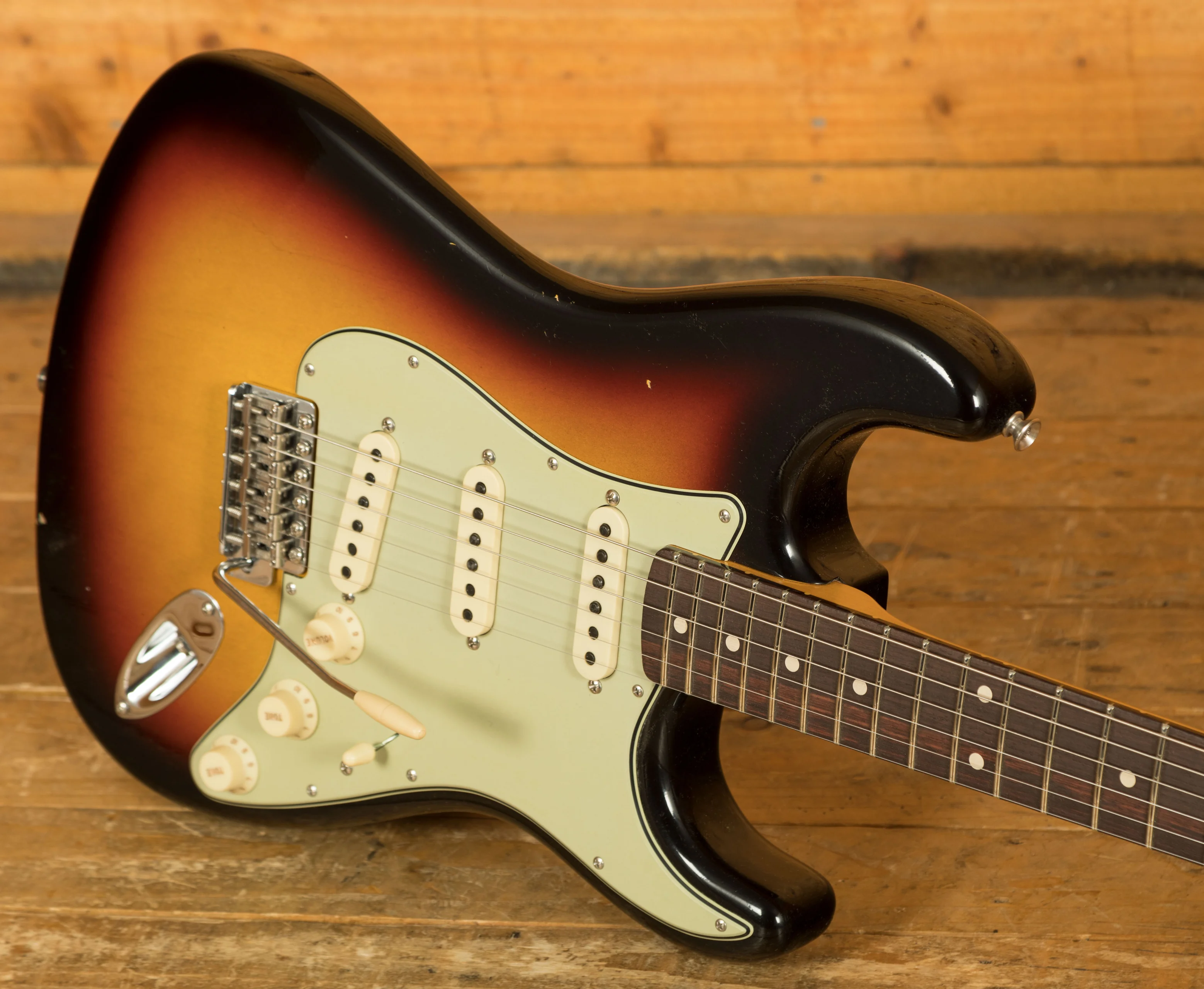 An Alder body is finished in the classic 3-Tone Sunburst, one of Fender's most iconic finishes, it's a real beauty! Authentically aged, this finish will wear beautifully with time and develop its own character even further. The thin nitro finish also allows the natural resonance of the body to sing and sustain much more effectively.
