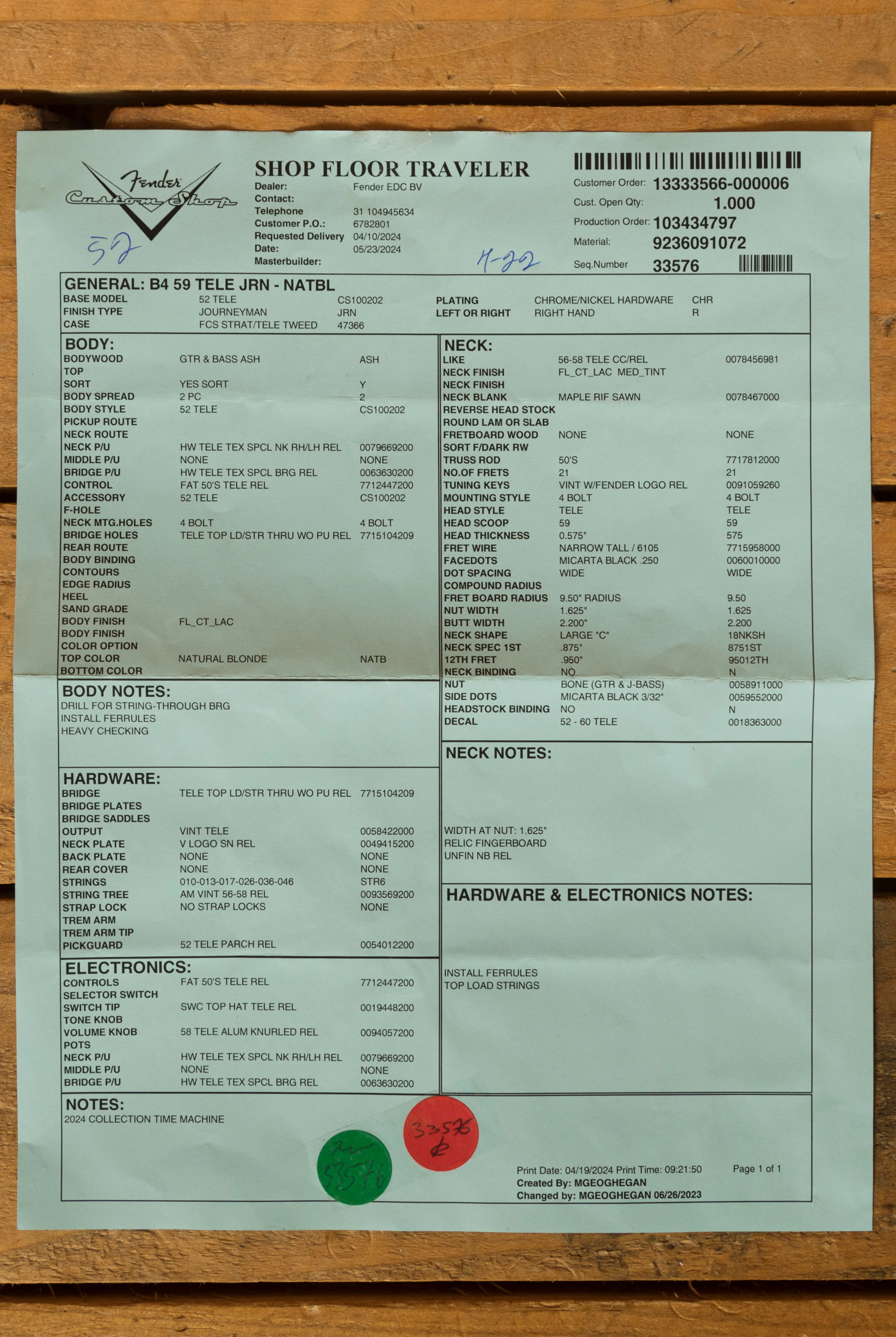 Underneath its vintage exterior lies a powerhouse of tone. Equipped with a pair of Custom Shop hand-wound Texas Special pickups and Fat '50s wiring, this Telecaster not only looks the part but also delivers lively, responsive tones bursting with the full-range Tele character. Whether you're strumming at home, jamming with friends, or playing a weekend gig, this guitar is sure to inspire.
