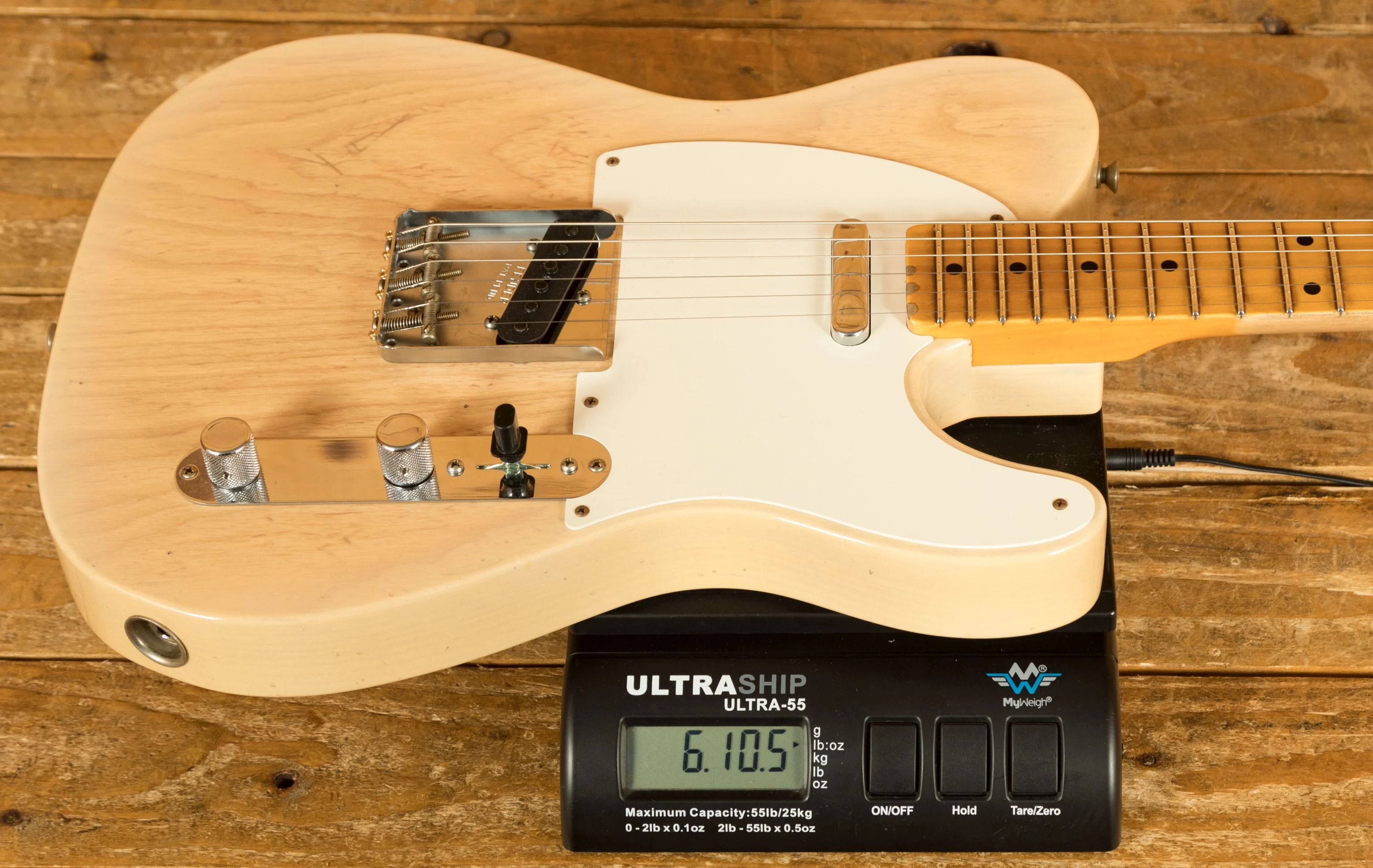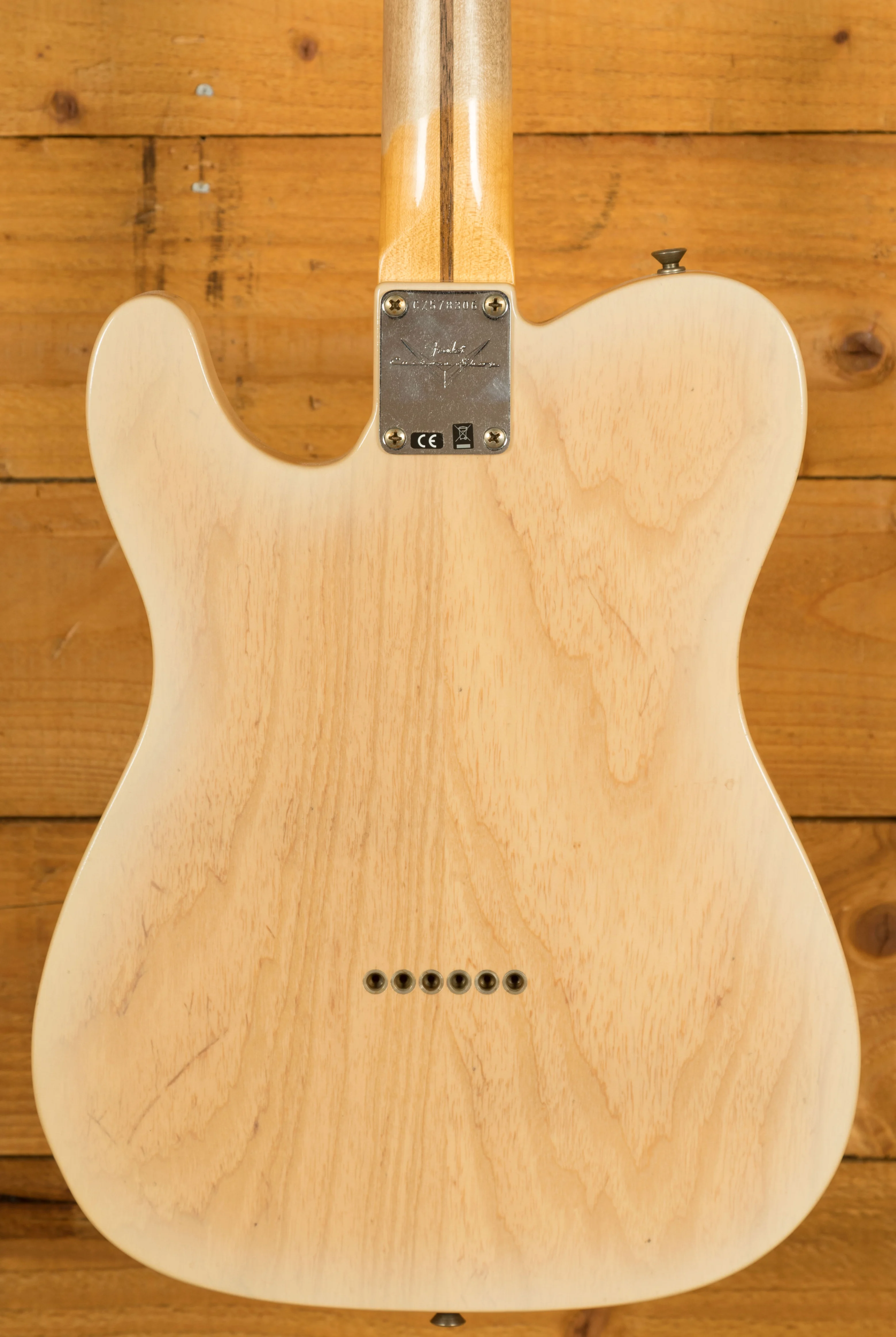 Crafted with a two-piece select ash body, aged to perfection with a Journeyman Relic flashcoat lacquer finish in the iconic Natural Blonde colour, this Telecaster embodies timeless elegance. Its one-piece rift sawn maple neck and single ply parchment pickguard further enhance its classic aesthetic, ensuring it stands out as a true vintage-inspired gem.