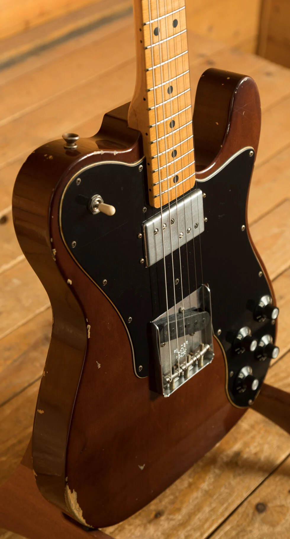 A traditional select Ash body is completed with the incredible Aged Walnut finish. The '72 Tele has a unique relic'd nitro finish, this gives the look and feel of a vintage guitar but with all the tone and playability of a modern one. This finish will wear beautifully with time and develop its own character even further. It also allows the natural resonance of the body to sing and sustain much more effectively compared with other finishes.