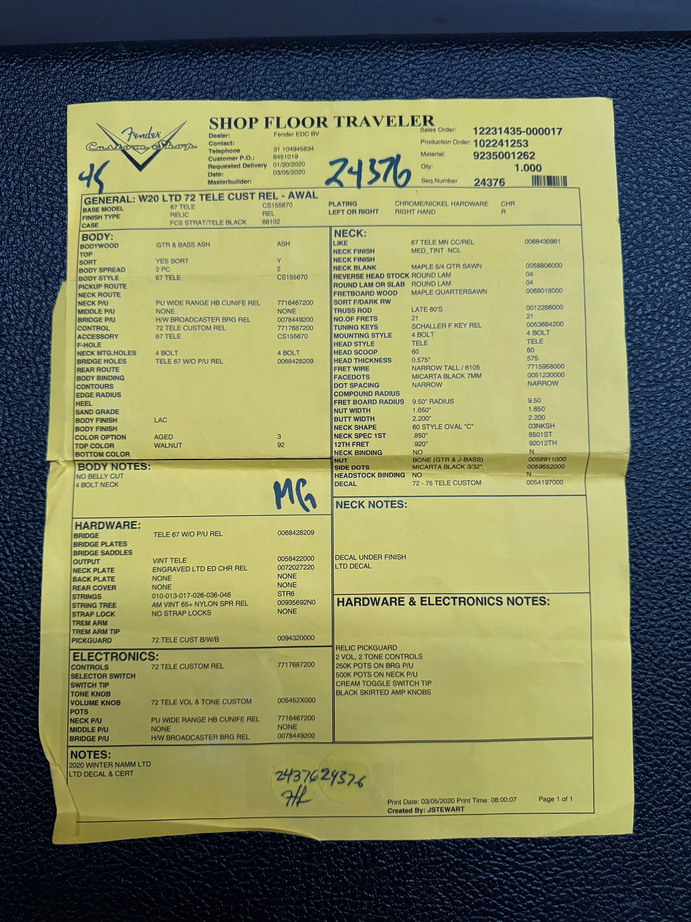 Sold originally by Peach Guitars. This guitars arrives back with us in pretty much exactly the same way it left. This really is a superb instrument and if we ordered this again from the Fender CS, it would cost over 5000 GBP!