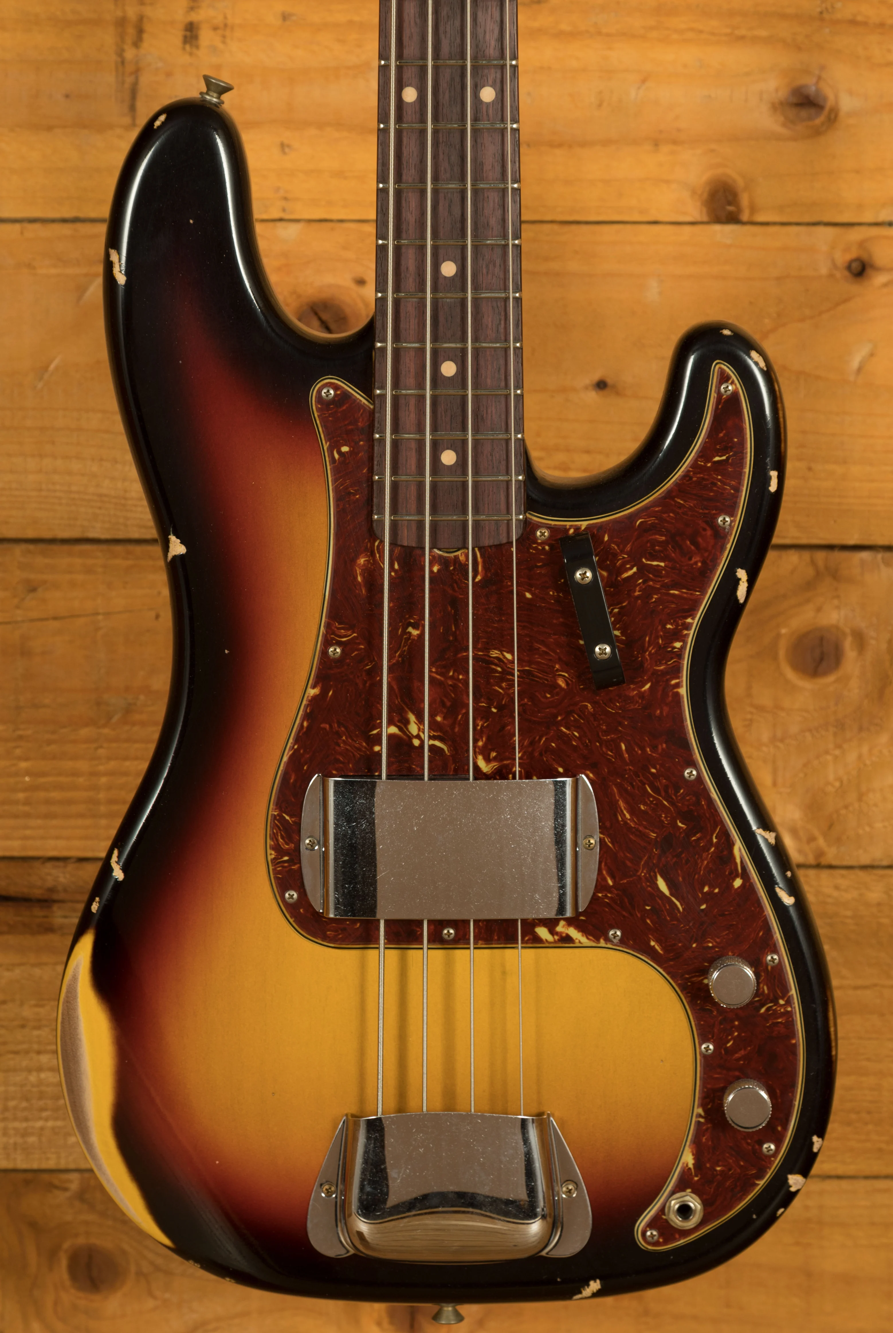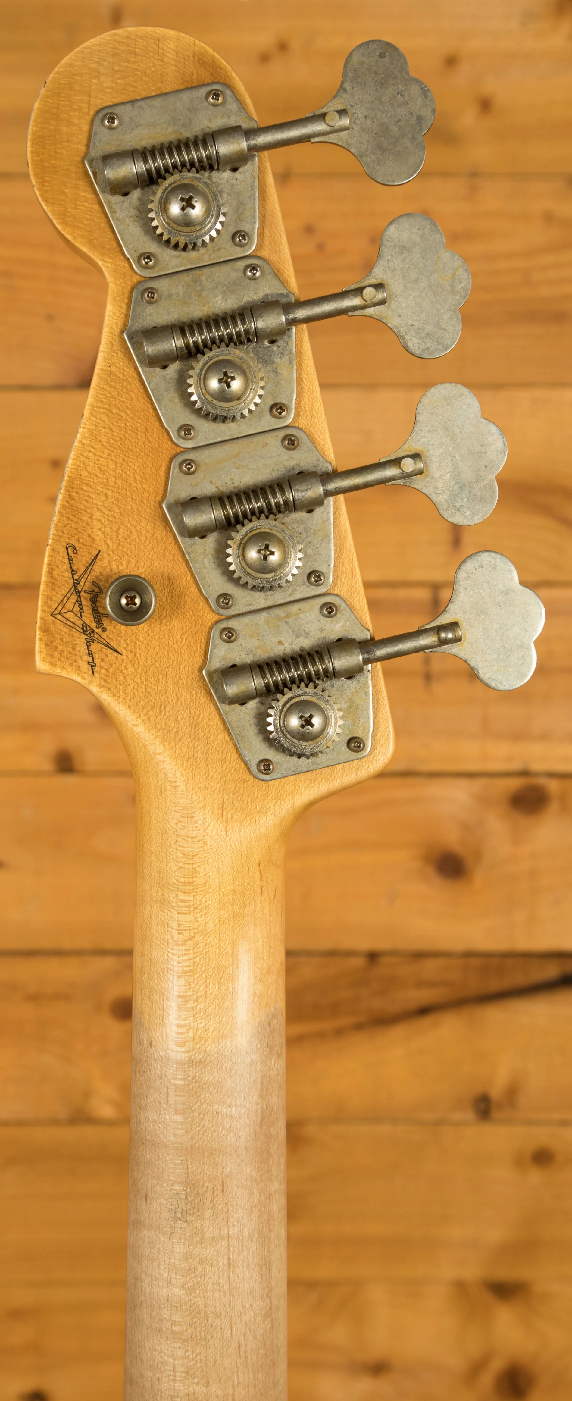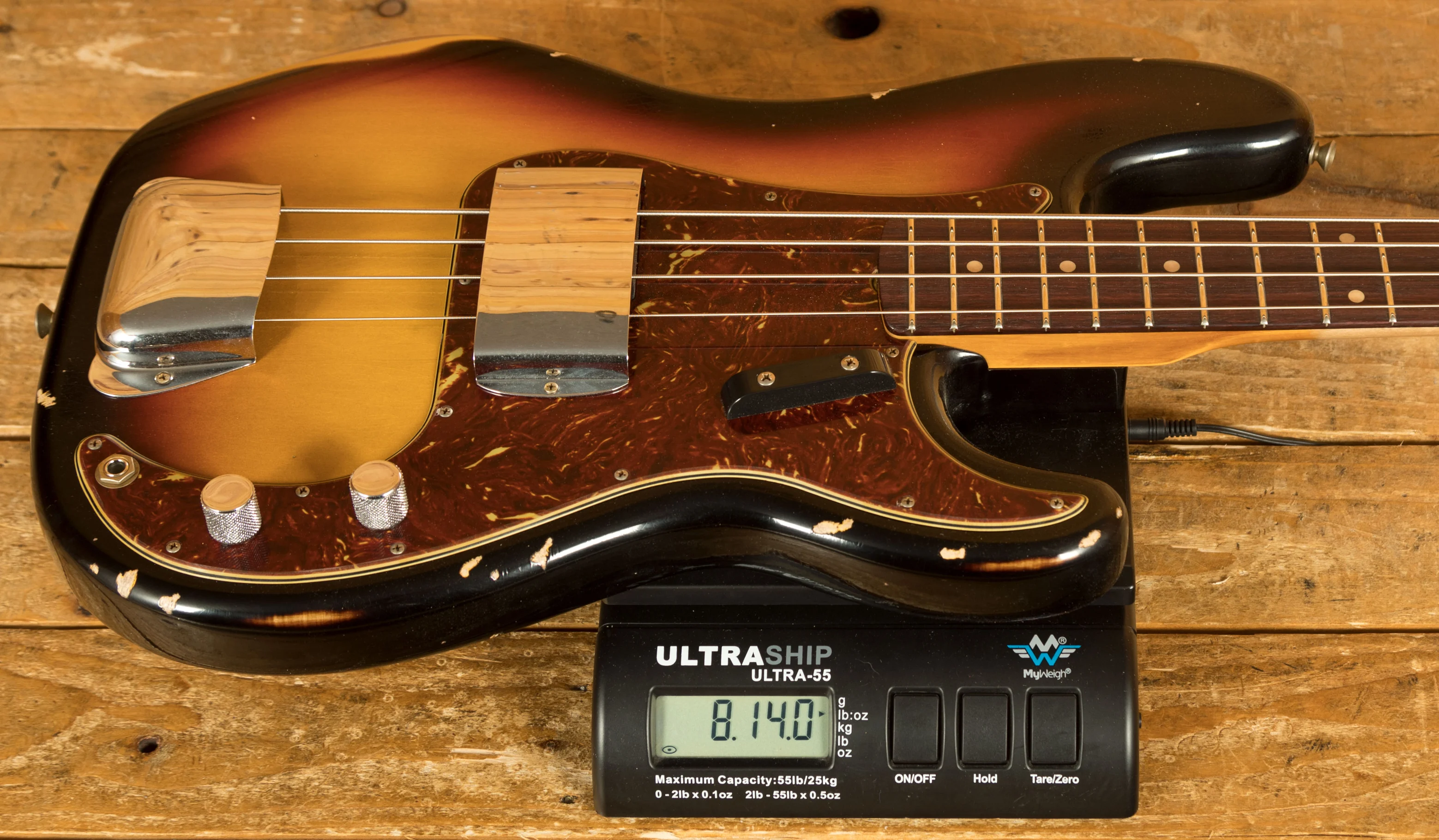 Loaded with a Hand wound '62 Precision Bass pickup, you get period correct Fender tone, there's just no mistaking that signature Fender bass thump! it really does give off the vintage vibe. Vintage machine heads and a relic bridge deliver ultimate tuning stability and intonation.