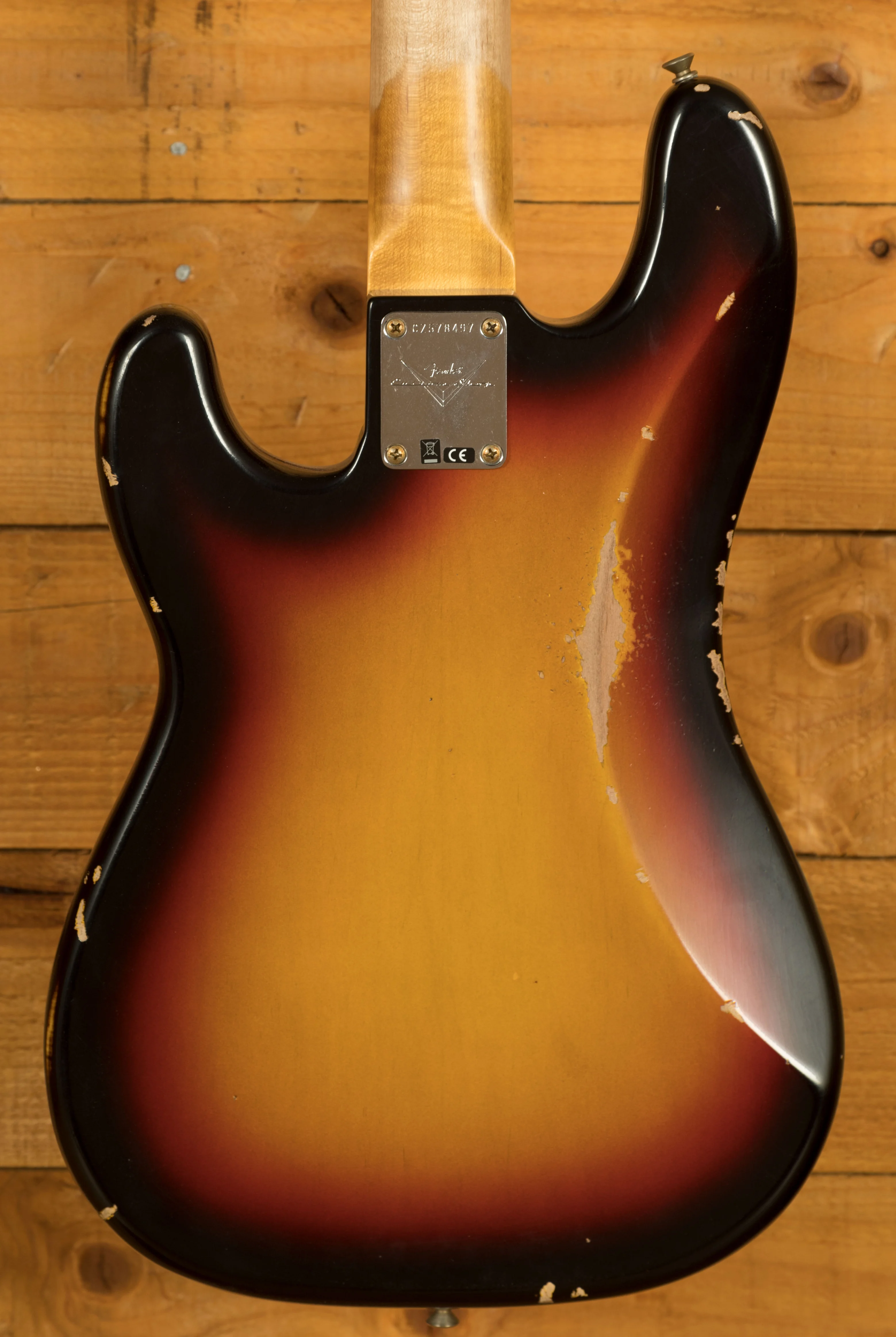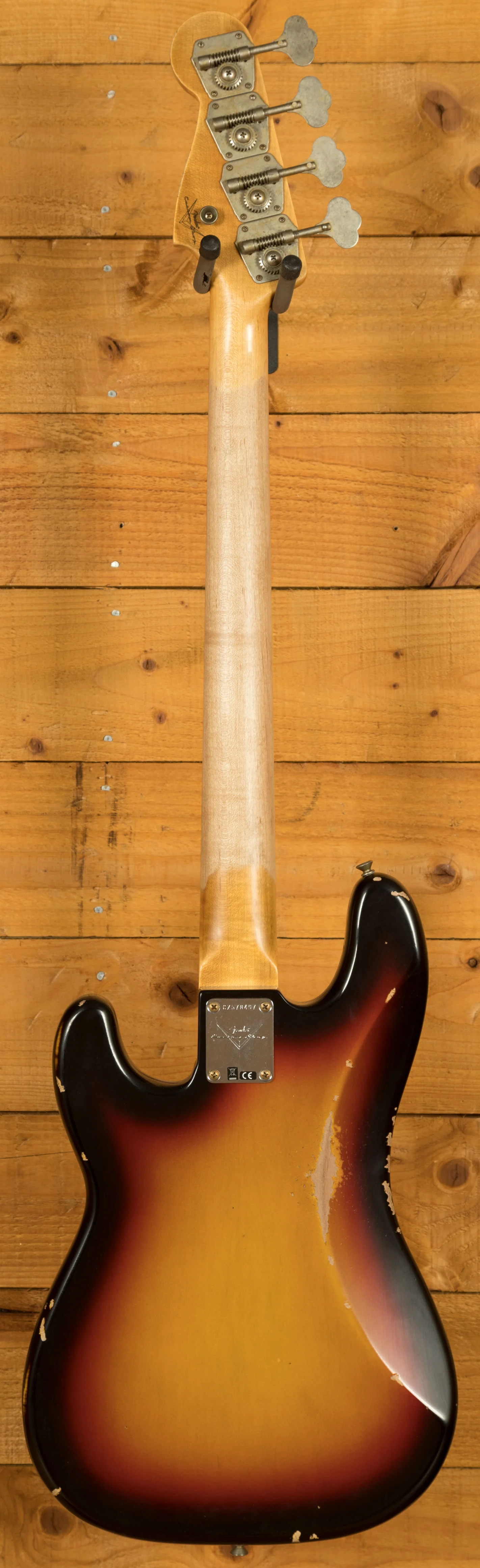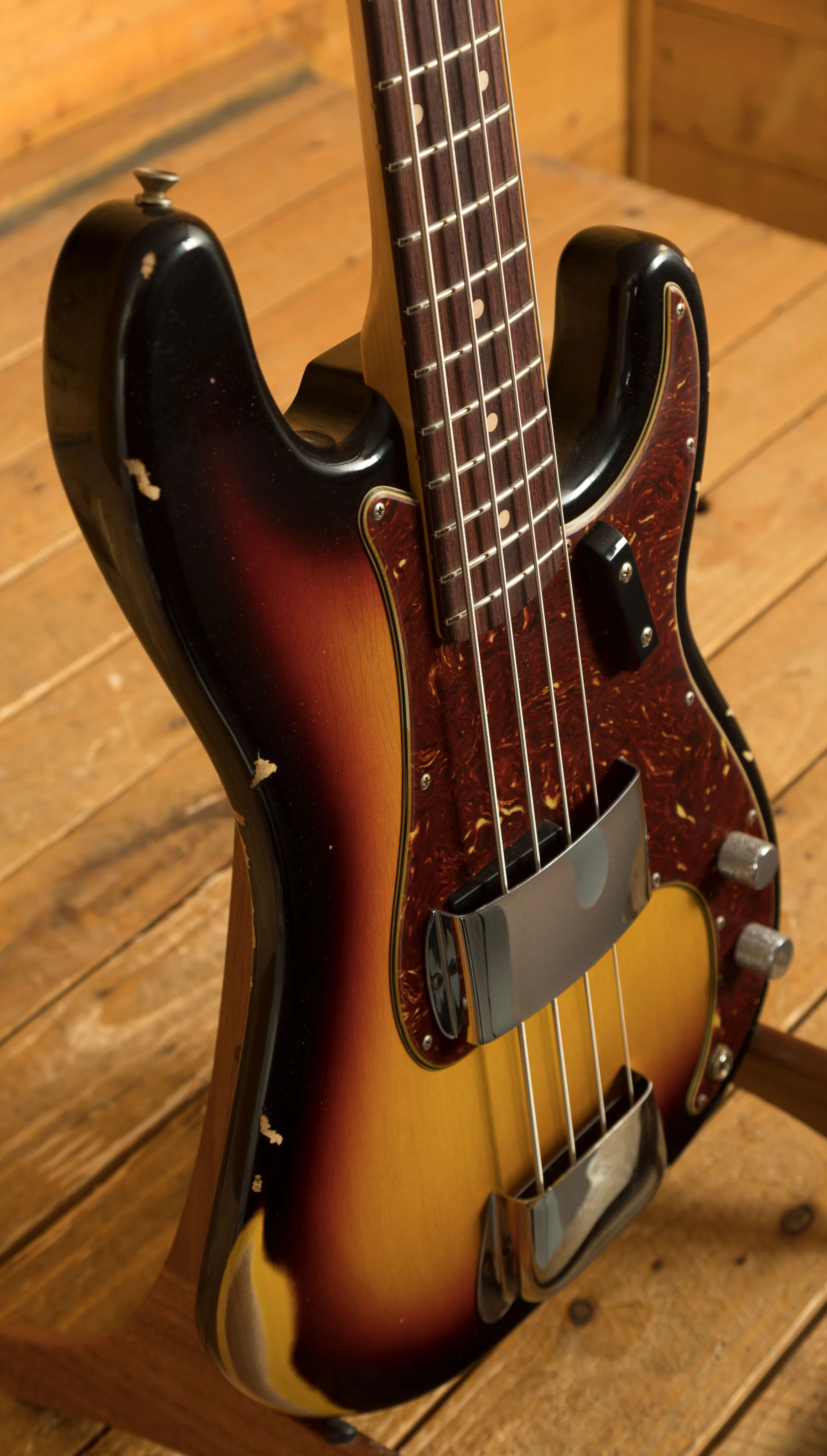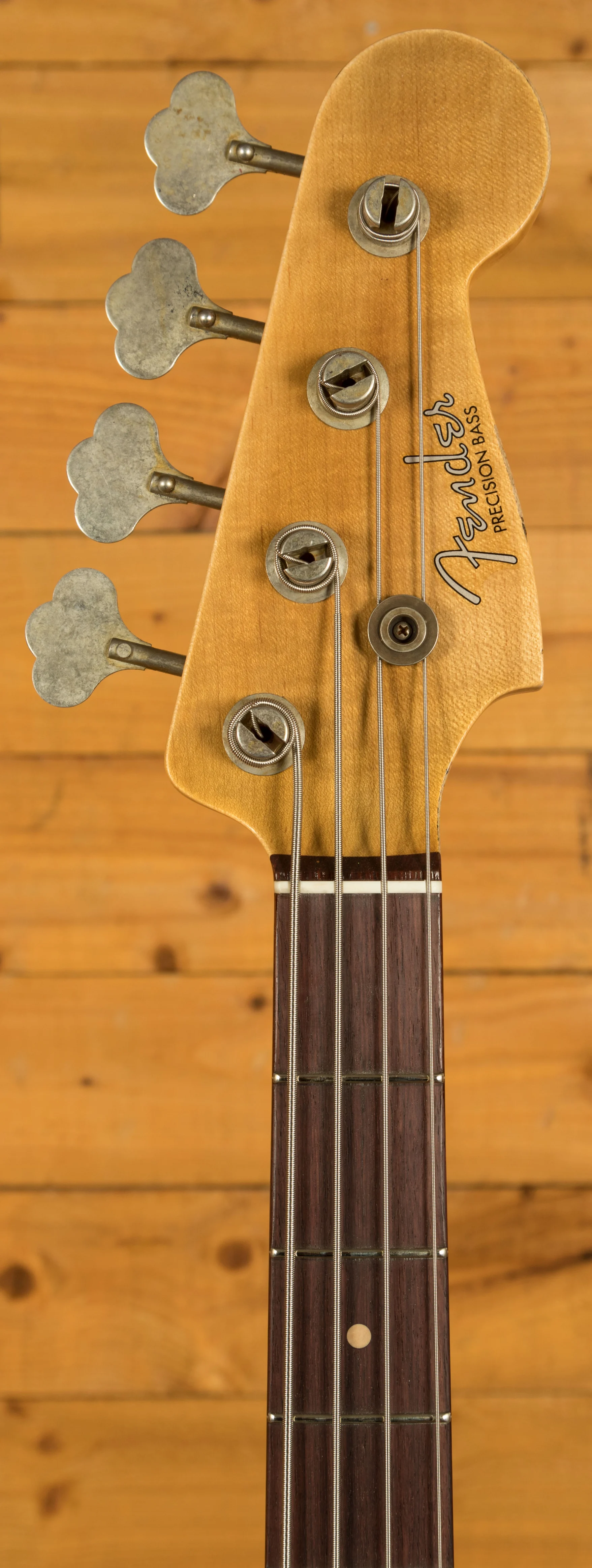 Loaded with a Hand wound '62 Precision Bass pickup, you get period correct Fender tone, there's just no mistaking that signature Fender bass thump! it really does give off the vintage vibe. Vintage machine heads and a relic bridge deliver ultimate tuning stability and intonation.