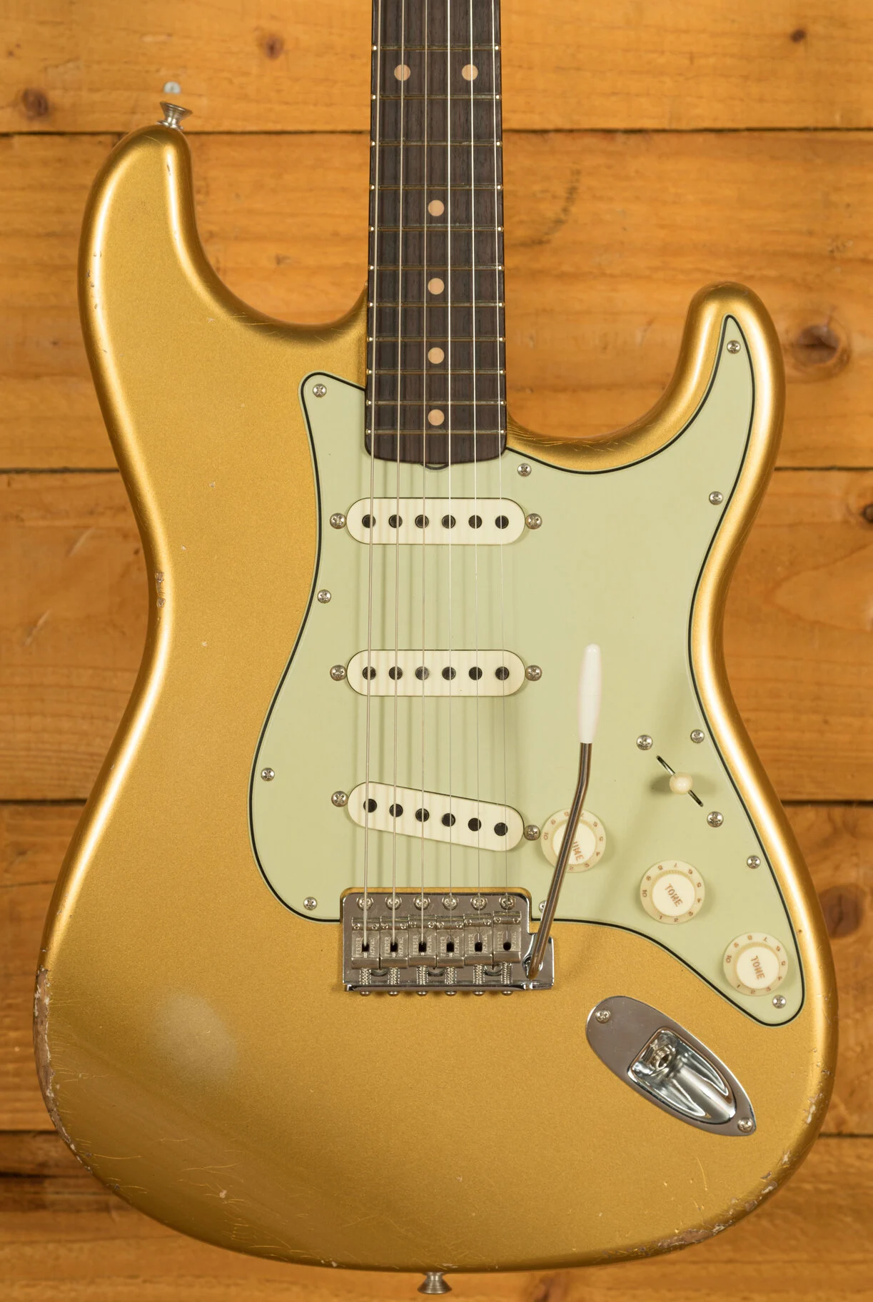 The rift sawn medium tint Maple neck has a smooth finish and a AAA-grade sort for dark Rosewood fingerboard. The '62 Custom Shop Stratocaster also features a '60 Style Oval "C" neck shape, a 9.5" fingerboard radius, 21 6105 frets and a 1.650" Nut Width. It's supremely comfortable and well balanced. With the inclusion of Closet Classic hardware you can expect great stability and intonation.