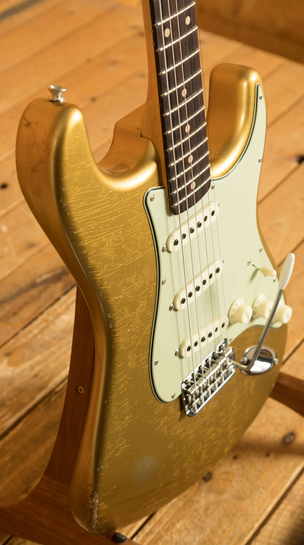 The Alder body is finished in an awesome Aged Aztec Gold relic nitro finish. Authentically aged, this finish will wear beautifully with time and develop its own character even further. It also allows the natural resonance of the body to sing and sustain much more effectively compared with other more modern finishes.