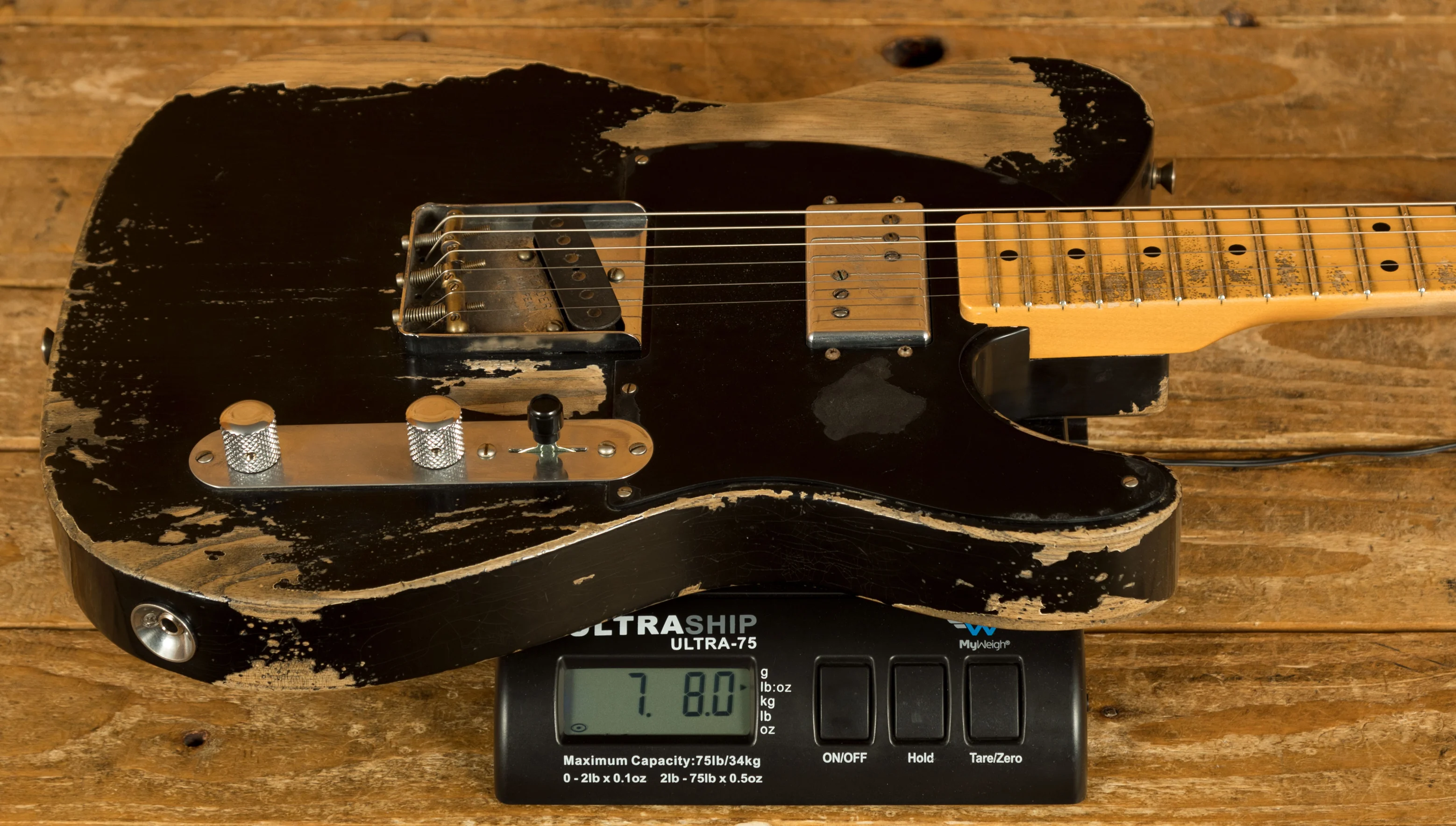 A sort for lightweight Ash body is finished in an awesome Aged Black Heavy Relic, it's a real beauty! Authentically aged, this finish will wear beautifully with time and develop its own character even further. The thin nitro finish also allows the natural resonance of the body to sing and sustain much more effectively.