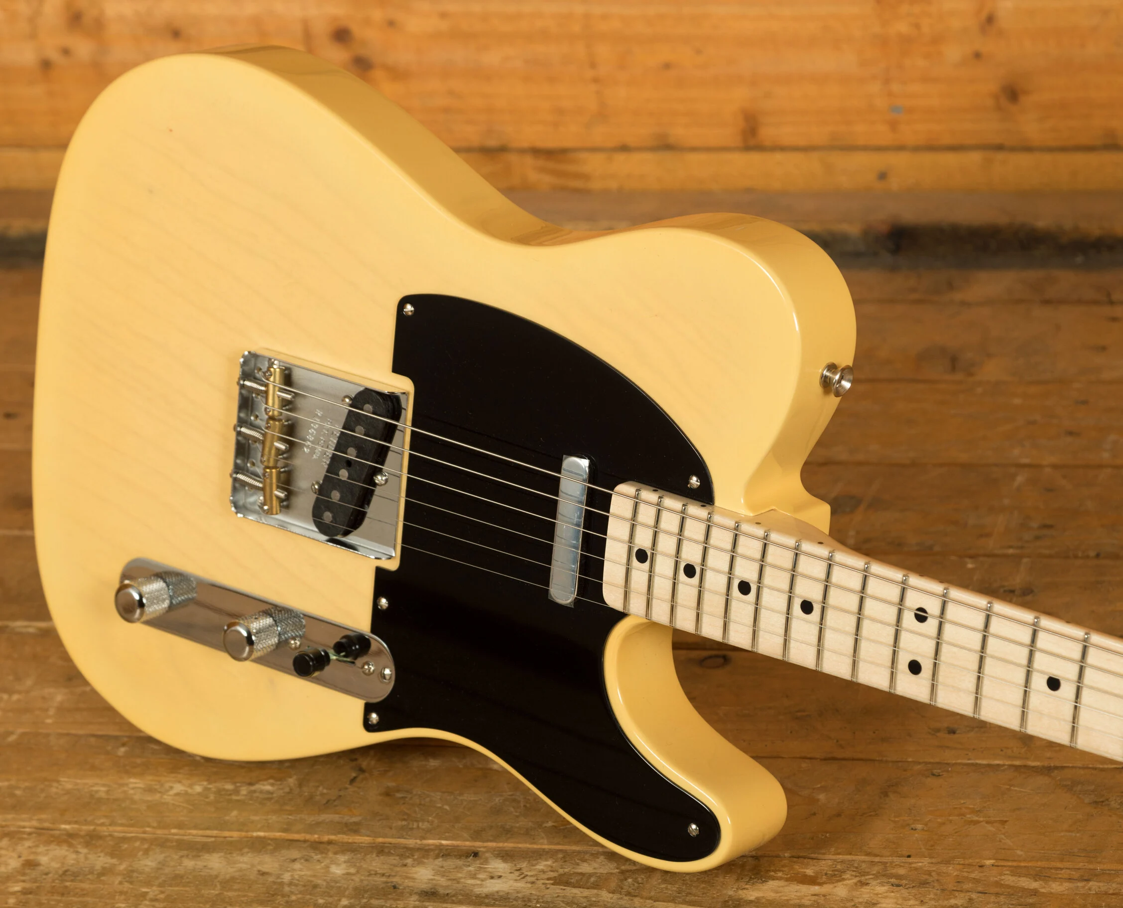 The Ash body is finished in a vibrant Nocaster Blonde NOS nitro lacquer, period correct, this finish will wear beautifully with time and develop its own character even further. It also allows the natural resonance of the body to sing and sustain much more effectively compared with other finishes. The NOS finish gives the appearance of a New Old Stock guitar, one that has been perfectly preserved since 1951 and doesn't feature any kind of ageing or relic work.