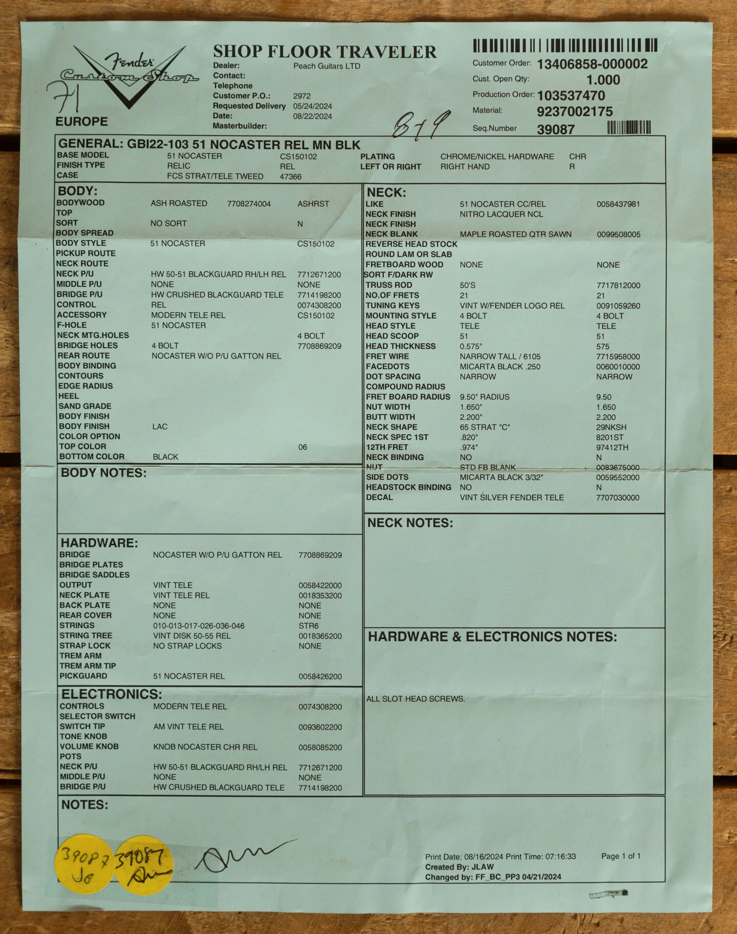 The Ash body is finished in a classic Black nitro lacquer, it's a real beauty! Authentically aged, this finish will wear beautifully with time and develop its own character even further. The thin nitro finish also allows the natural resonance of the body to sing and sustain much more effectively.
