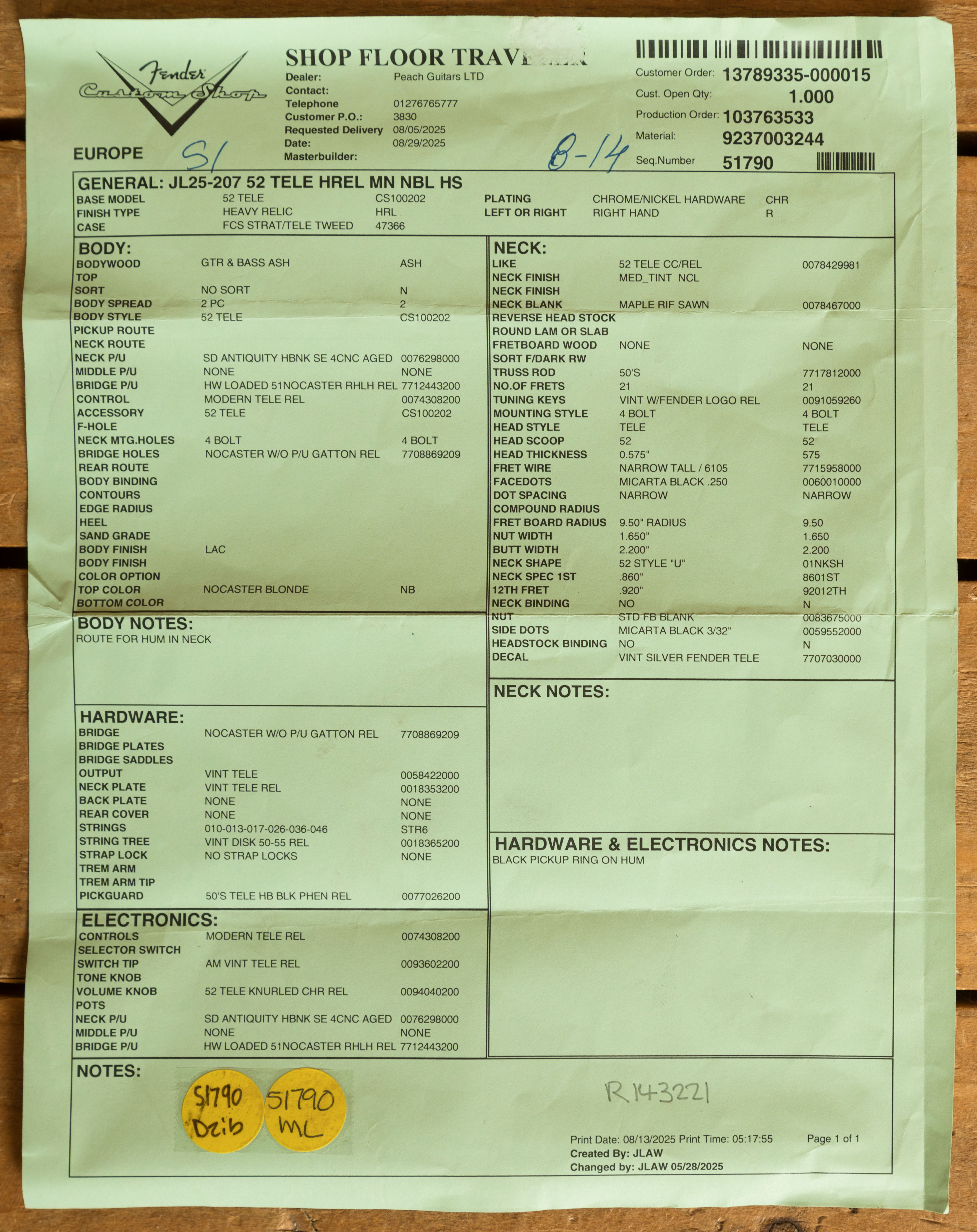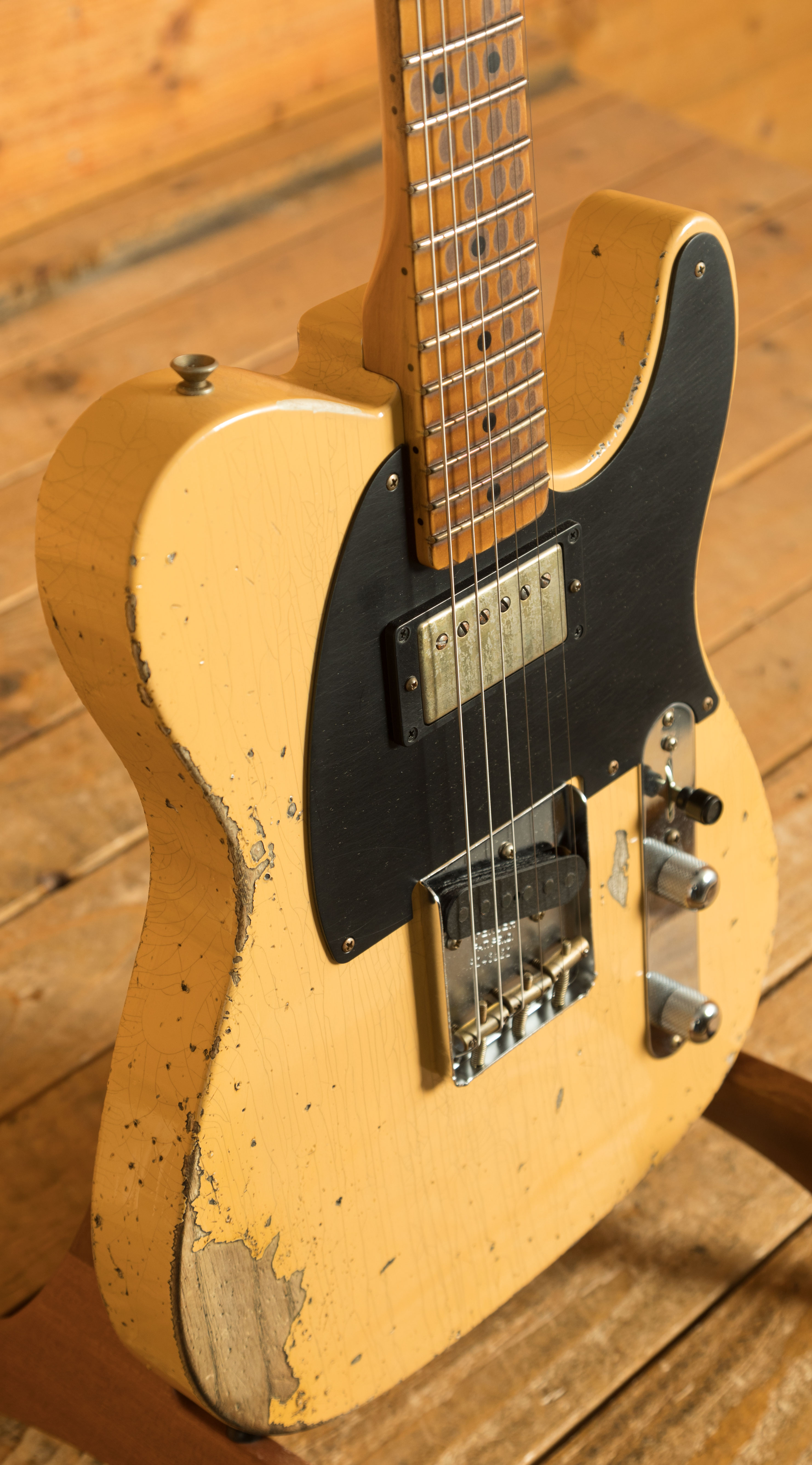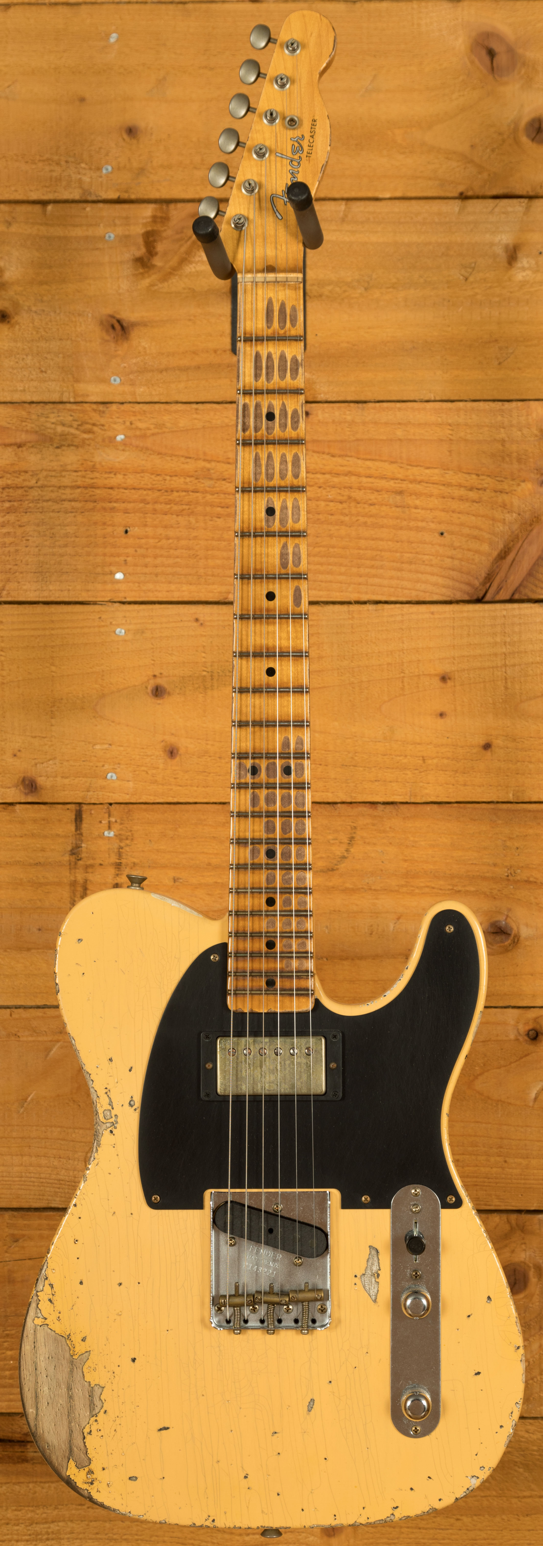 The Fender Custom Shop '52 HS Telecaster Heavy Relic is a premium instrument built to capture the spirit and craftsmanship of Fender's earliest designs - most specifically, the 50s 'Micawber' Tele that the legendary Keith Richards played on tracks like Honky Tonk Women, Brown Sugar, and Before They Make Me Run. Its ash body is finished in a Nocaster Blonde Heavy Relic nitrocellulose lacquer, giving it an authentically aged look and feel. The thin nitro finish allows the wood to resonate more freely, improving sustain and tonal clarity, while also naturally evolving over time for a unique, individual patina.