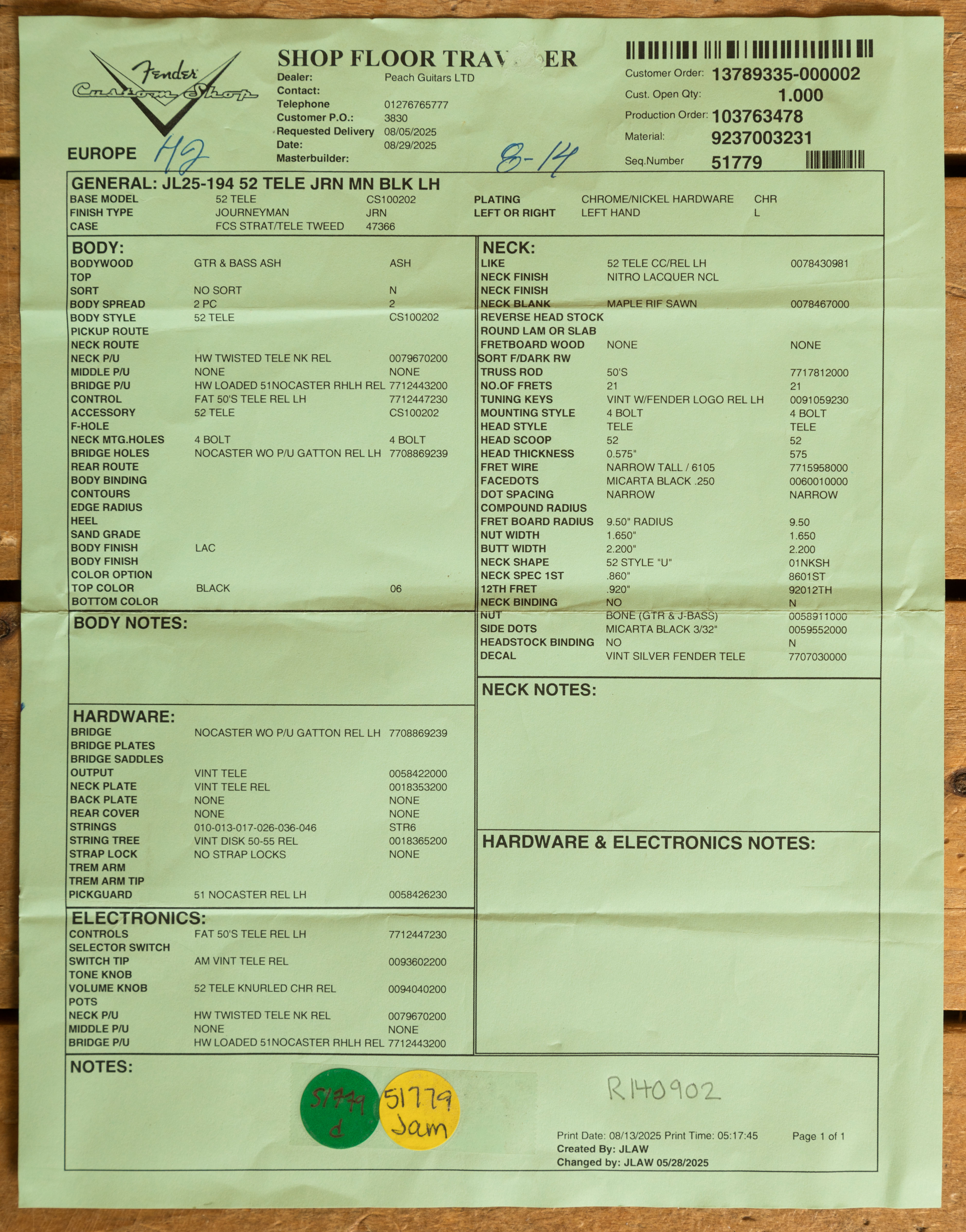 Skip to content Fender Custom Shop 52 Tele Journeyman - Maple - Black - Left-Handed