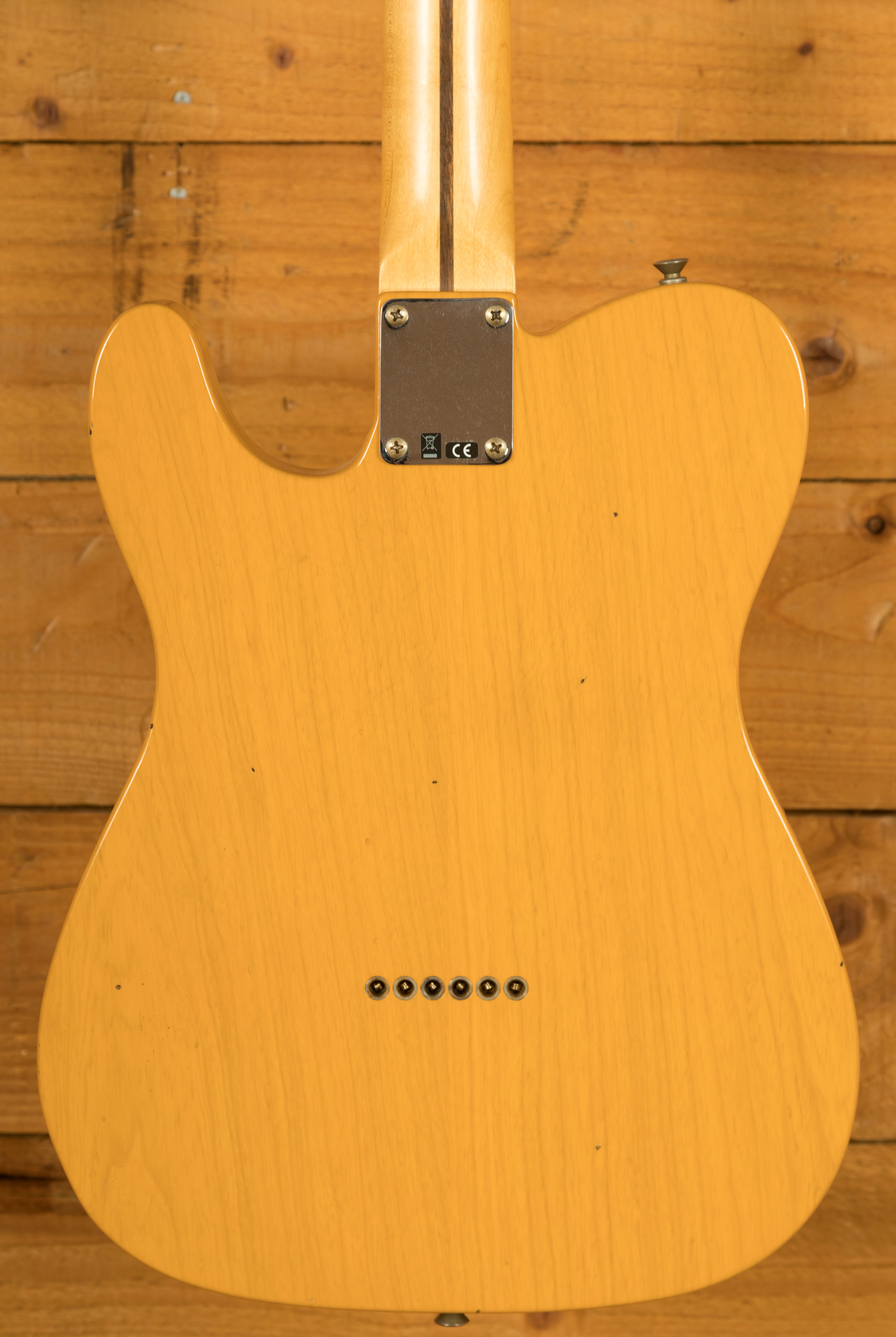 The Fender Custom Shop '52 Telecaster Journeyman is a premium instrument built to capture the spirit and craftsmanship of Fender's earliest designs while meeting the demands of modern players. Its ash body is finished in a Butterscotch Blonde Journeyman nitrocellulose lacquer, giving it an authentically aged look and feel. The thin nitro finish allows the wood to resonate more freely, improving sustain and tonal clarity, while also naturally evolving over time for a unique, individual patina.