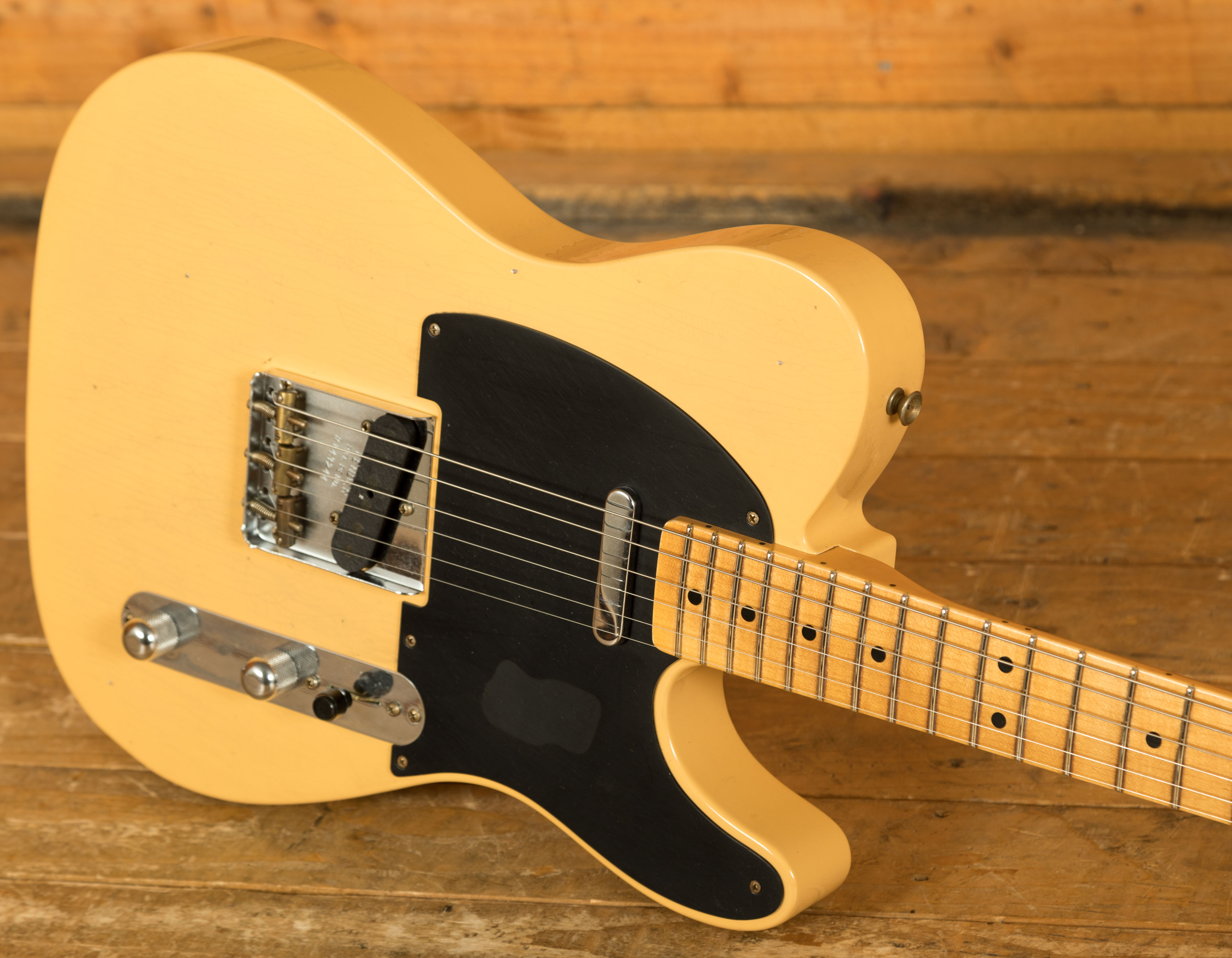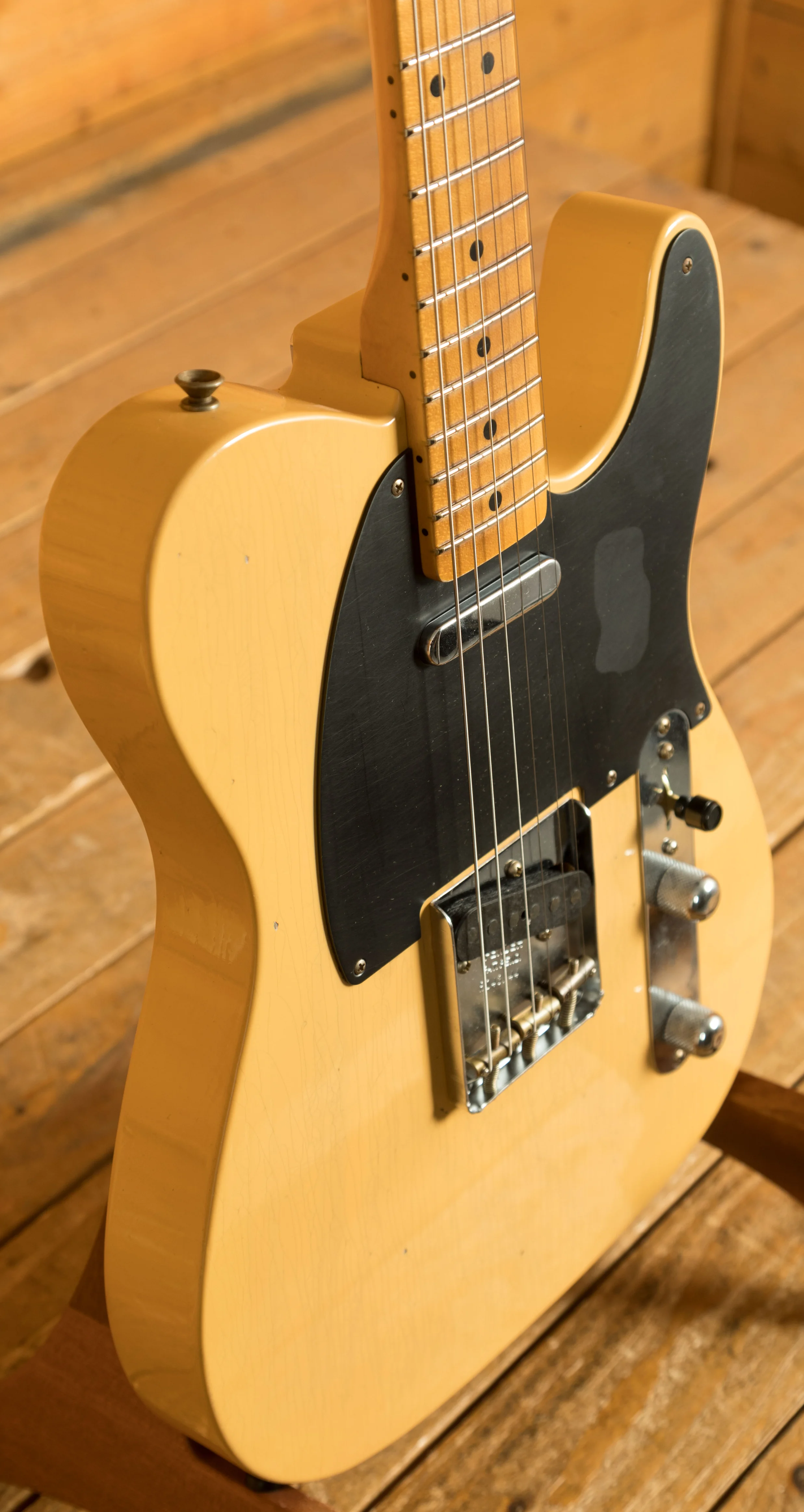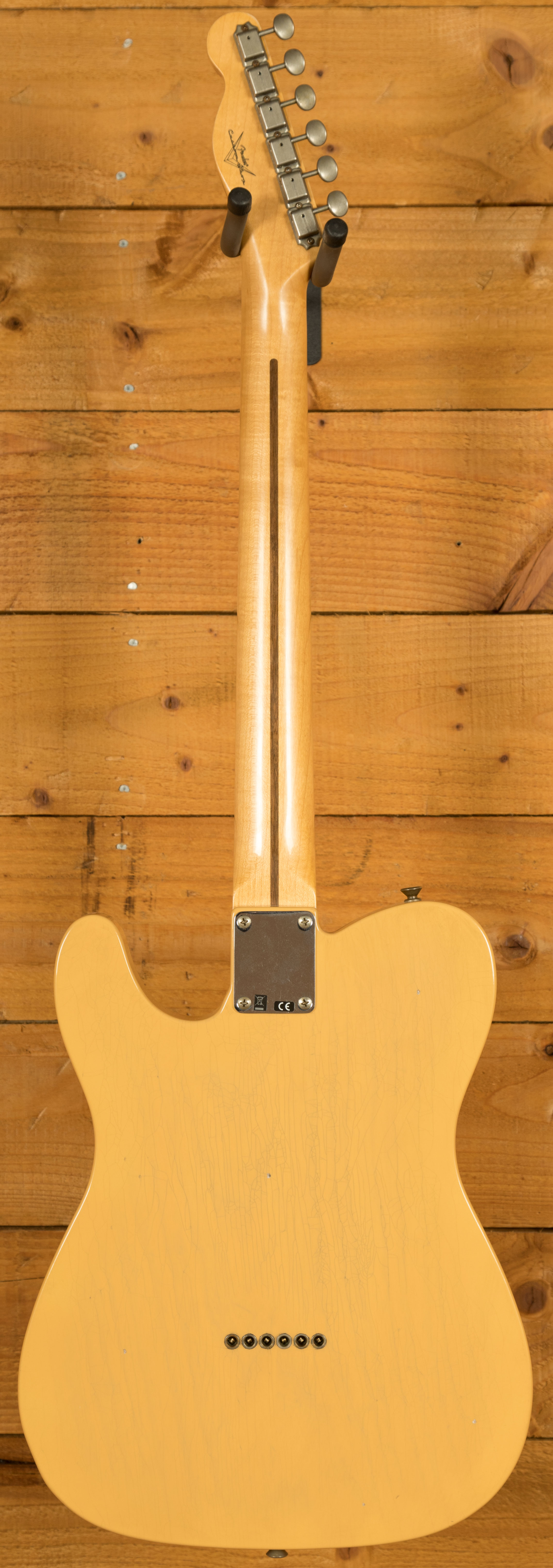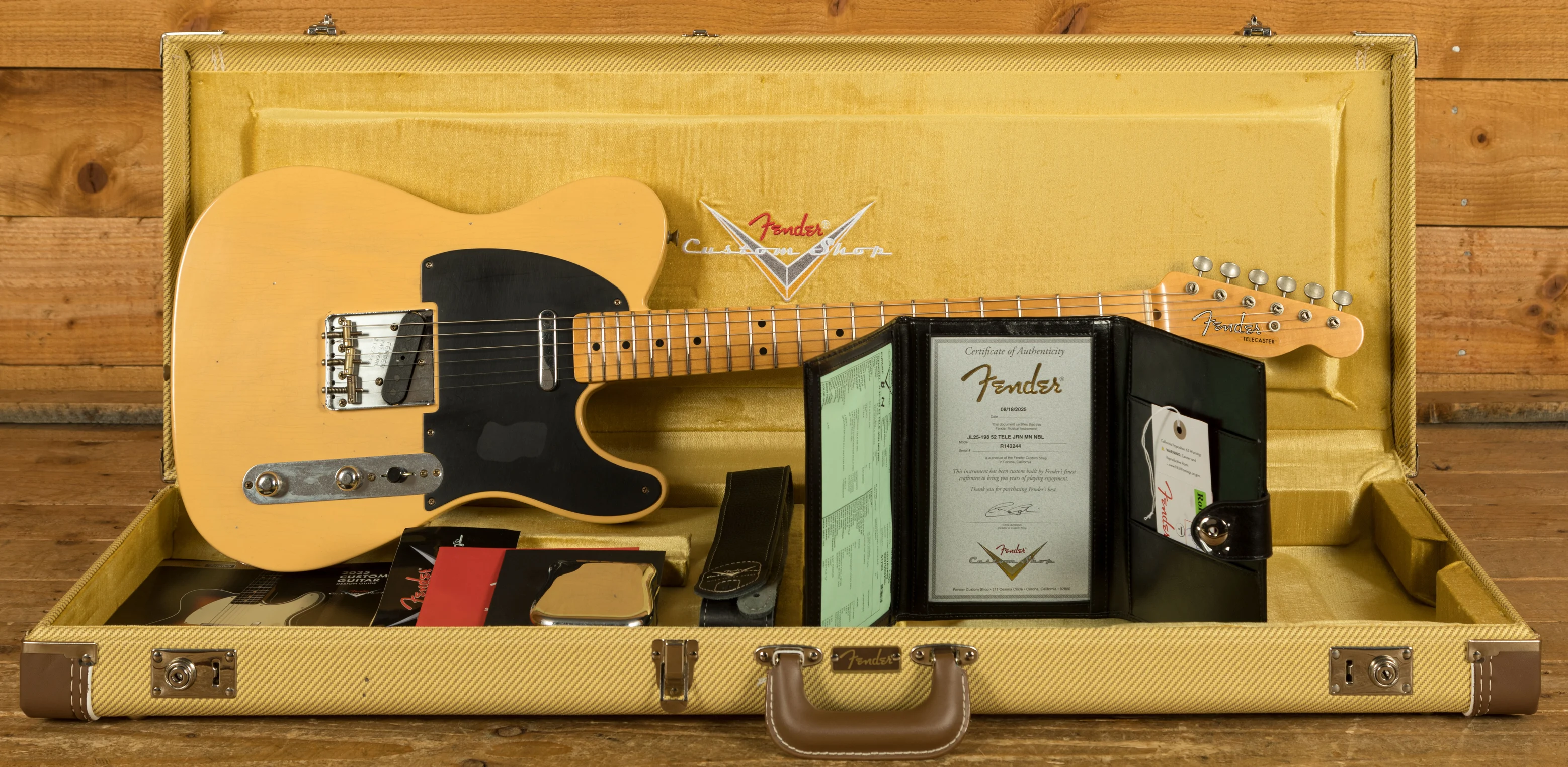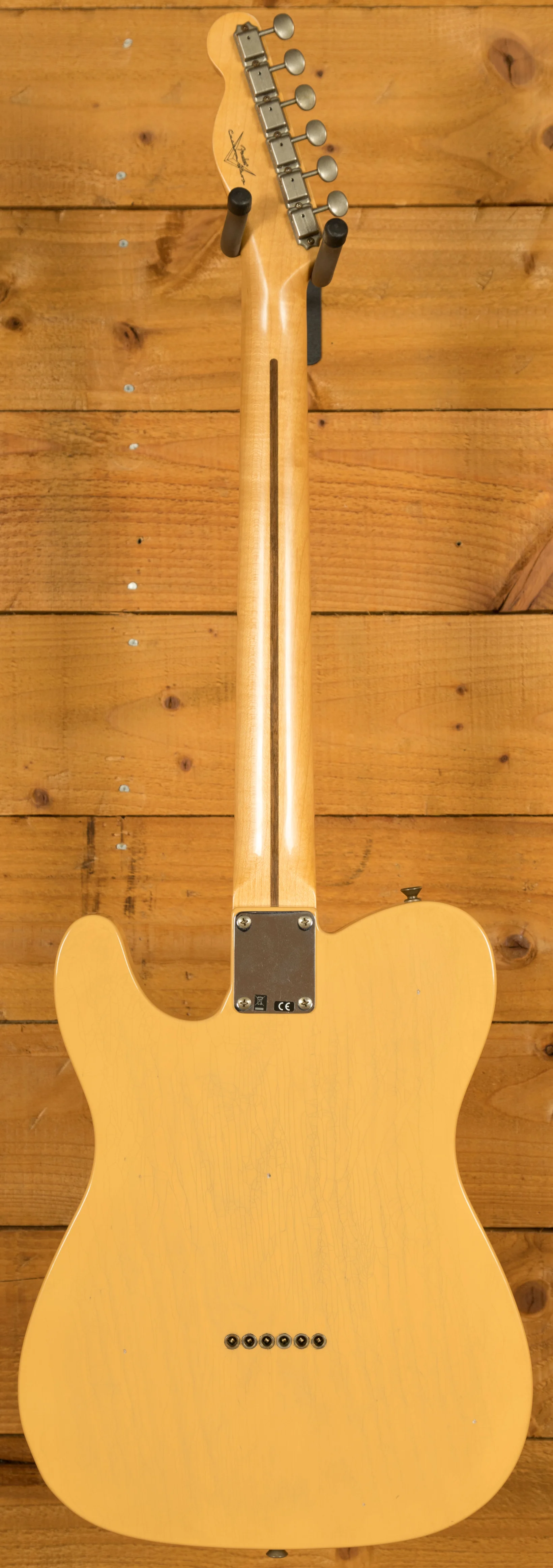 The Fender Custom Shop '52 Telecaster Journeyman is a premium instrument built to capture the spirit and craftsmanship of Fender's earliest designs while meeting the demands of modern players. Its ash body is finished in a Nocaster Blonde Journeyman nitrocellulose lacquer, giving it an authentically aged look and feel. The thin nitro finish allows the wood to resonate more freely, improving sustain and tonal clarity, while also naturally evolving over time for a unique, individual patina.
