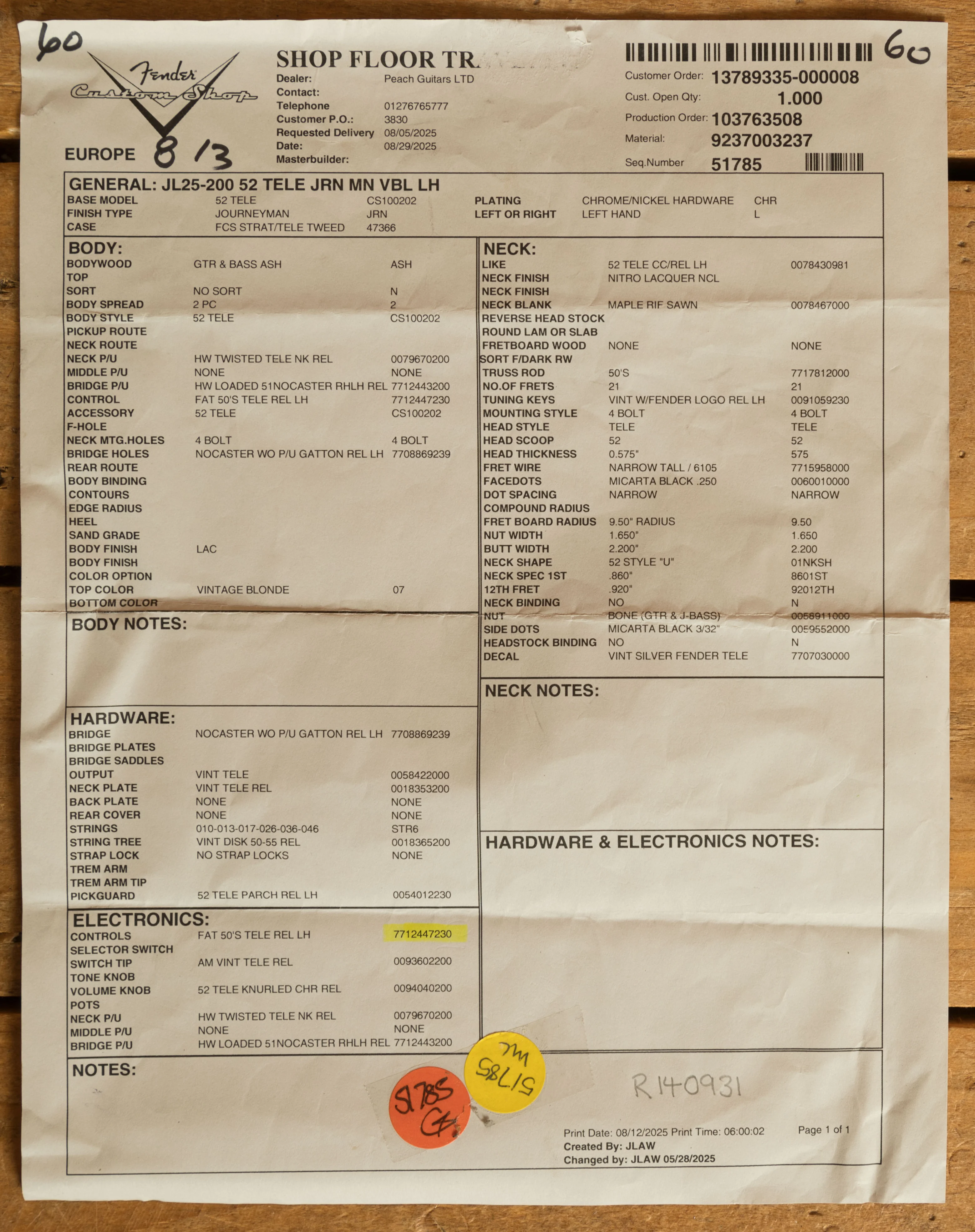 Equipped with a hand-wound Loaded '51 Nocaster bridge pickup and a hand-wound Twisted Tele neck pickup, the '52 Telecaster delivers exceptional tonal range and versatility. The bridge pickup offers the iconic Tele twang with added output and dynamic response, maintaining clarity even at higher gain settings. The neck pickup is a hand-wound Twisted Tele, a design that delivers a higher output than traditional Telecaster pickups, with a hint of the sparkle and clarity associated with Stratocaster pickups. Together, they make this Custom Shop Telecaster an ideal choice for players seeking a professional-grade instrument that combines Fender's timeless tone with outstanding versatility and build quality.