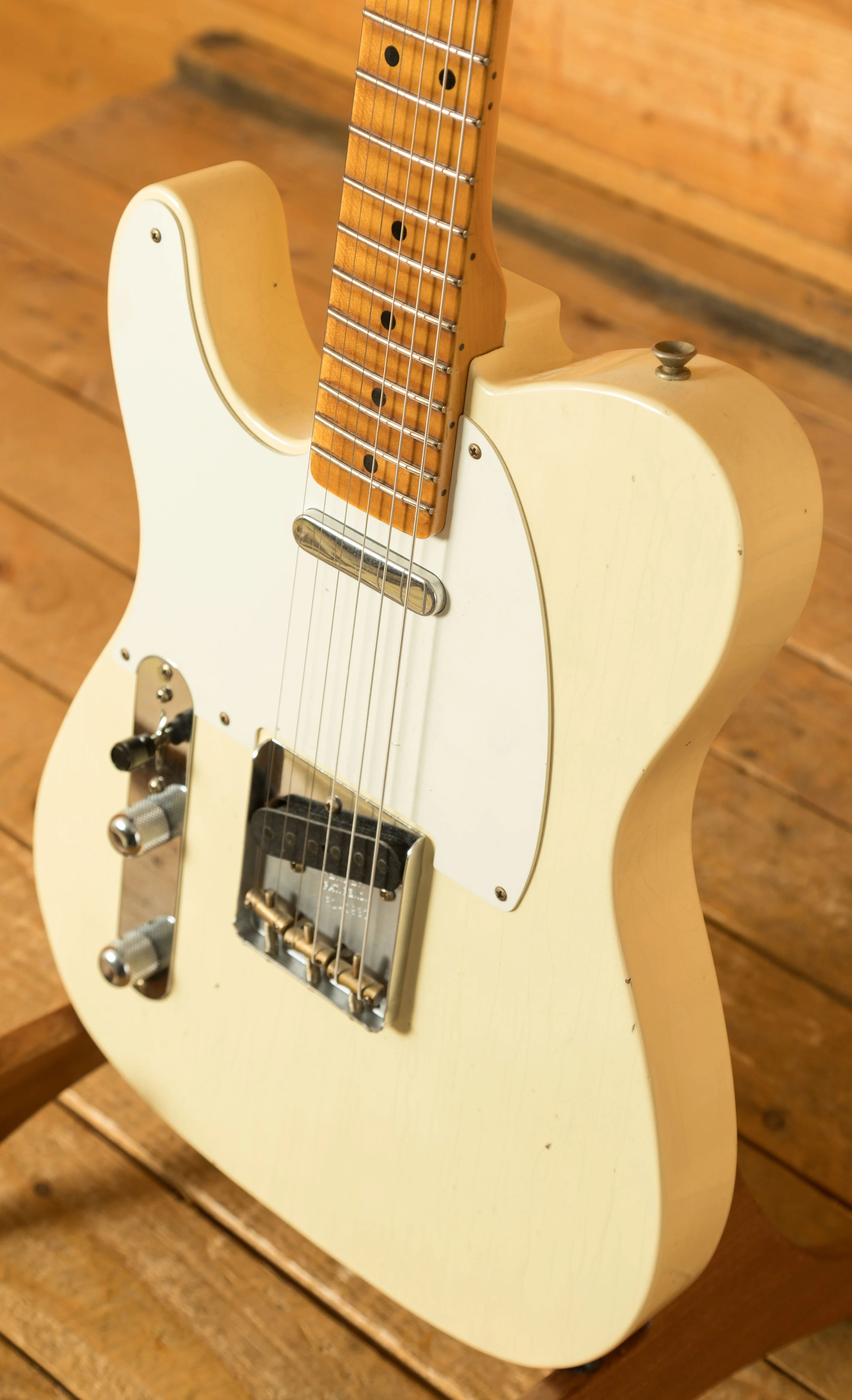 The Fender Custom Shop '52 Telecaster Journeyman is a premium instrument built to capture the spirit and craftsmanship of Fender's earliest designs while meeting the demands of modern players. Its ash body is finished in a Vintage Blonde Journeyman nitrocellulose lacquer, giving it an authentically aged look and feel. The thin nitro finish allows the wood to resonate more freely, improving sustain and tonal clarity, while also naturally evolving over time for a unique, individual patina.