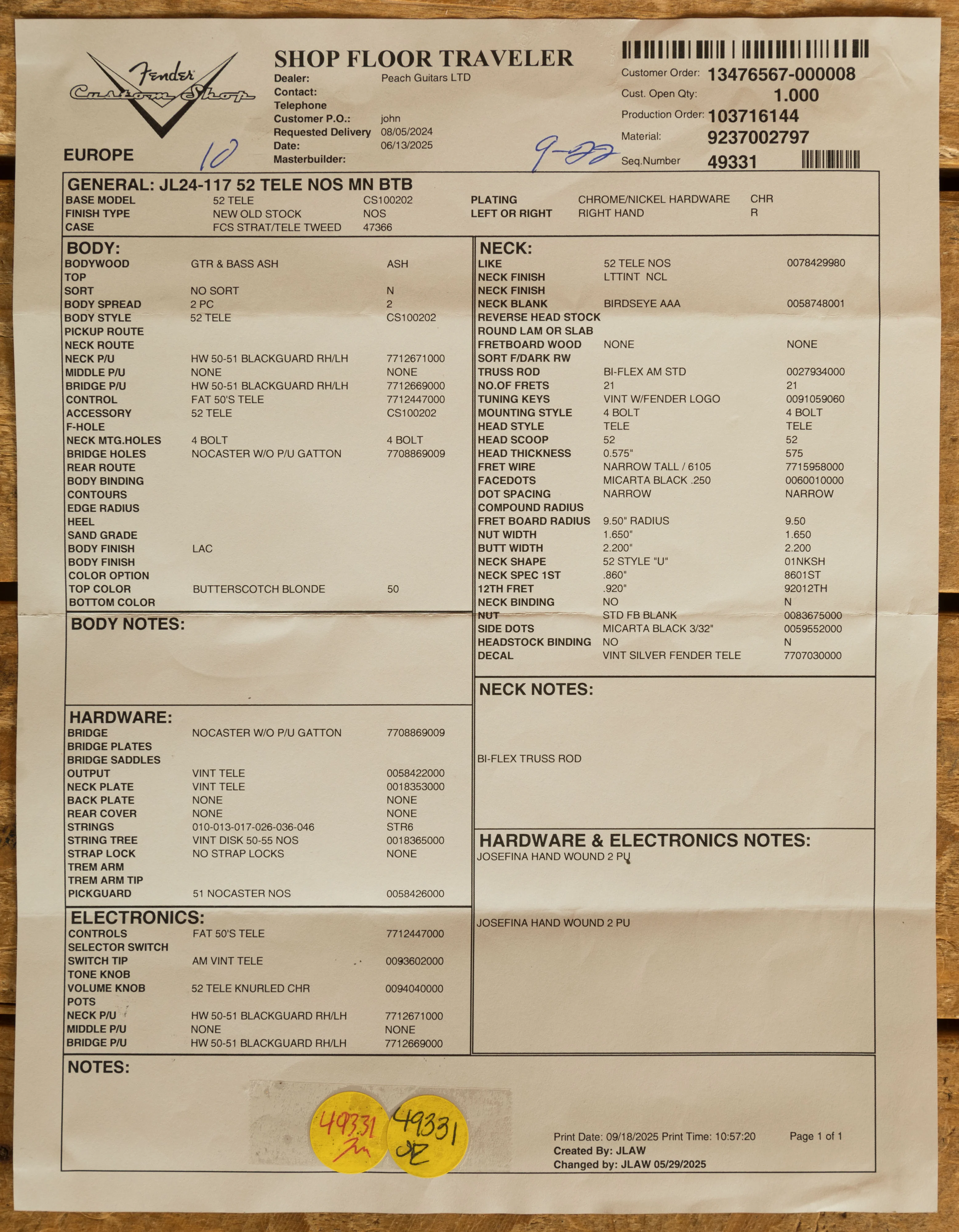 - NOS Finish: The New Old Stock finish means the guitar looks exactly as it would have when first leaving the factory floor in 1952 - pristine, immaculate, and ready for you to create its history.