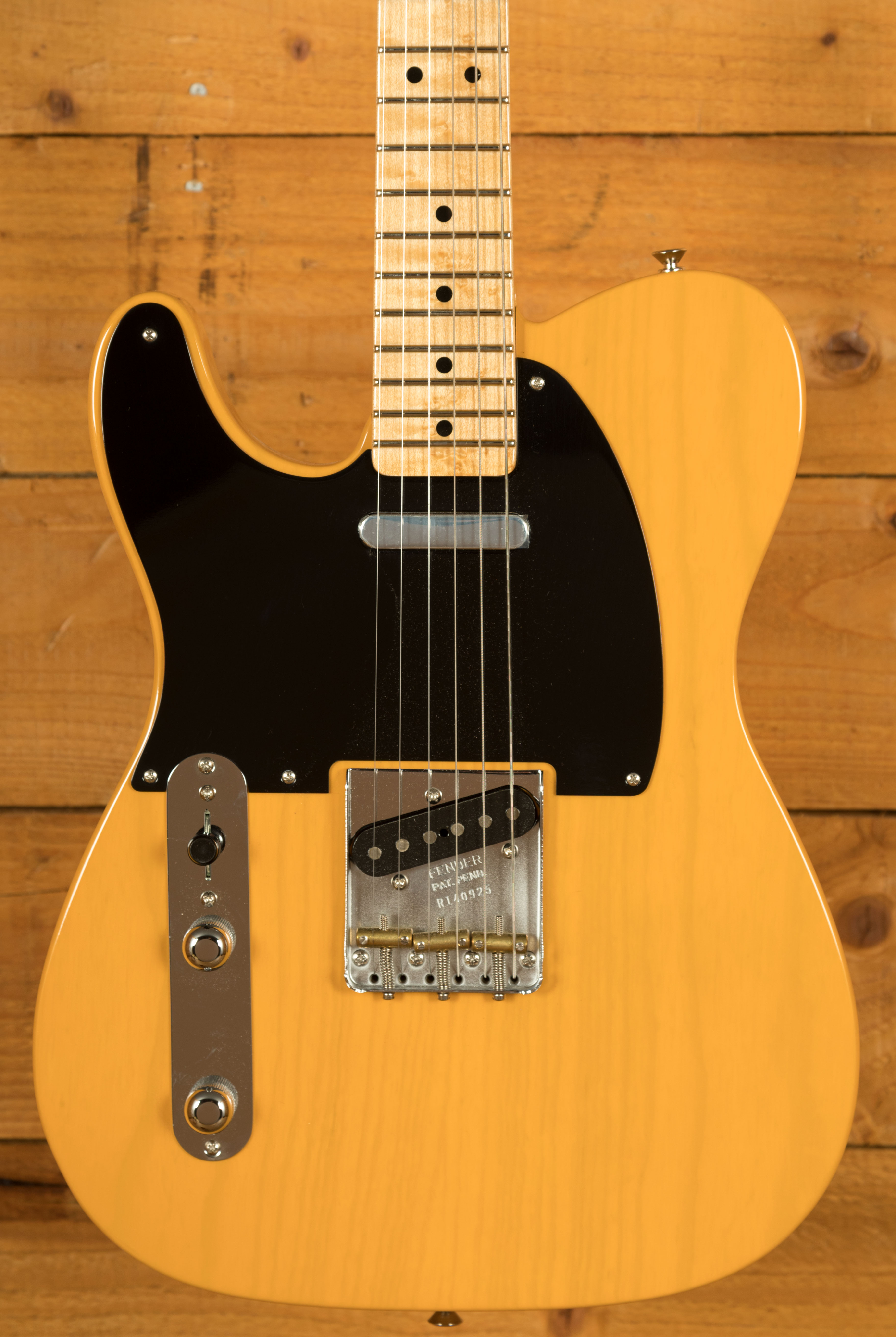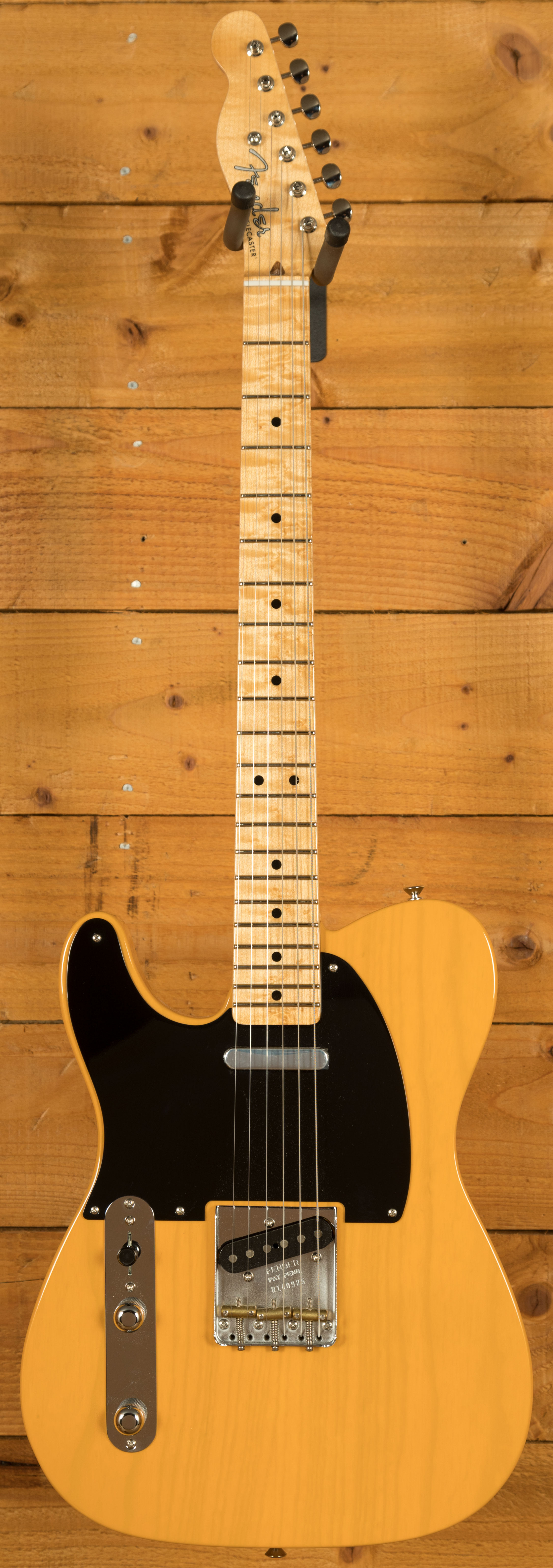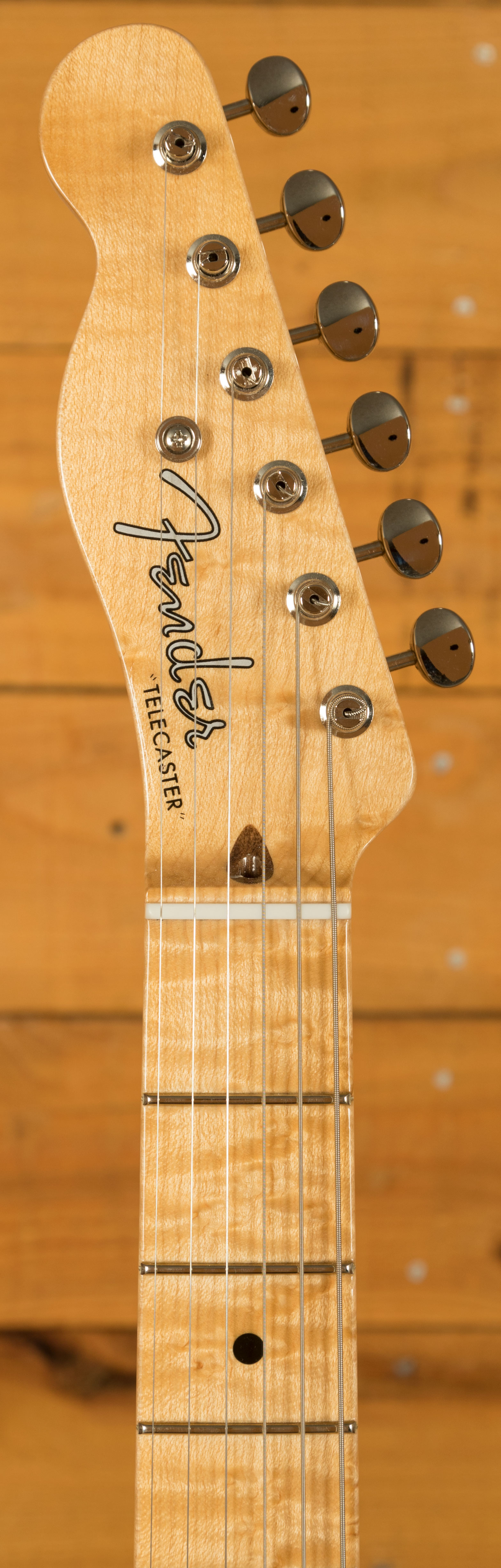 The AAA birdseye maple neck is carved to a robust '52-style "U" profile, offering a substantial grip and classic feel that measures .860" at the 1st fret and .920" at the 12th. A 9.5" radius and 6105 narrow tall frets provide modern playability while retaining vintage character. The absence of a separate fretboard keeps the look true to early Telecaster builds, with a smooth playing surface and direct tonal transfer.