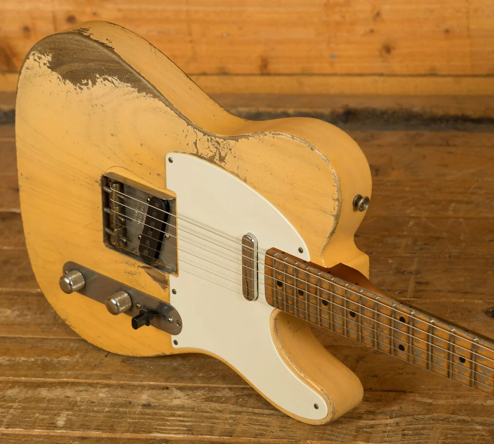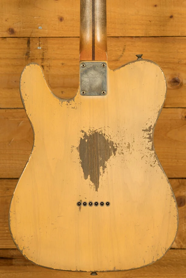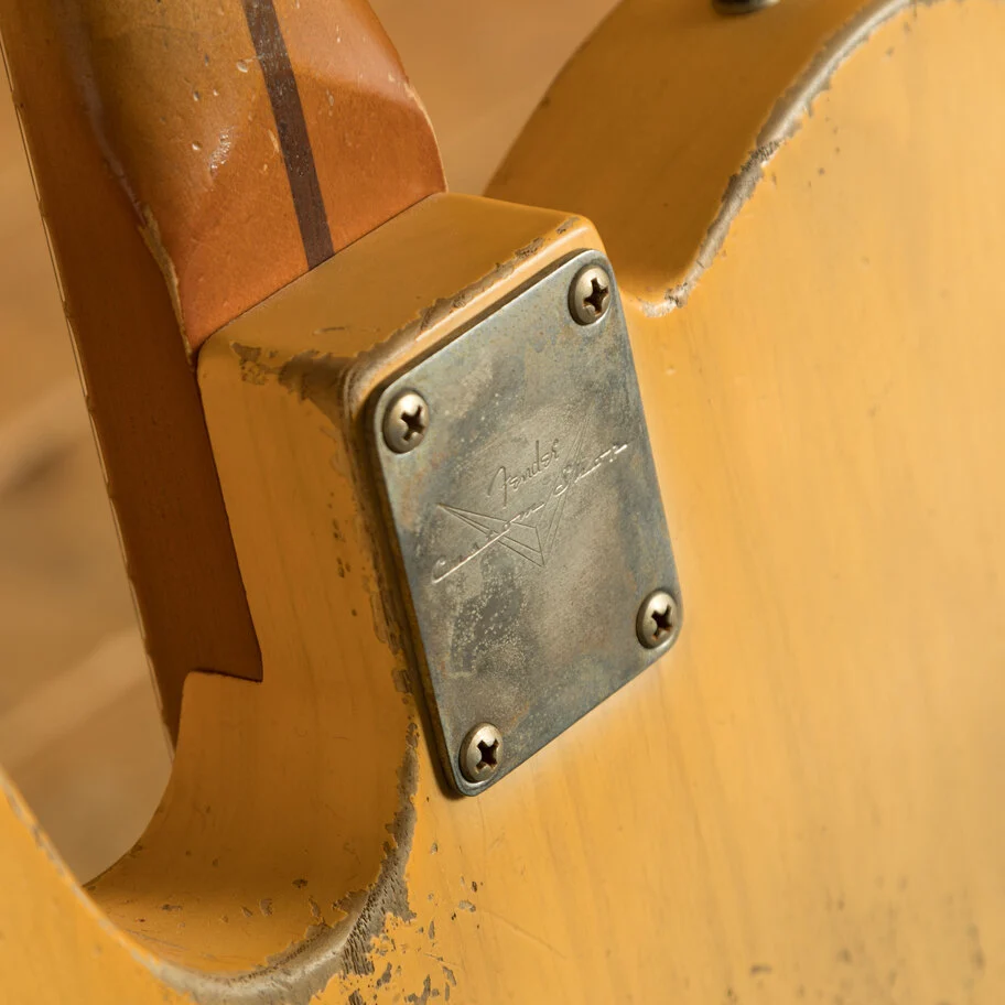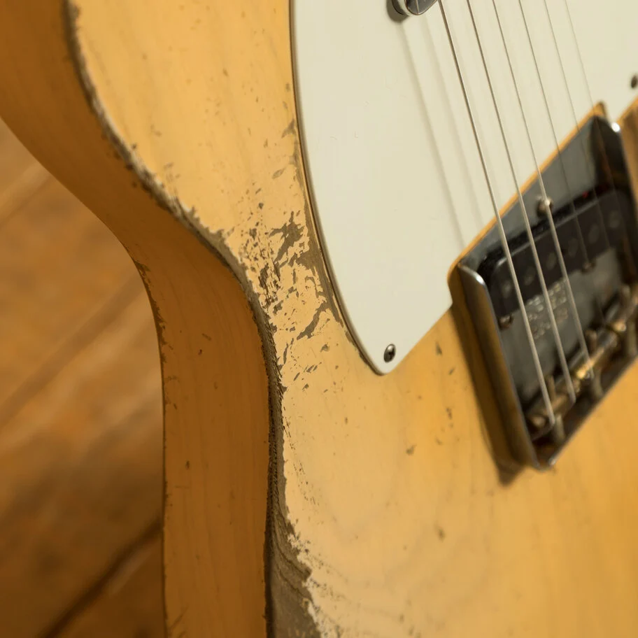The Ash body is finished in a really authentically aged White Blonde Heavy Relic. This finish will wear beautifully with time and develop its own character even further, it also allows the natural resonance of the body to sing and sustain much more effectively.