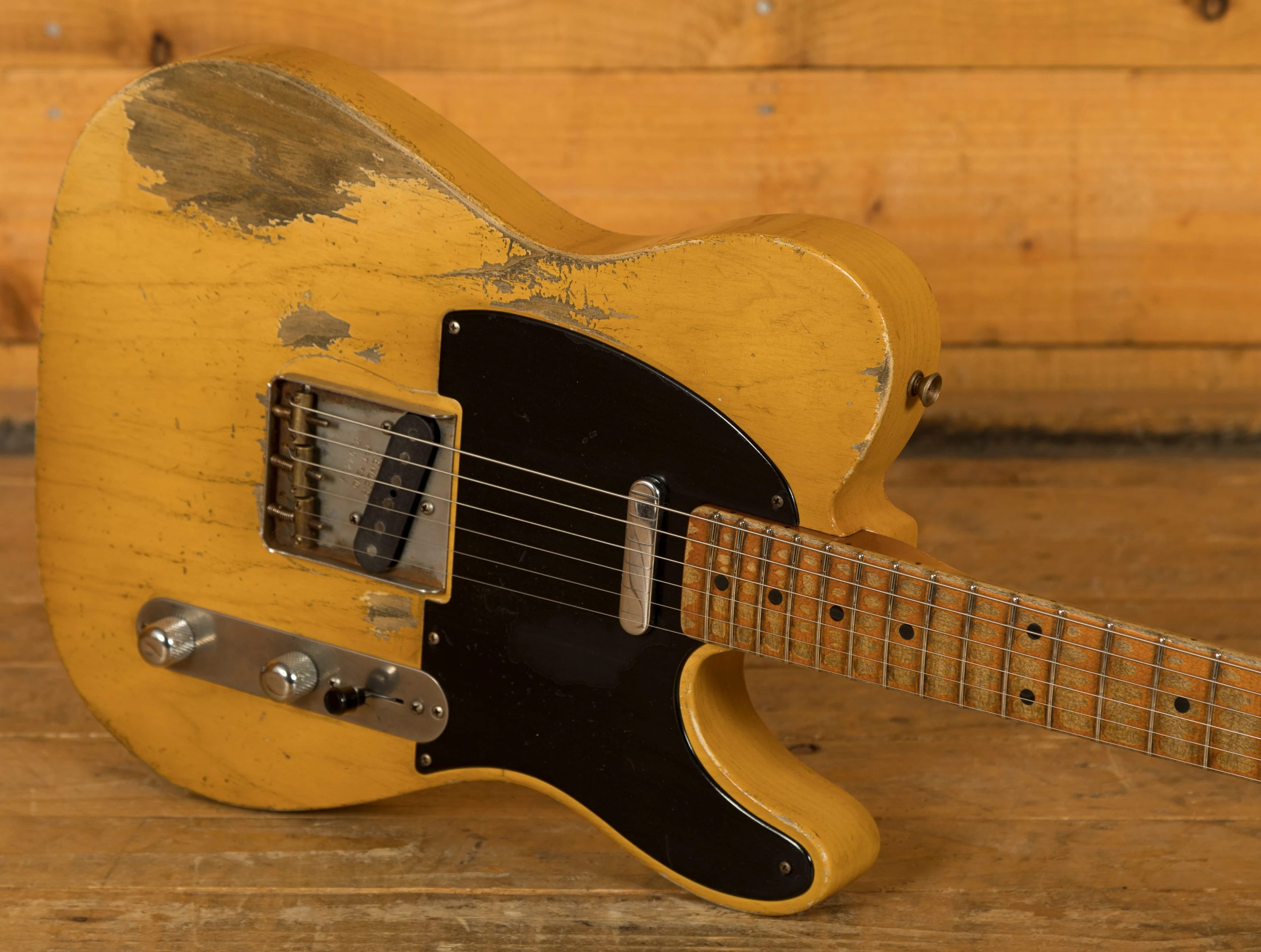 The Ash body is finished in a really authentically aged Smoked Nocaster Blonde. This finish will wear beautifully with time and develop its own character even further, it also allows the natural resonance of the body to sing and sustain much more effectively. The wear patterns are incredible, so genuine and authentic, Dale Wilson is considered the King of relic work at the Custom Shop and its definitely on display here!