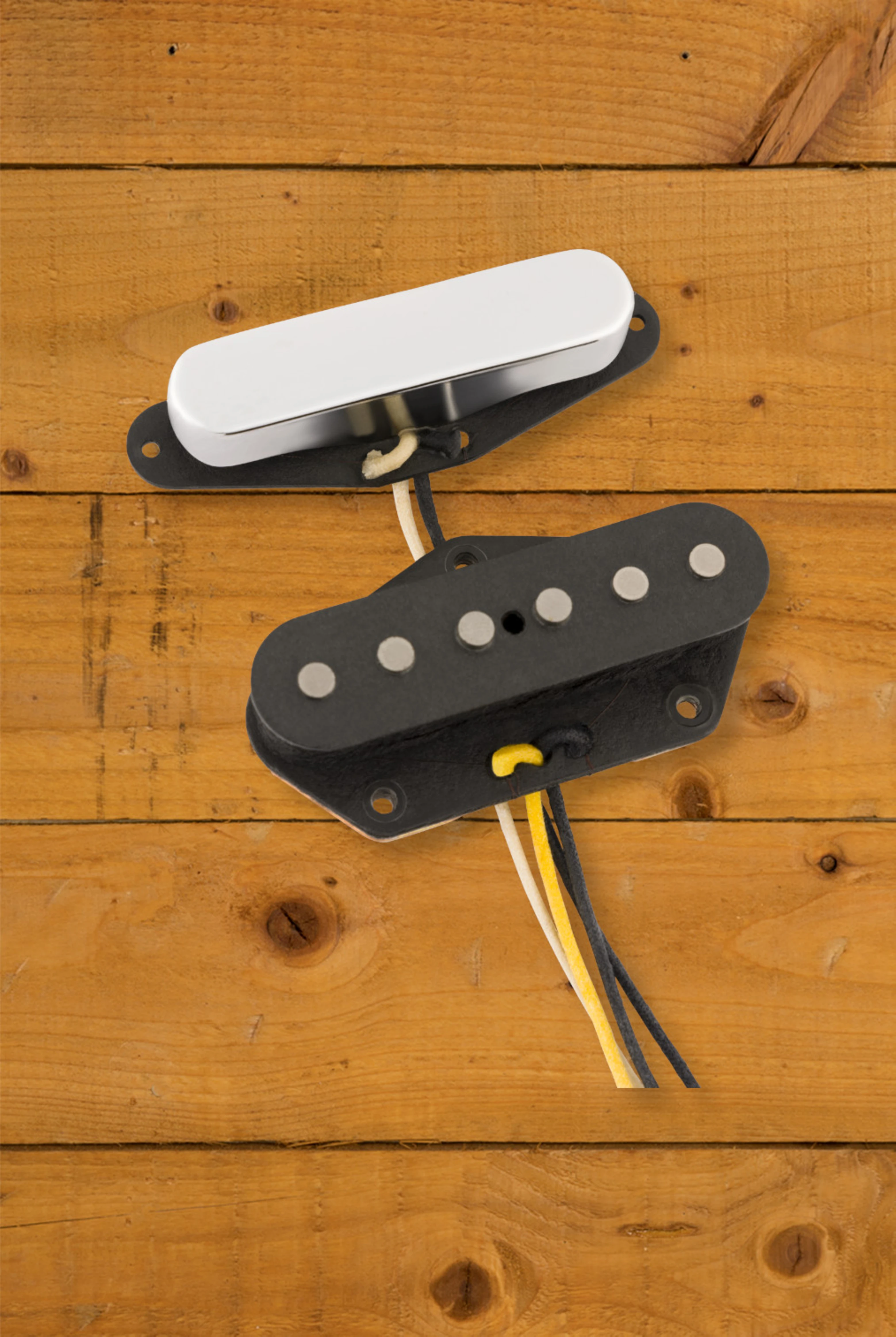 At their core, the '55-'56 Telecaster pickups feature hand-bevelled, staggered alnico 5 magnets in the bridge, ensuring focused attack and enhanced dynamics, while the alnico 3 magnets in the neck provide sweet midrange and tight bass response. The staggered pole pieces create greater string-to-string articulation and a balanced output, resulting in rich harmonic detail and crisp note definition.