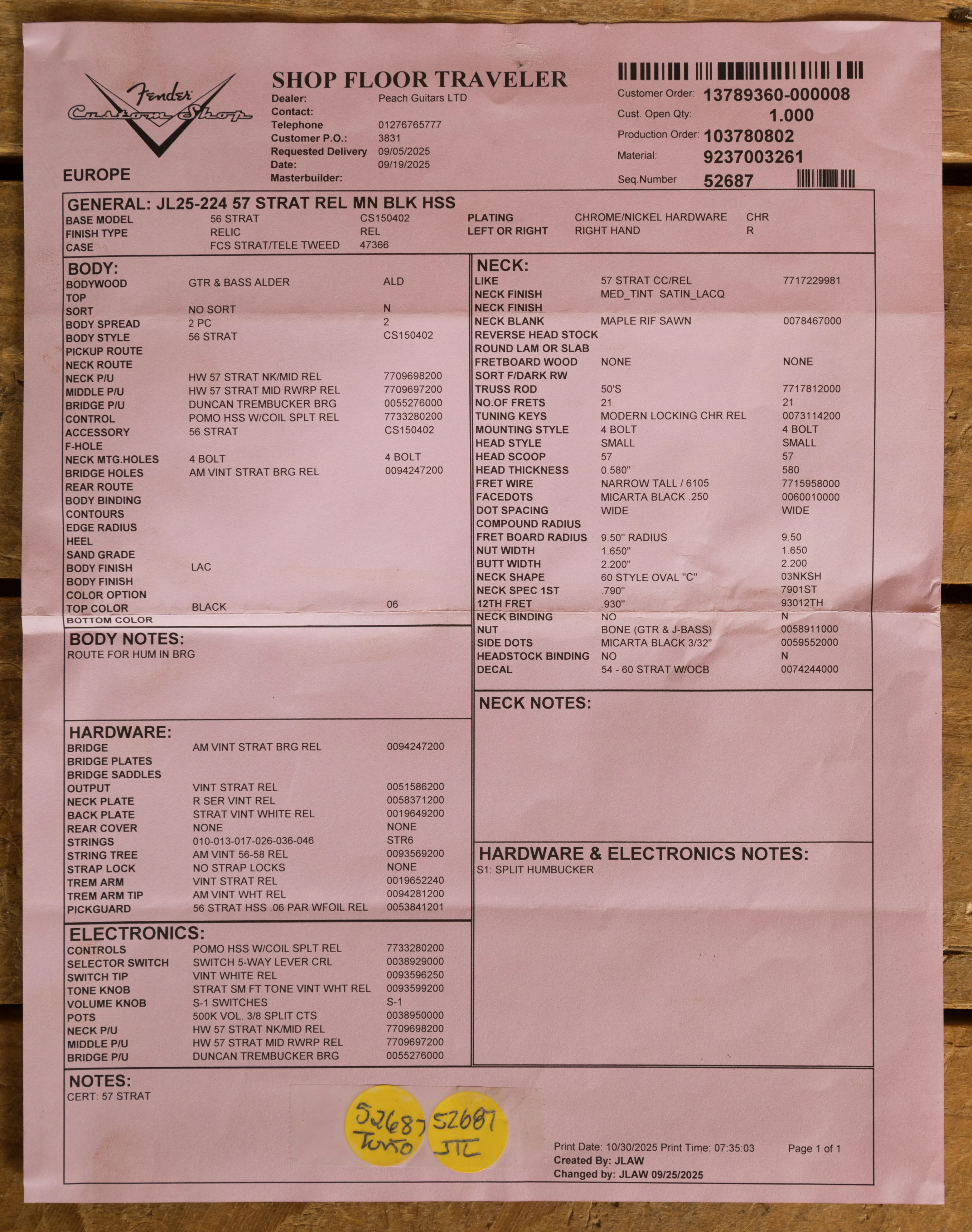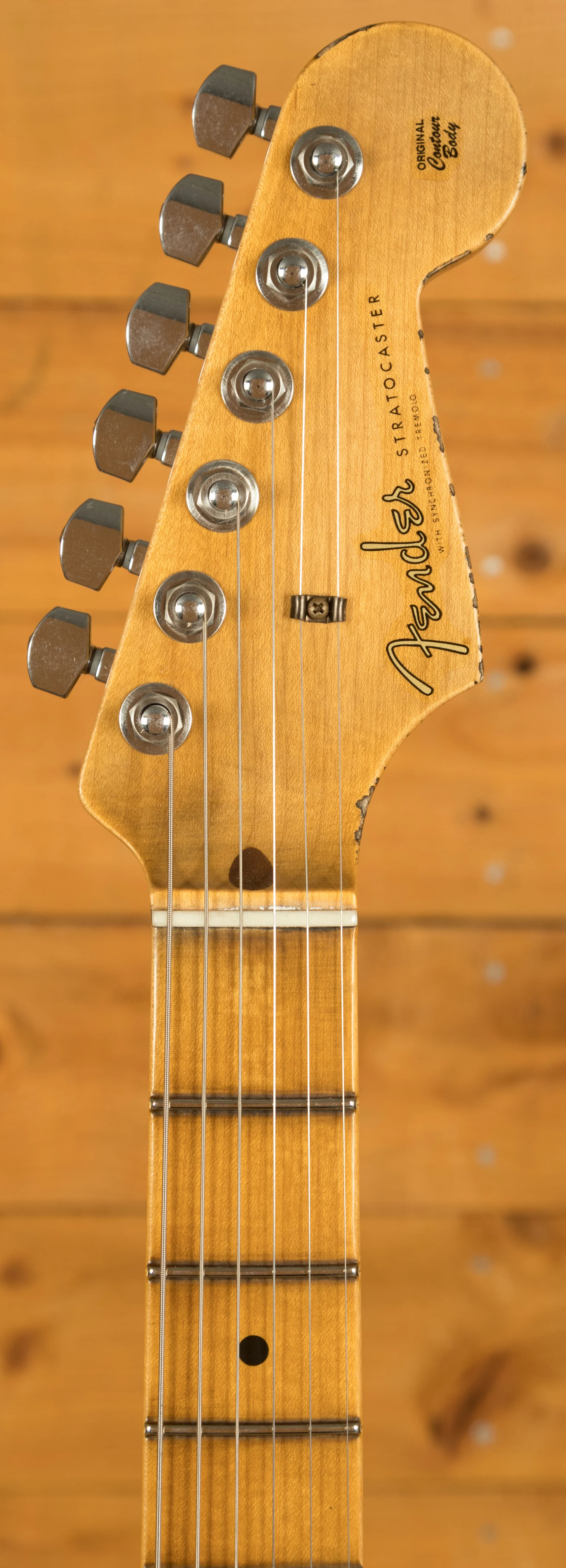 The medium tint riftsawn Maple neck has a smooth satin finish. With a 9.5" fingerboard radius and 21 6105 narrow tall frets, the '57 Custom Shop Stratocaster can handle anything you throw at it without even breaking a sweat; it's supremely comfortable and well balanced. The 60 Style Oval "C" neck profile is a joy to play and offers a great platform for both rhythm and lead playing - measuring .790" at the 1st fret and .930" at the 12th. With the inclusion of a custom shop vintage Strat bridge and modern locking tuners you have brilliant tuning stability and intonation.