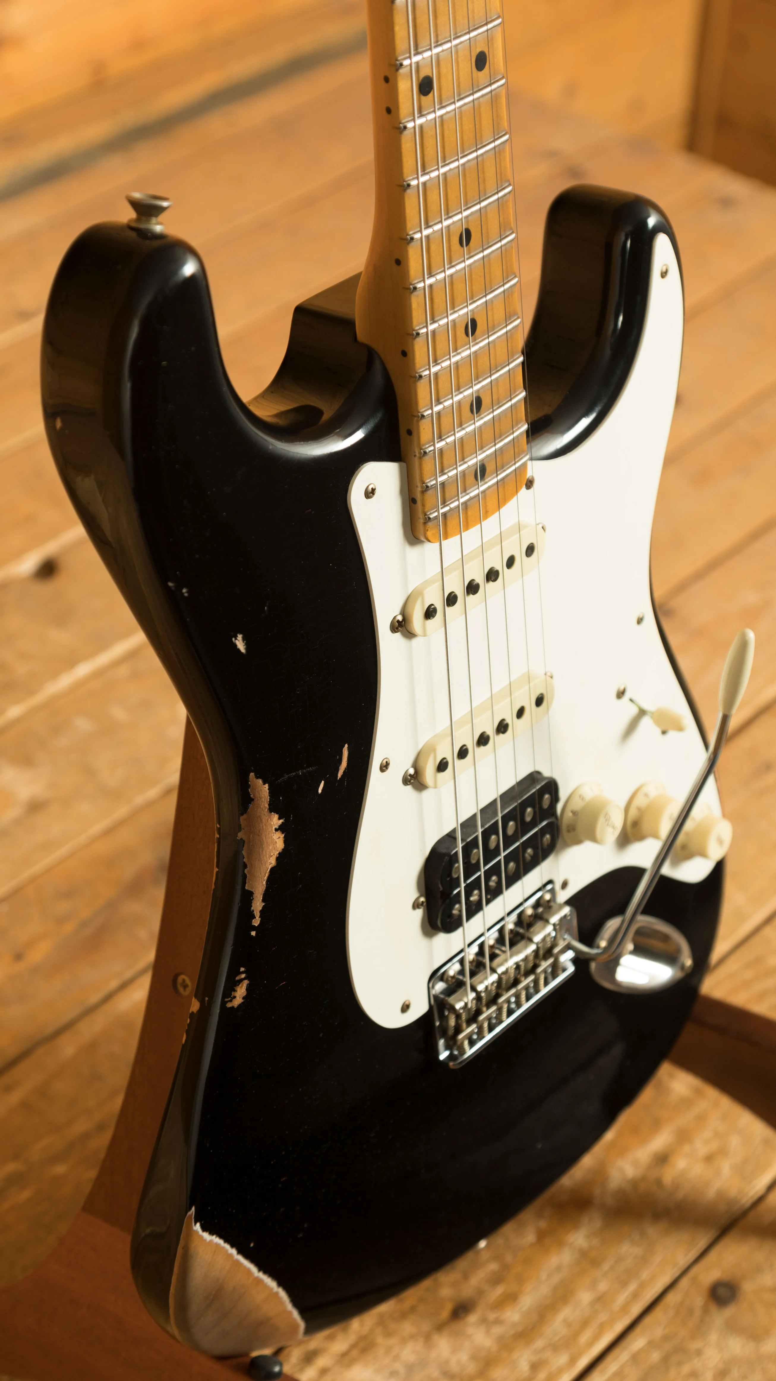 An Alder body is finished in a classic Black, it's a real beauty! Authentically aged, this finish will wear beautifully with time and develop its own character even further. The thin nitro finish also allows the natural resonance of the body to sing and sustain much more effectively and with the relicing you also get that road-worn, beat-up look without any actual damage to the guitar.