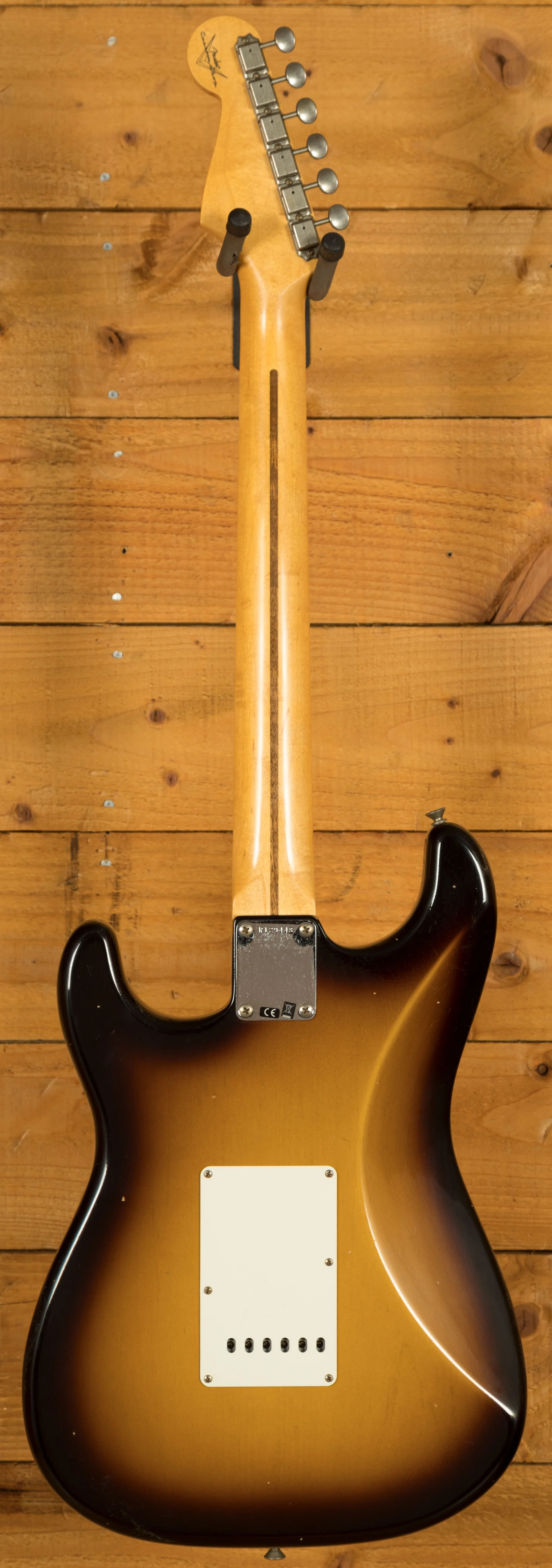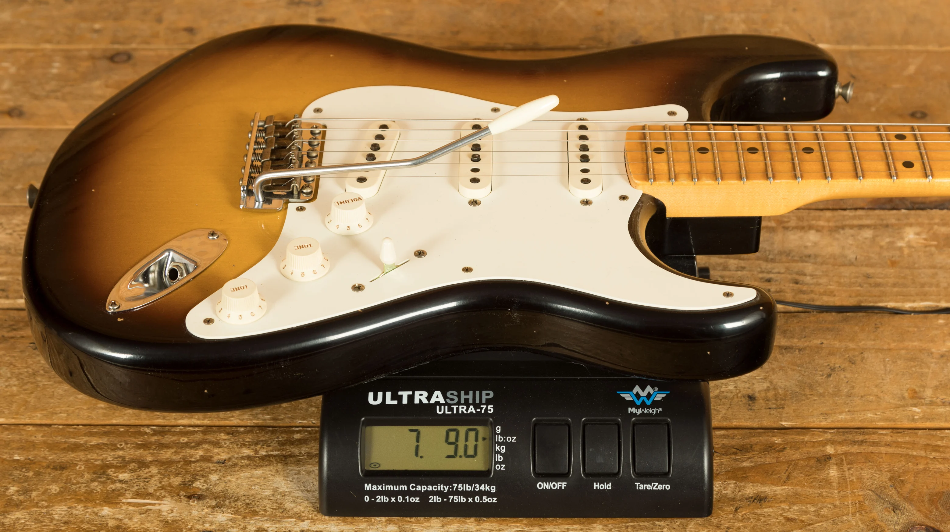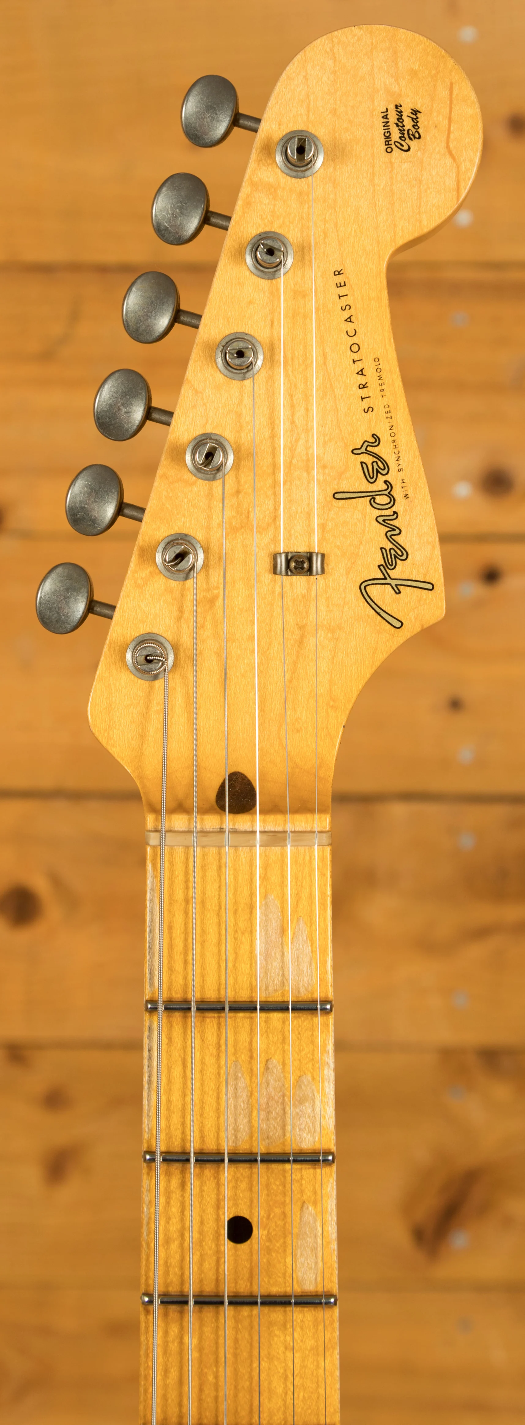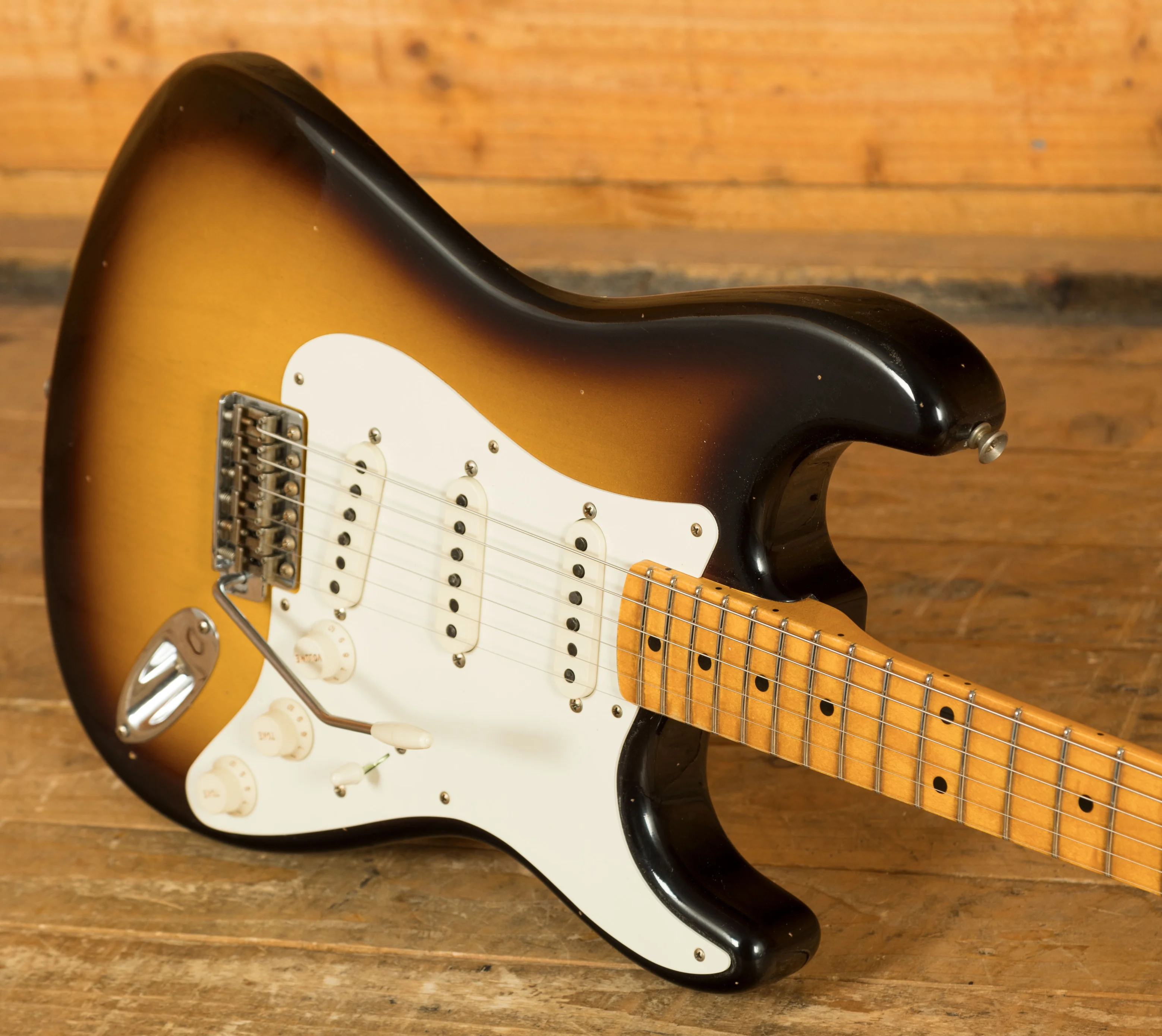 The Plain Grain Maple neck has a smooth finish. With a 9.5" radius and 21 6105 frets, the '57 Custom Shop Stratocaster also features a '57 Style Soft "V" neck shape and a 1.650" Nut Width. It's supremely comfortable and well balanced.