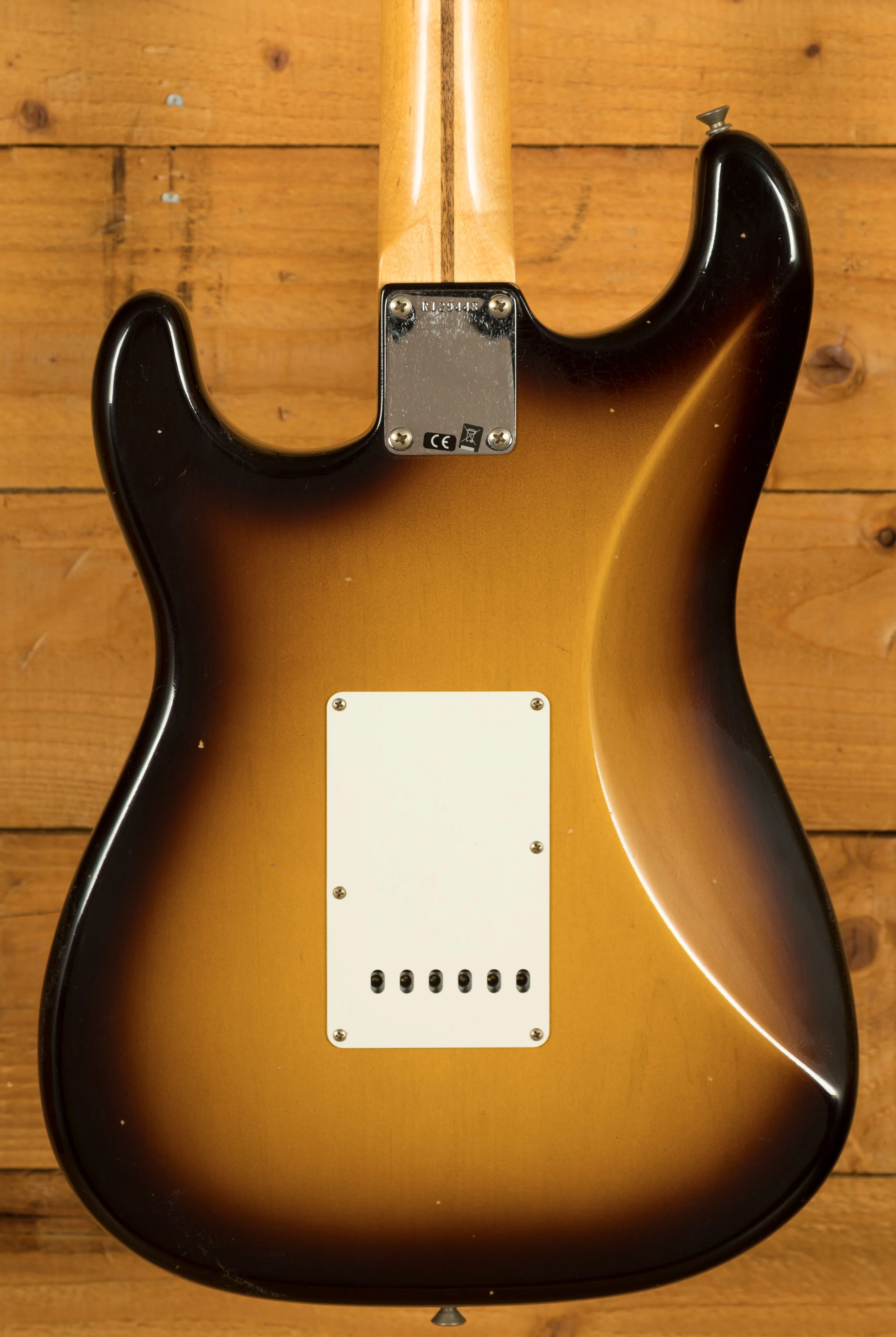 The lightweight Alder body is finished in a super cool 2-Colour Sunburst nitro lacquer, this Strat boasts a Journeyman finish. The Journeyman is a very lightly aged nitro finish; this gives the look and feel of a vintage guitar that has been lovingly cared for over the years. This finish will wear beautifully with time and develop its own character even further. It also allows the natural resonance of the body to sing and sustain much more effectively compared with other more modern finishes.