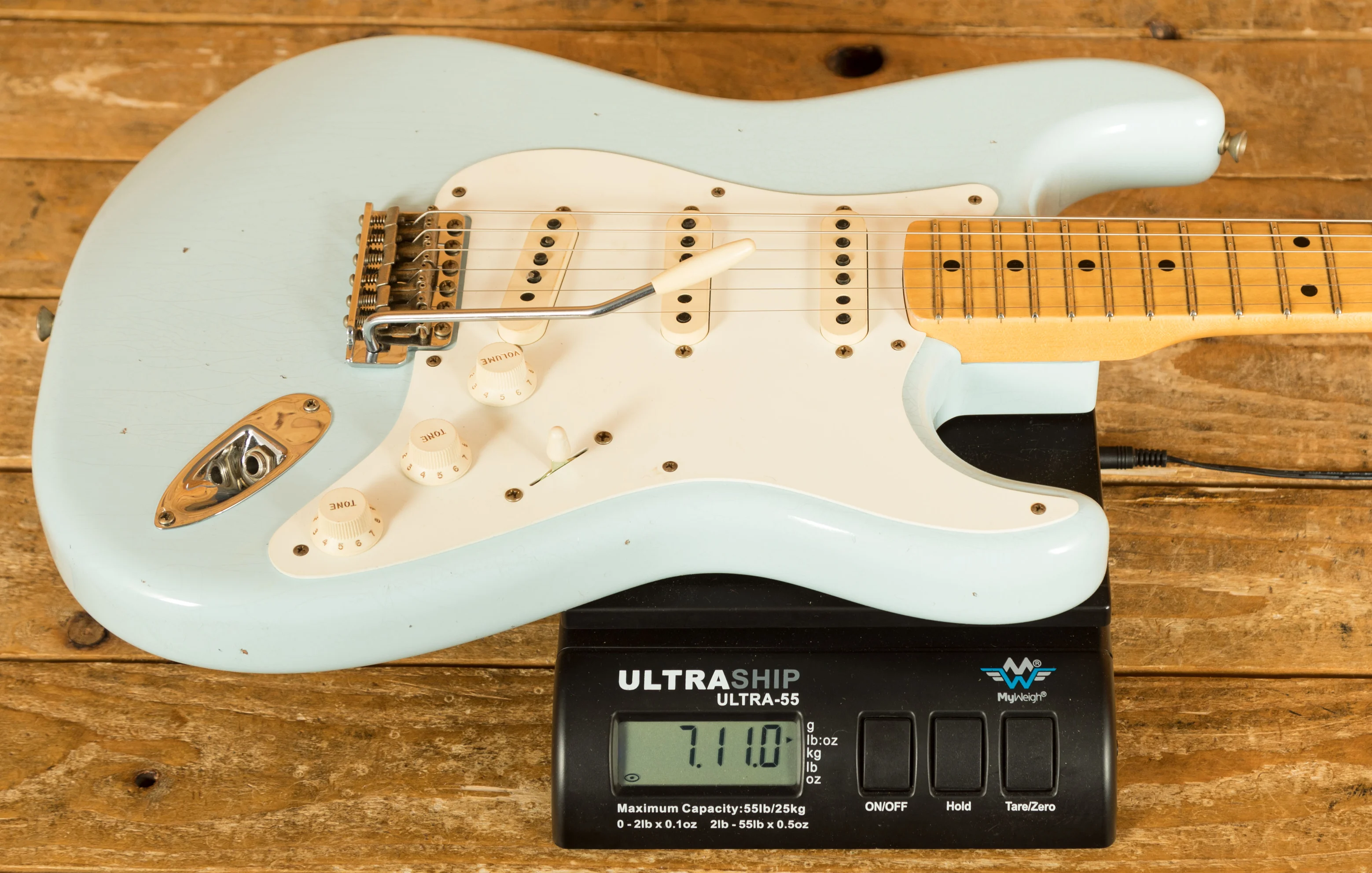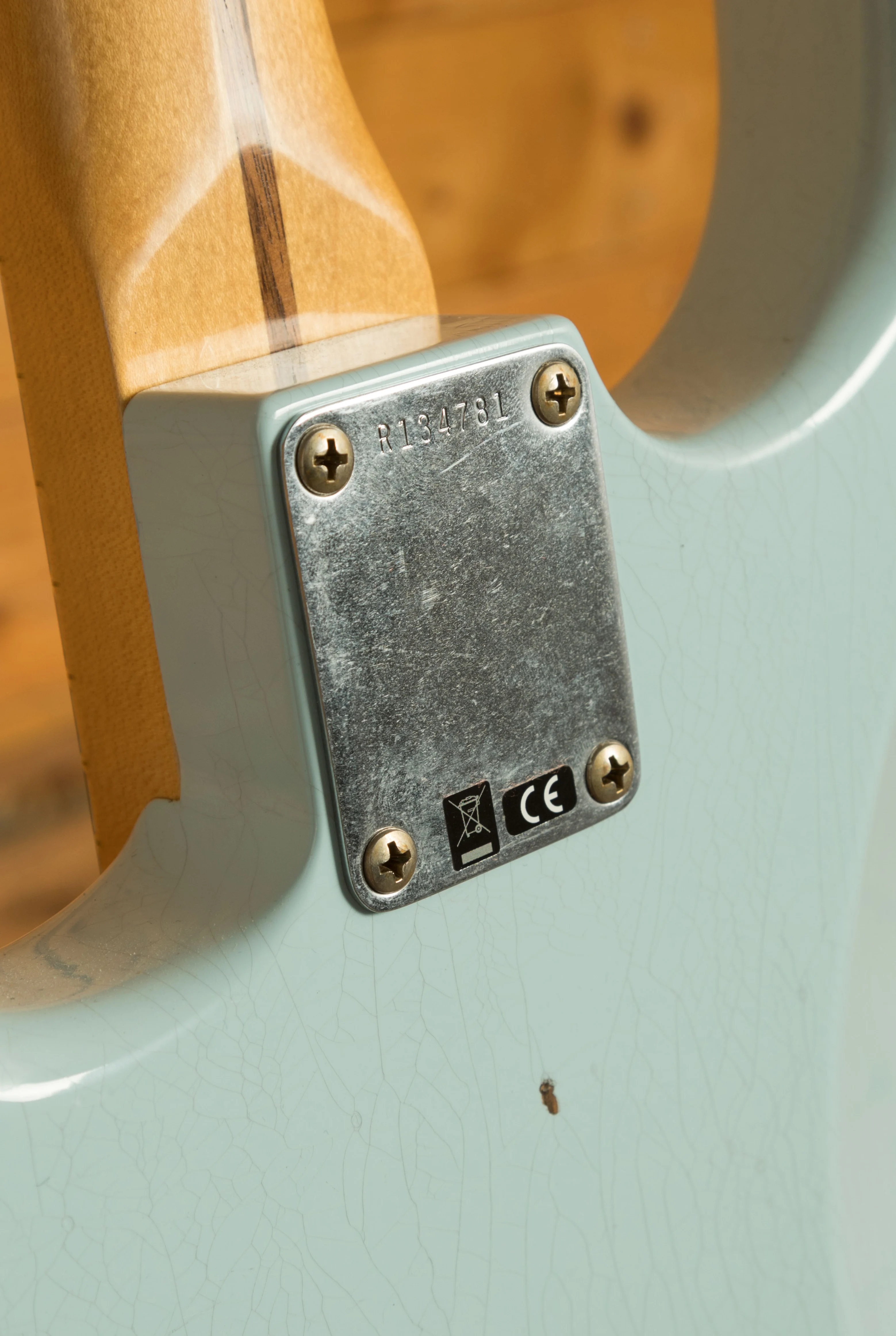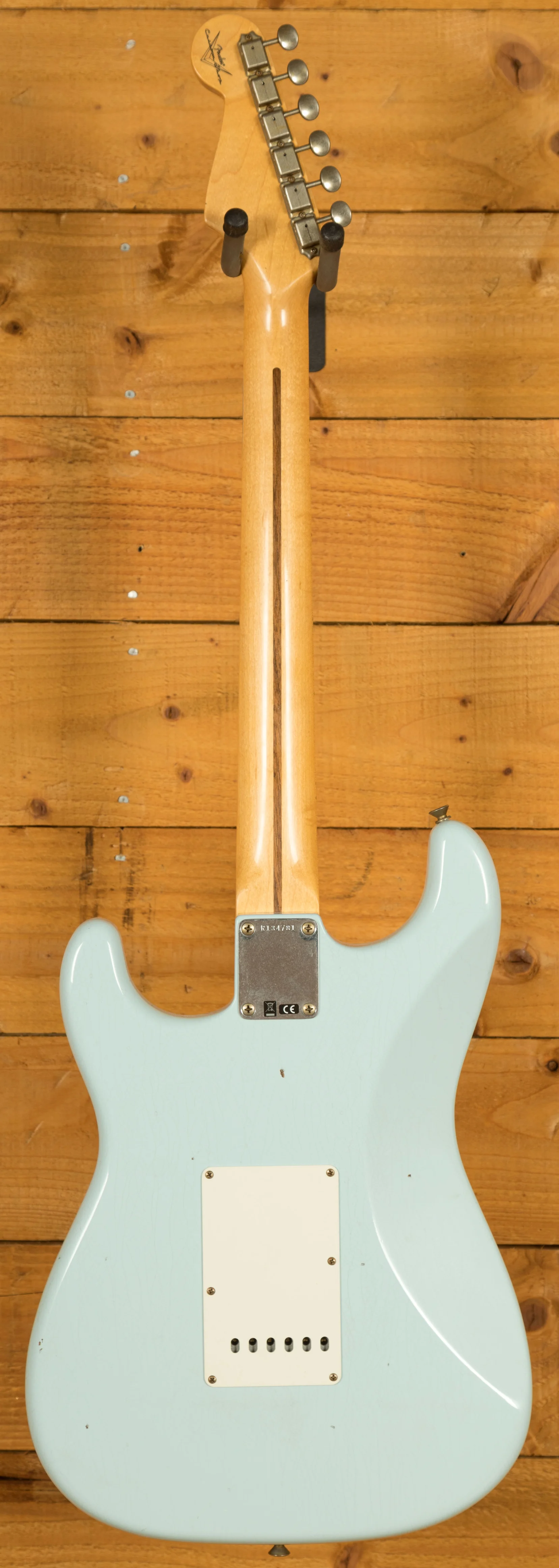 The lightweight Alder body is finished in a super cool Sonic Blue nitro lacquer, this Strat boasts a Journeyman finish. The Journeyman is a very lightly aged nitro finish; this gives the look and feel of a vintage guitar that has been lovingly cared for over the years. This finish will wear beautifully with time and develop its own character even further. It also allows the natural resonance of the body to sing and sustain much more effectively compared with other more modern finishes.