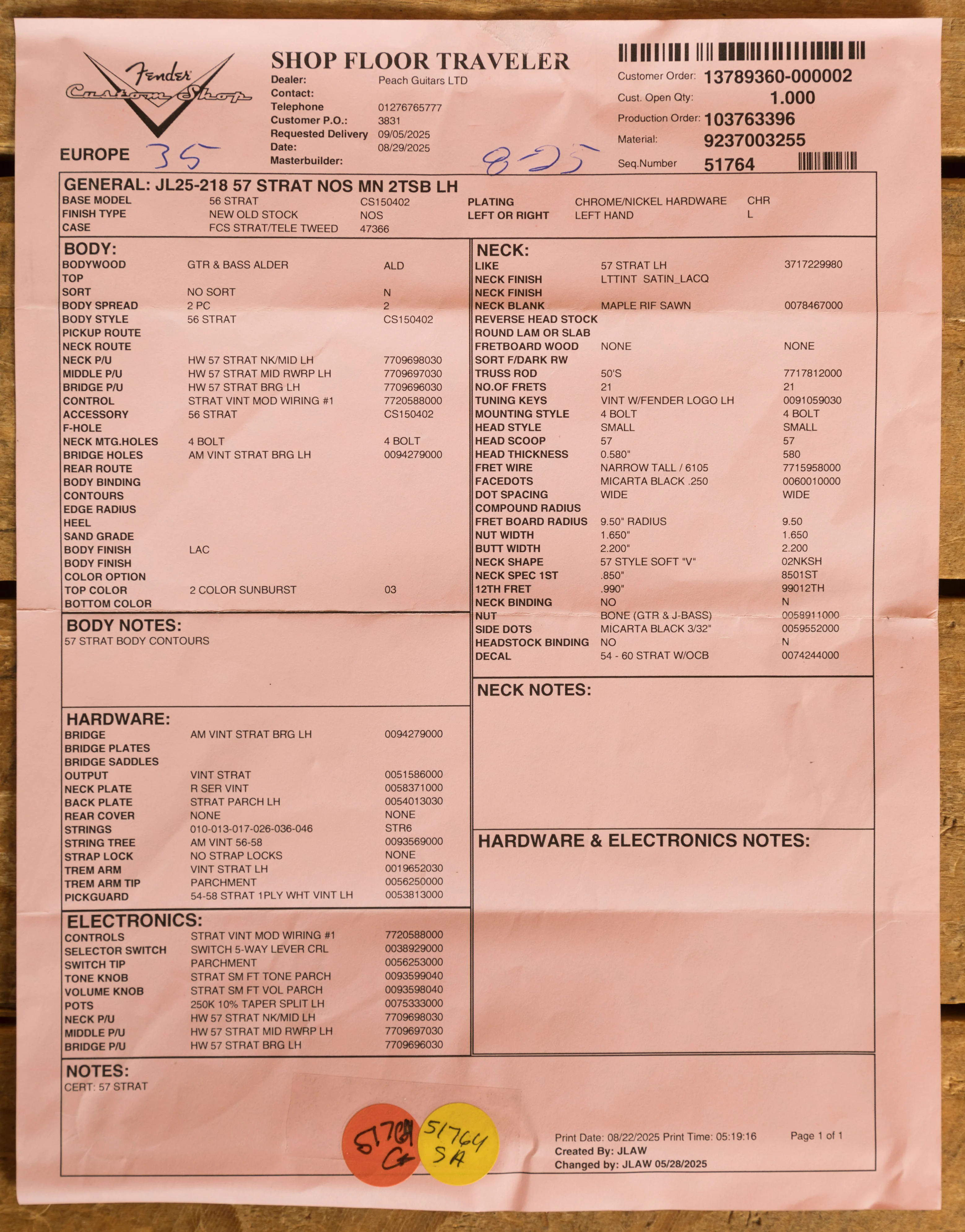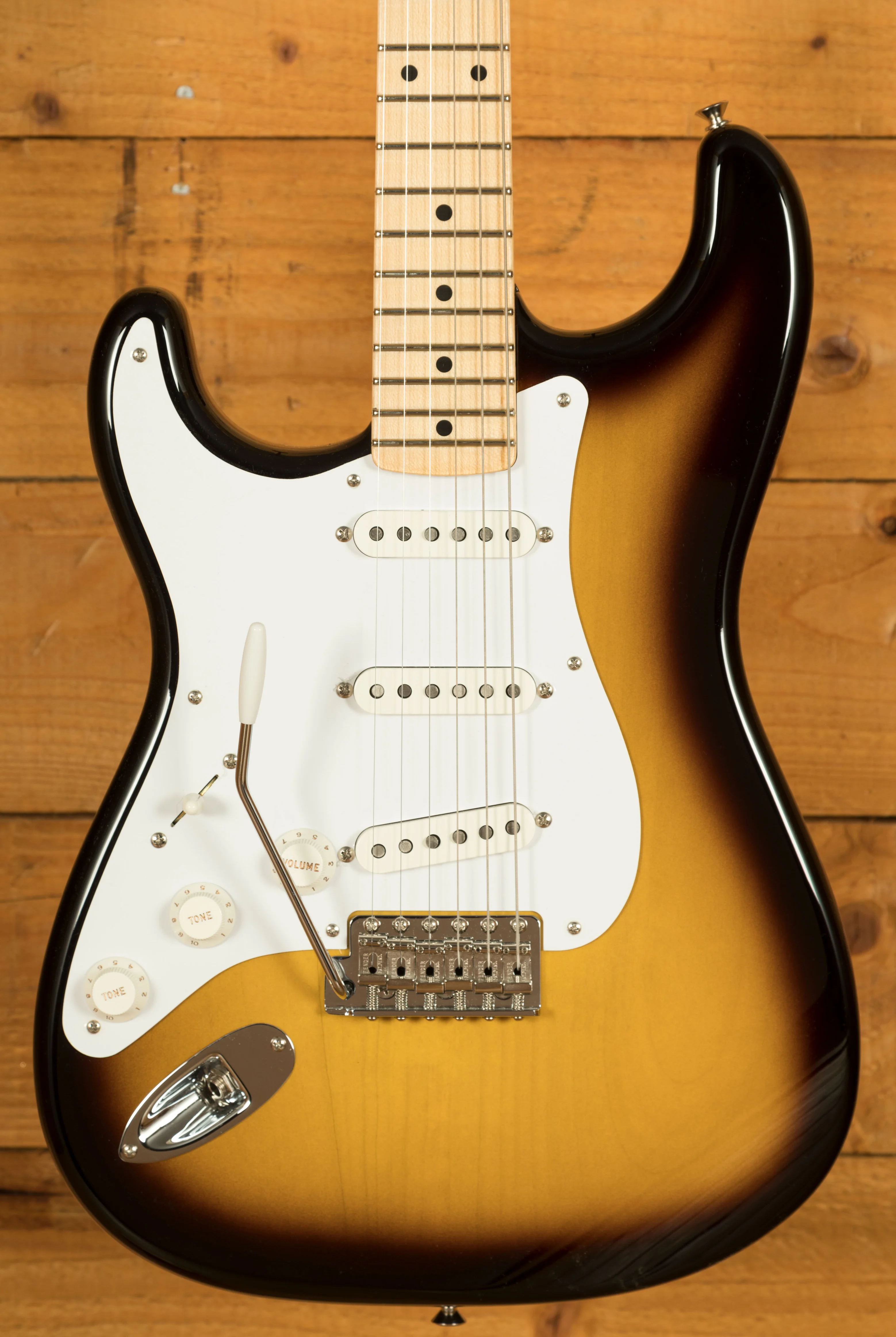 The Alder body is finished in a super cool 2-Tone Sunburst nitro lacquer, period correct, this finish will wear beautifully with time and develop its own character even further. It also allows the natural resonance of the body to sing and sustain much more effectively compared with other finishes. The NOS finish gives the appearance of a New Old Stock guitar, one that has been perfectly preserved since 1957 and doesn't feature any kind of ageing or relic work.