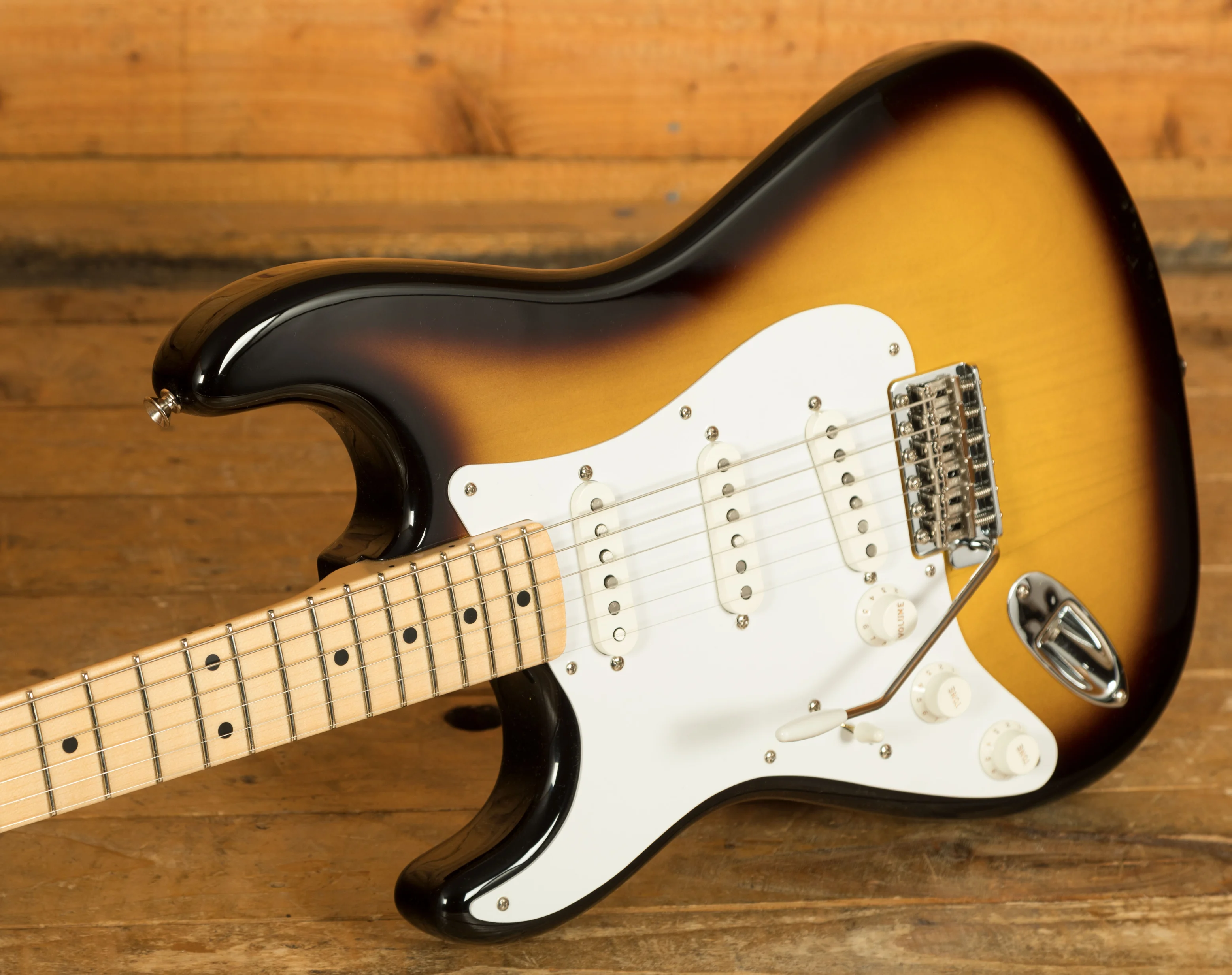With a trio of Fender hand wound '57 Strat pickups it delivers all the sweeping, versatile tones you would expect from a Strat. Rich and smooth, it's a premium Stratocaster tone. Rounding out this guitar are the vintage Fender tuners and American vintage Strat bridge for excellent tuning stability.