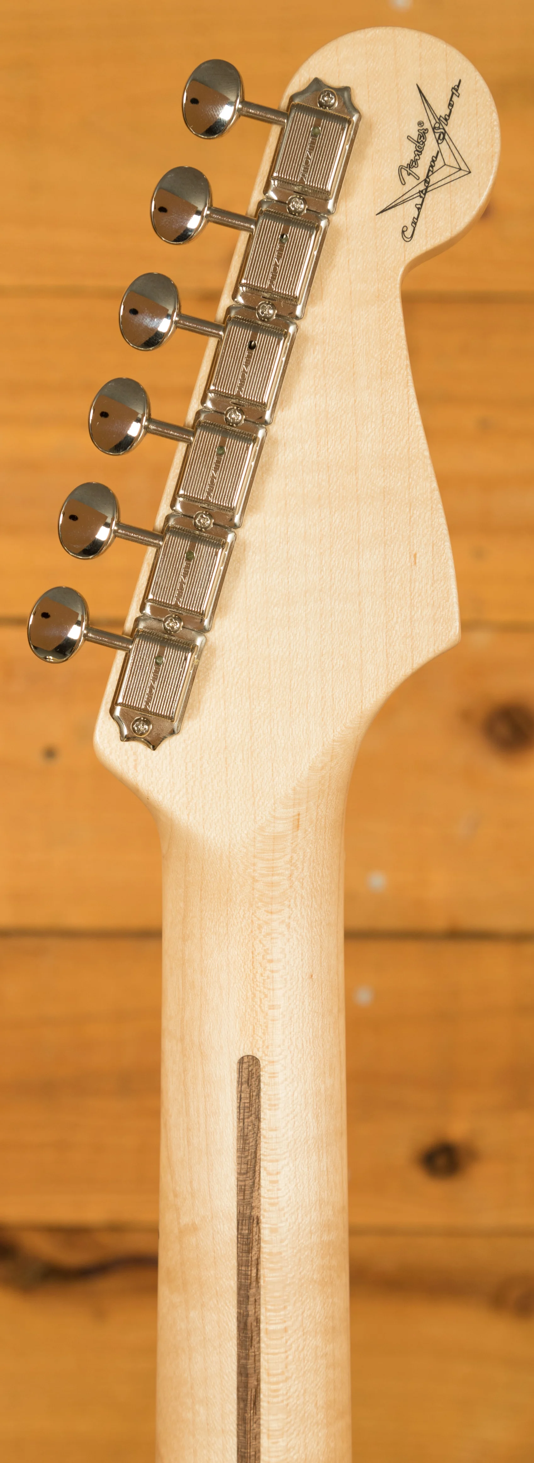 The rift sawn Maple neck has a smooth feel thanks to its satin finish. With a 9.5" radius and 21 narrow tall 6105 frets, the '57 Custom Shop Stratocaster also features a '57 Style Soft "V" neck shape - measuring .850" at the 1st fret and .990" at the 12th - and a 1.650" nut width. It's supremely comfortable and well balanced.